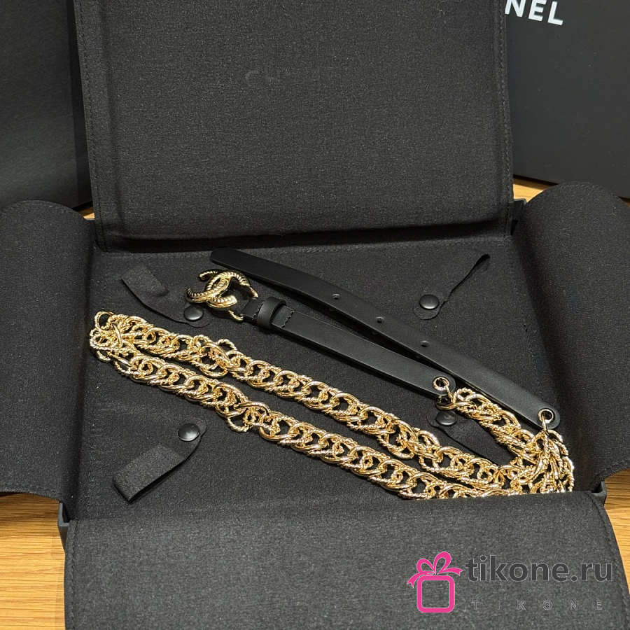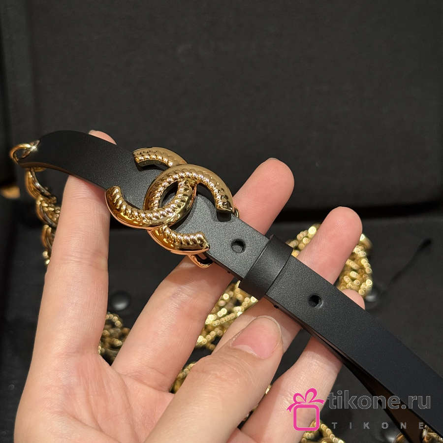 Chanel CC Chain Leather Belt Black Gold