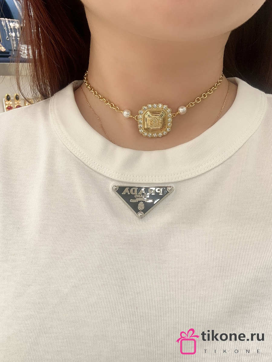 Chanel Choker Metal Glass Pearls & Diamantés Gold Pearly White & Crystal