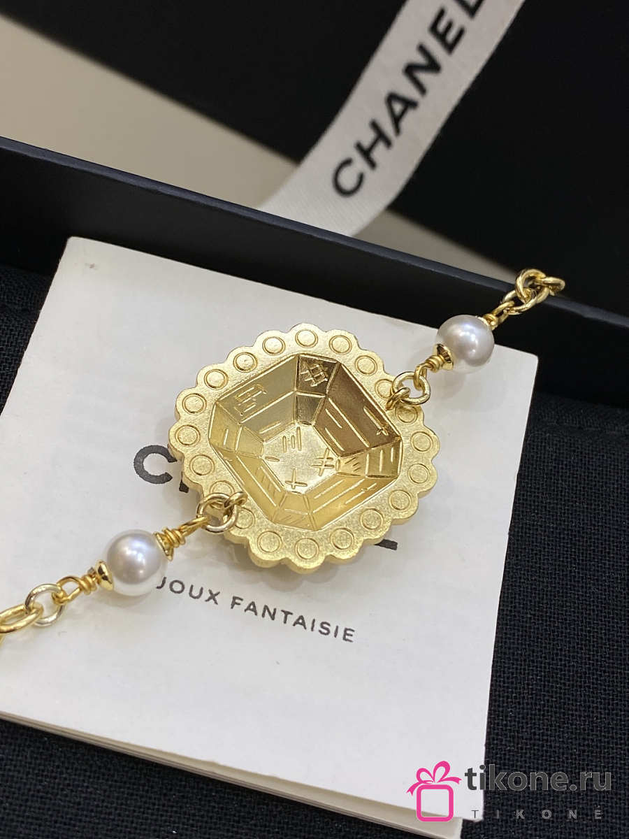 Chanel Long Necklace Metal Glass Pearls & Strass Gold Red Pearly White & Crystal
