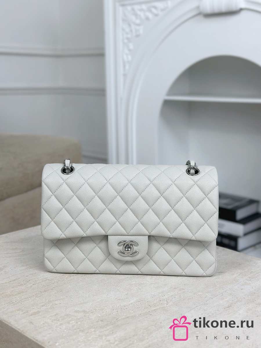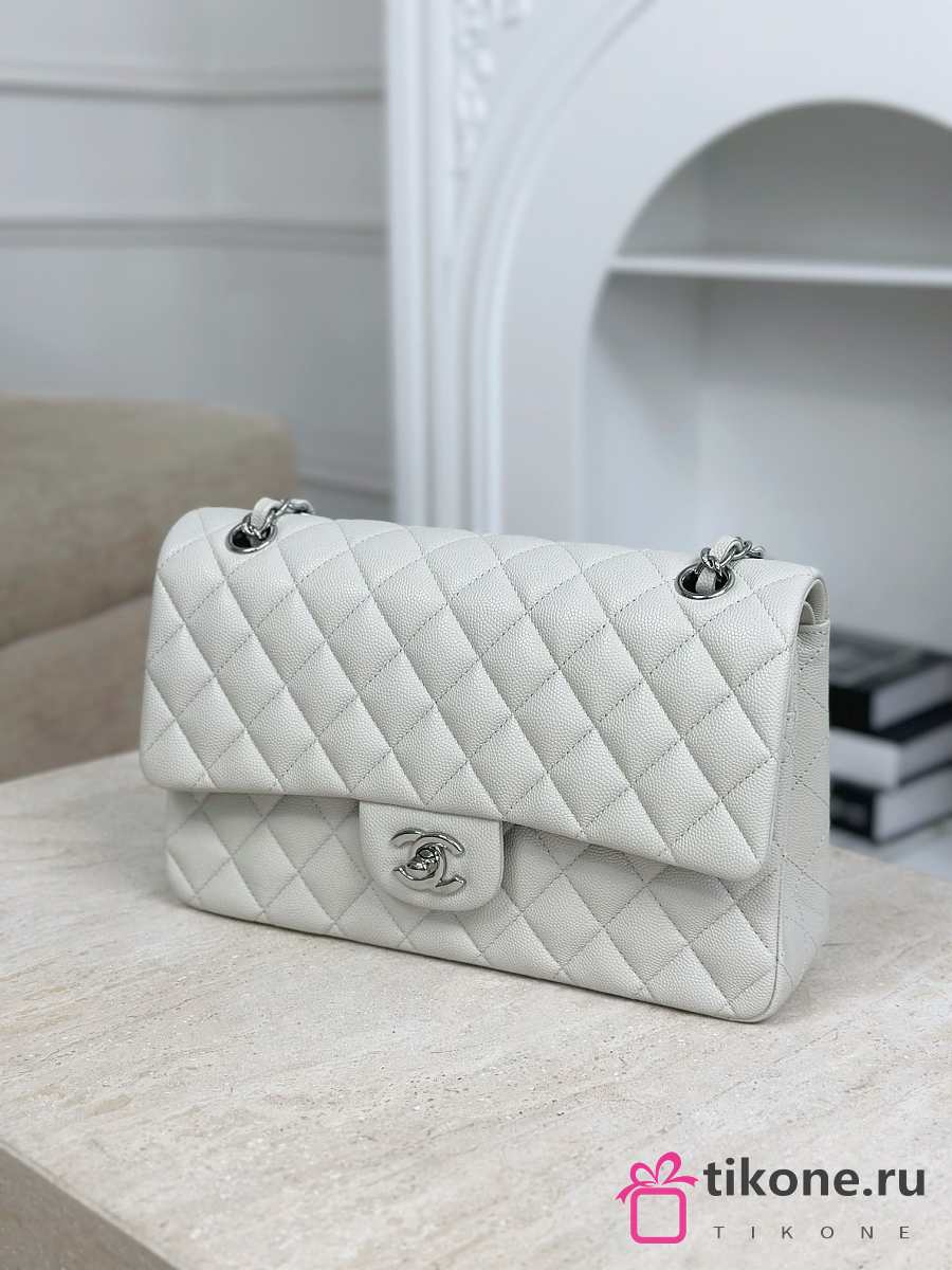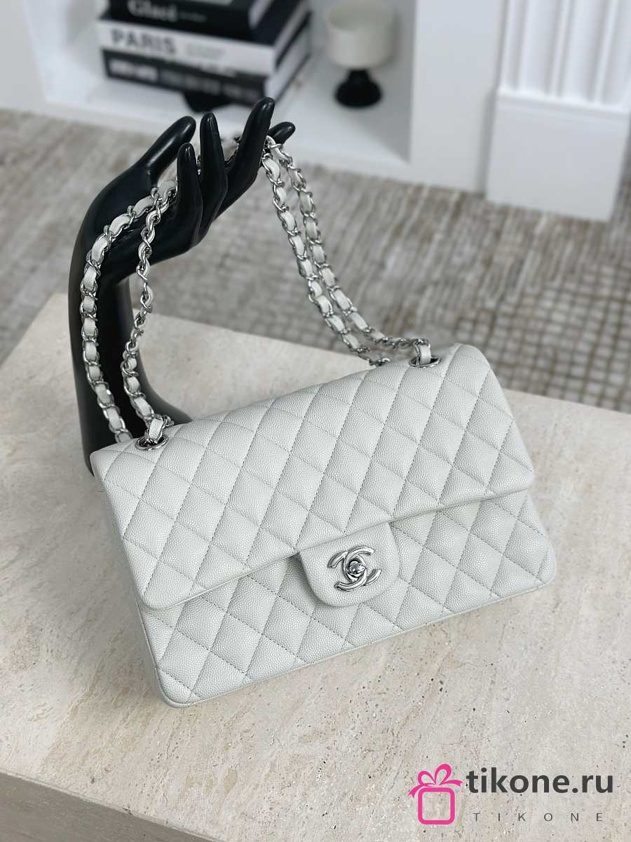 Chanel Classic 11.12 Handbag Caviar & Gold-Tone Metal Light Gray - 15.5x25.5x6.5cm
