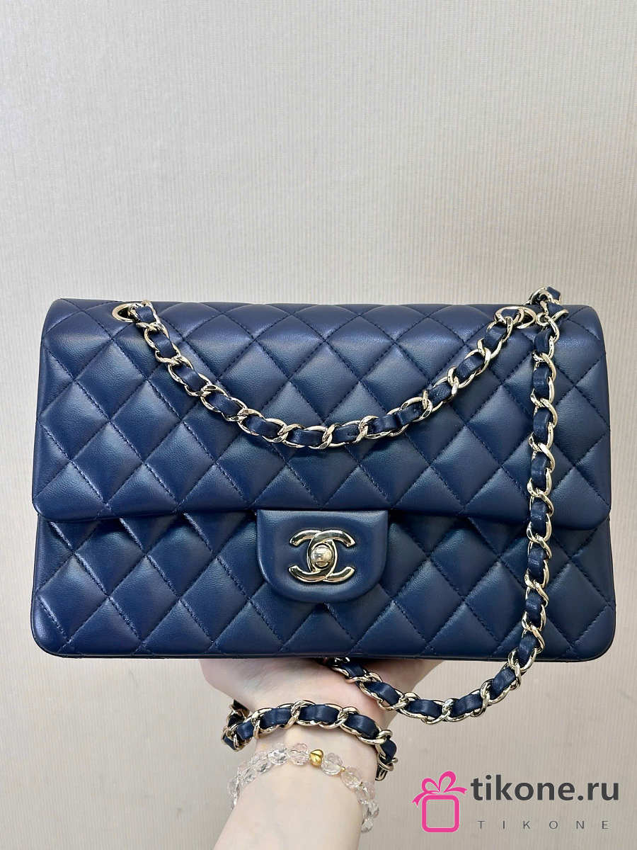 Chanel Classic 11.12 Handbag Lambskin & Gold-Tone Metal Dark Blue - 15.5x25.5x6.5cm