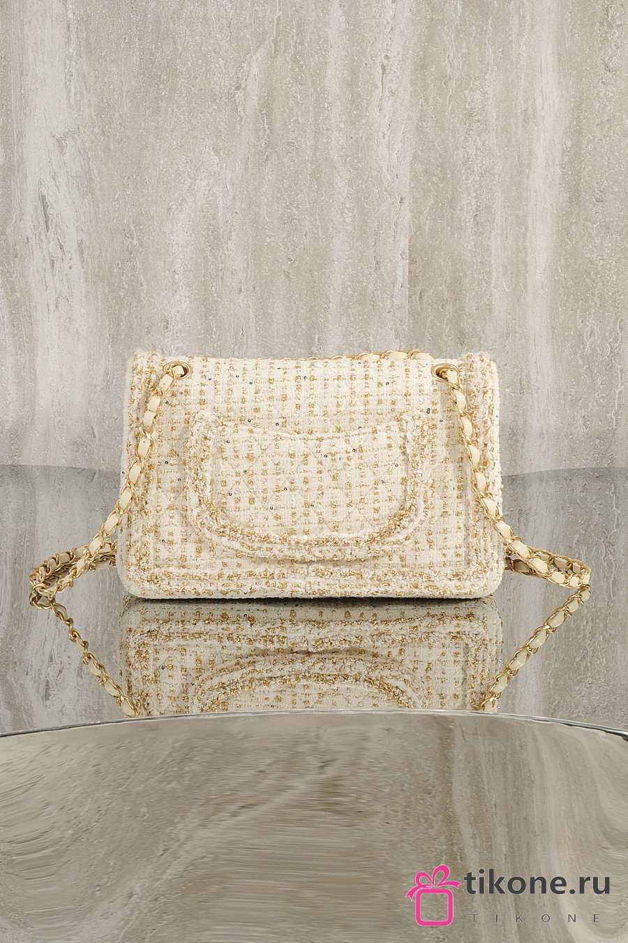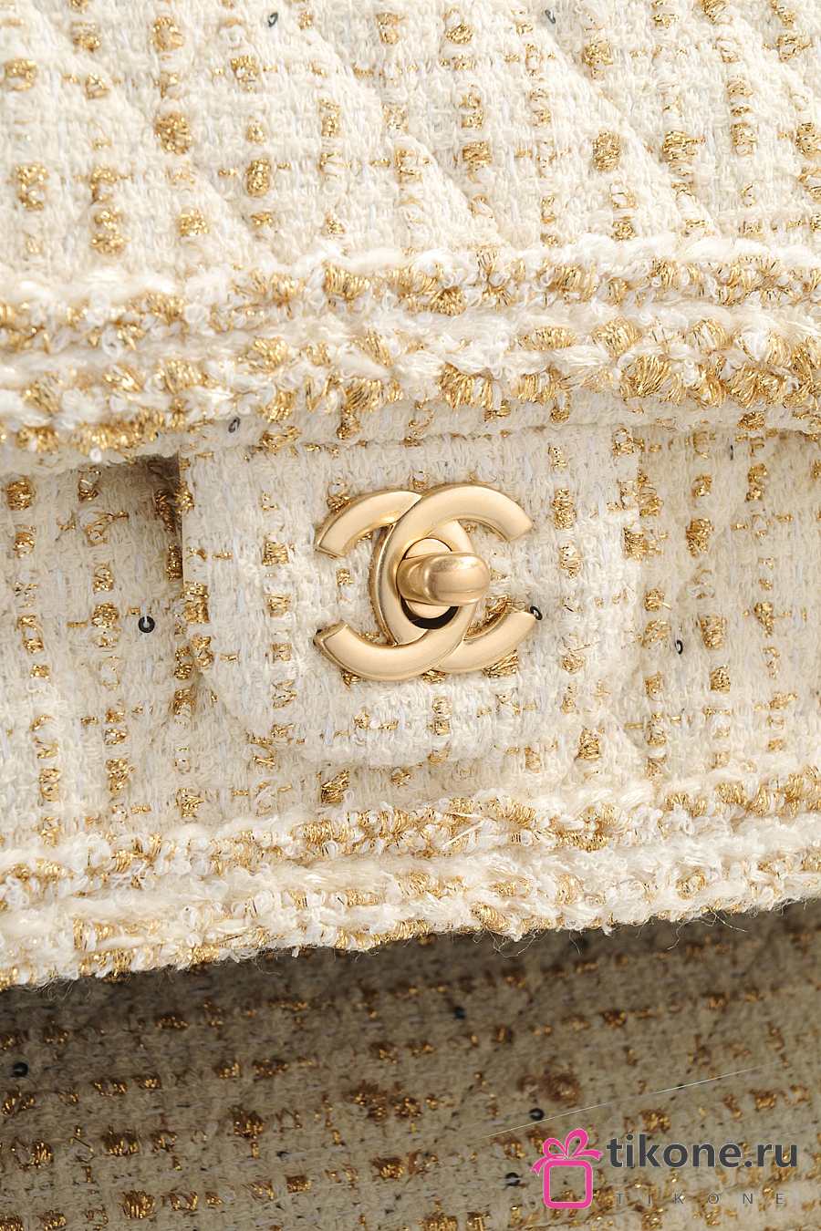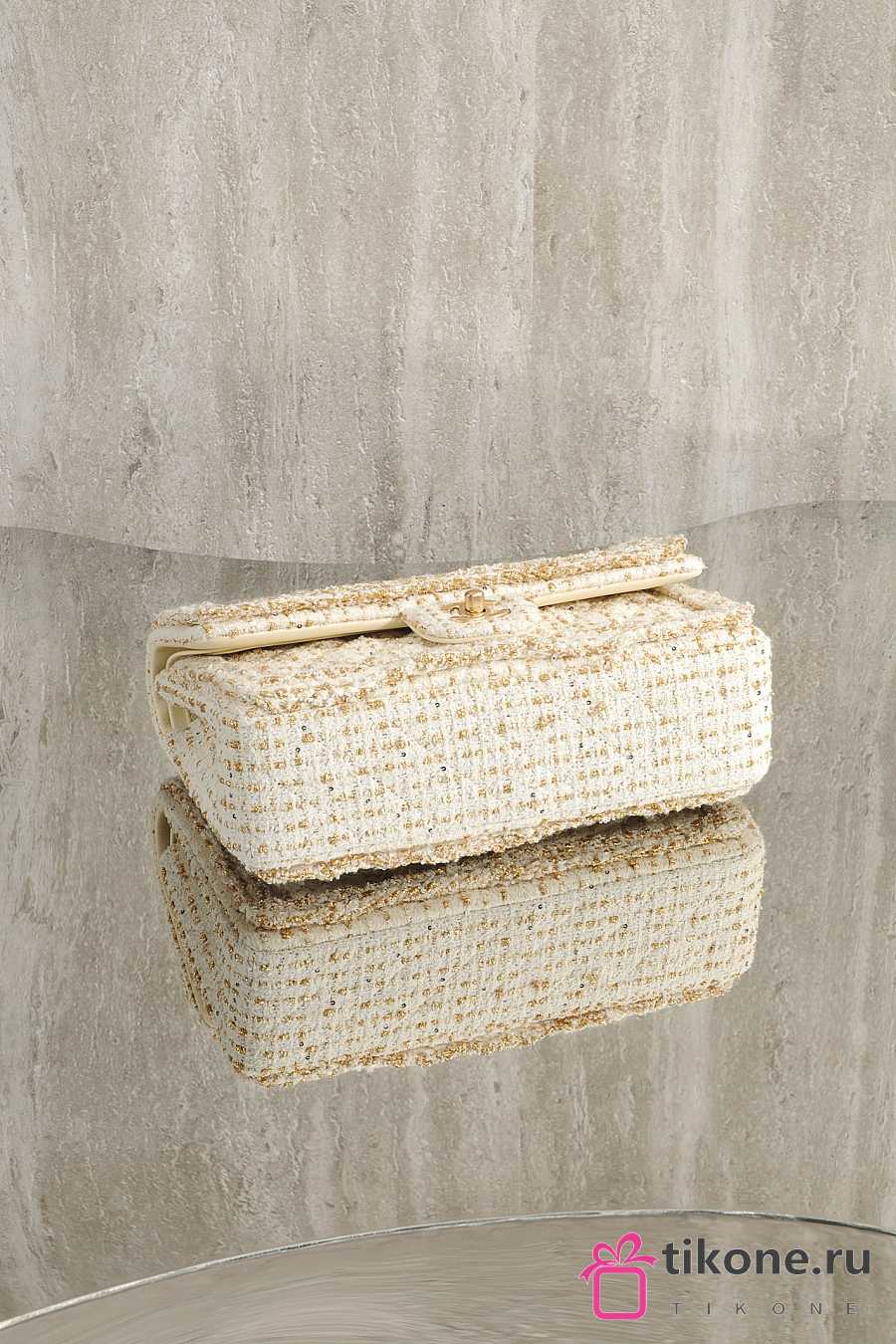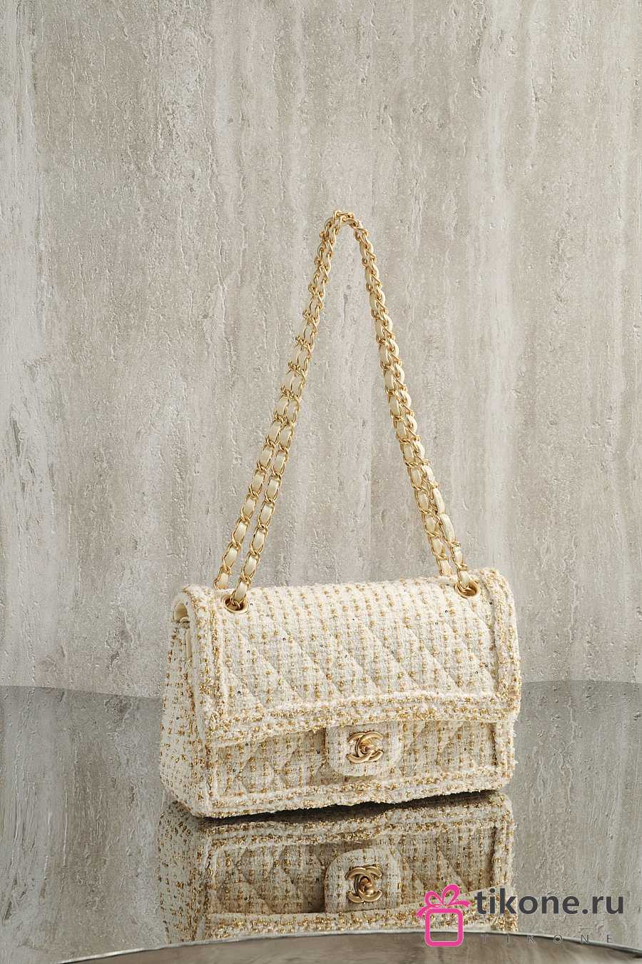 Chanel Classic 11.12 Handbag Tweed & Gold Metal Ecru & Gold - 25.5x15.5x6.5cm