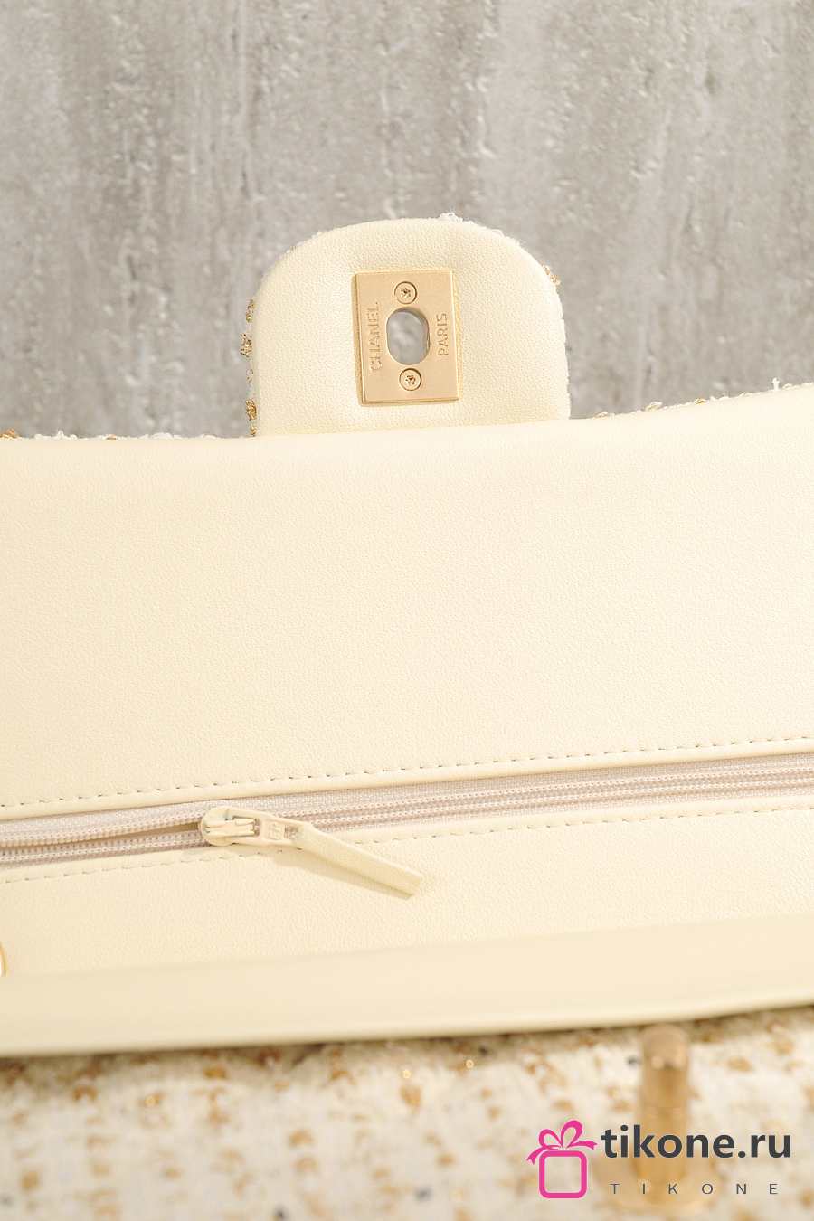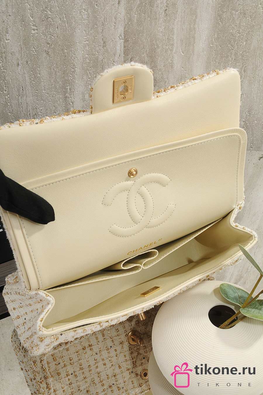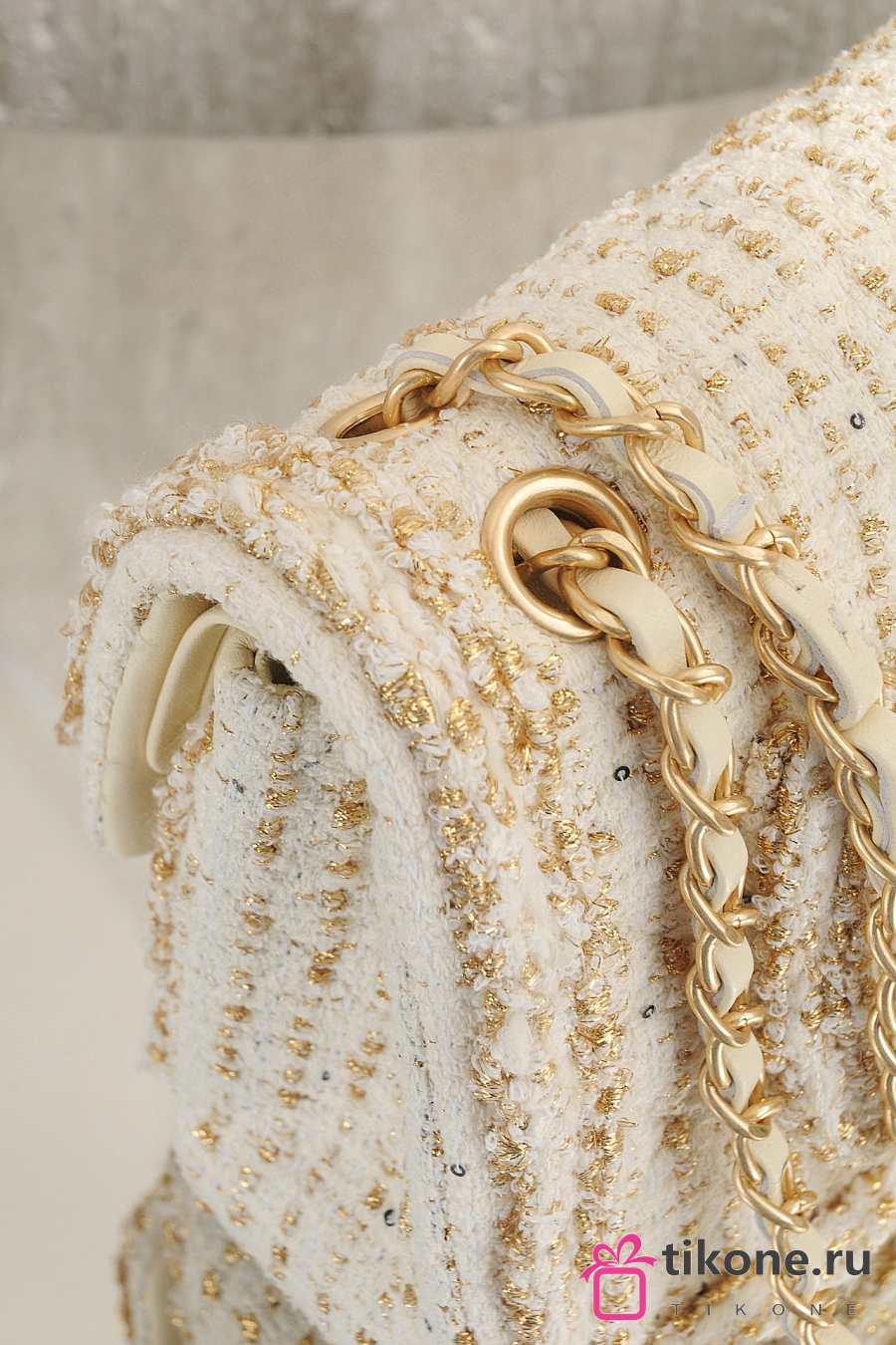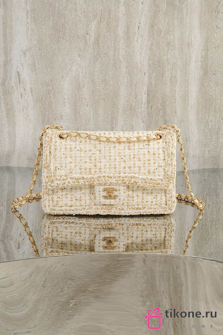 Chanel Classic 11.12 Handbag Tweed & Gold Metal Ecru & Gold - 25.5x15.5x6.5cm