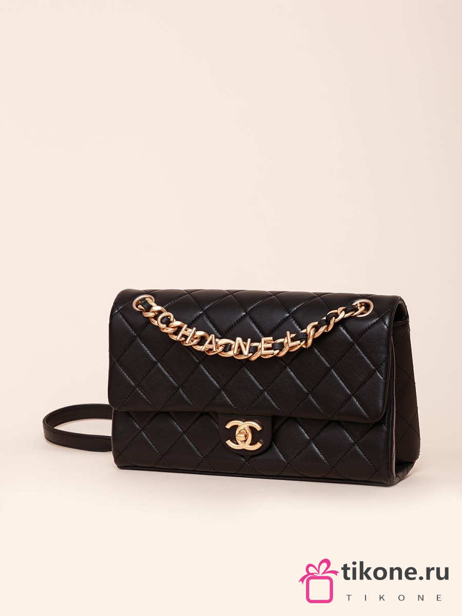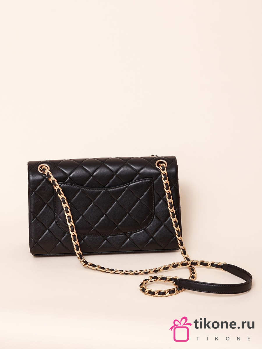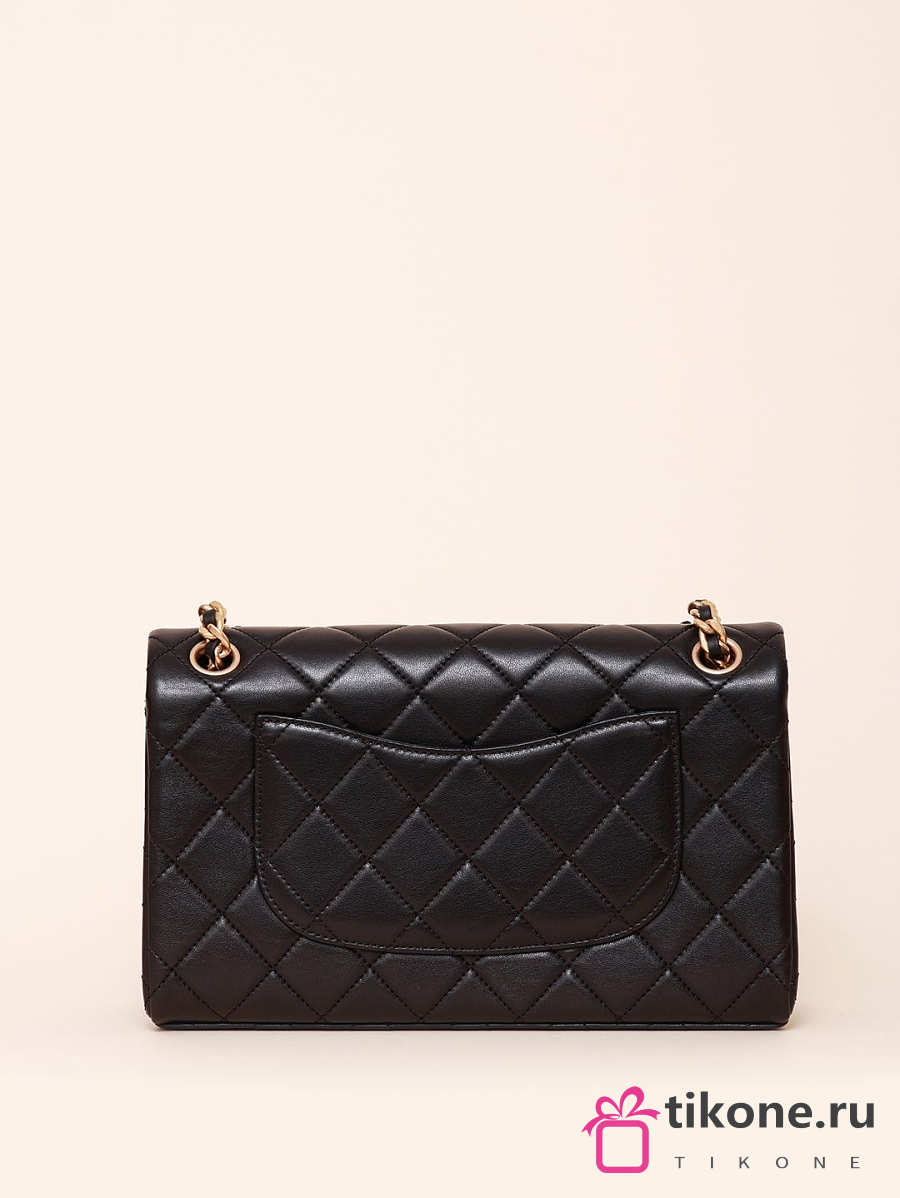 Chanel Classic Lamskin Gold Flap Bag Black Gold - 26x15x7cm