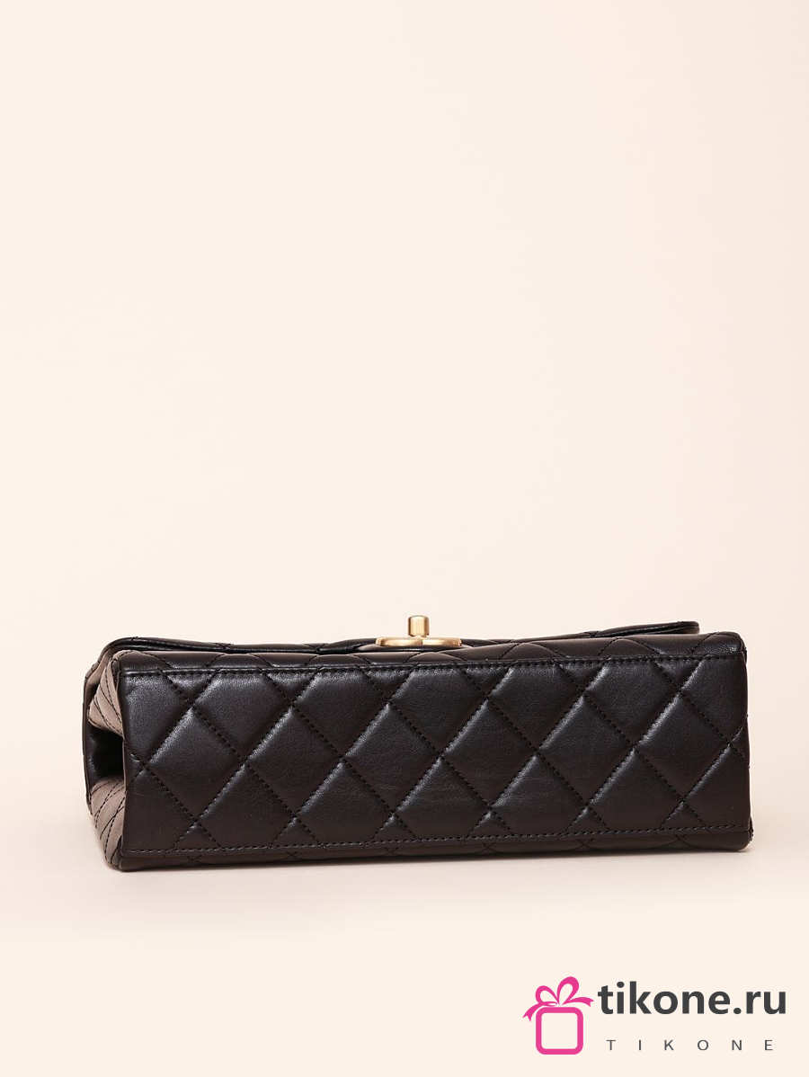 Chanel Small Flap Bag with Top Handle Grained Shiny Calfskin & Gold Tone Metal Black - 22.5x13.5x6cm