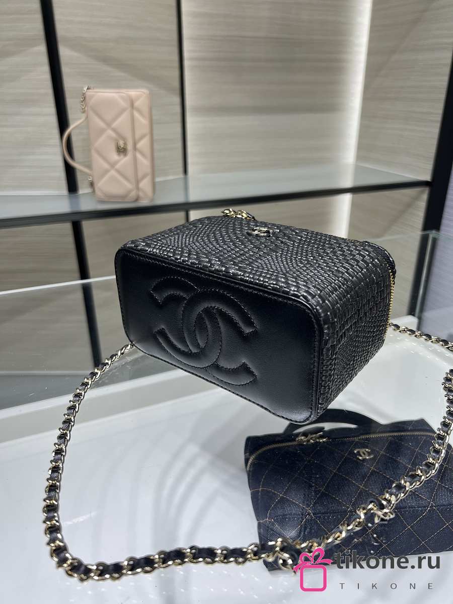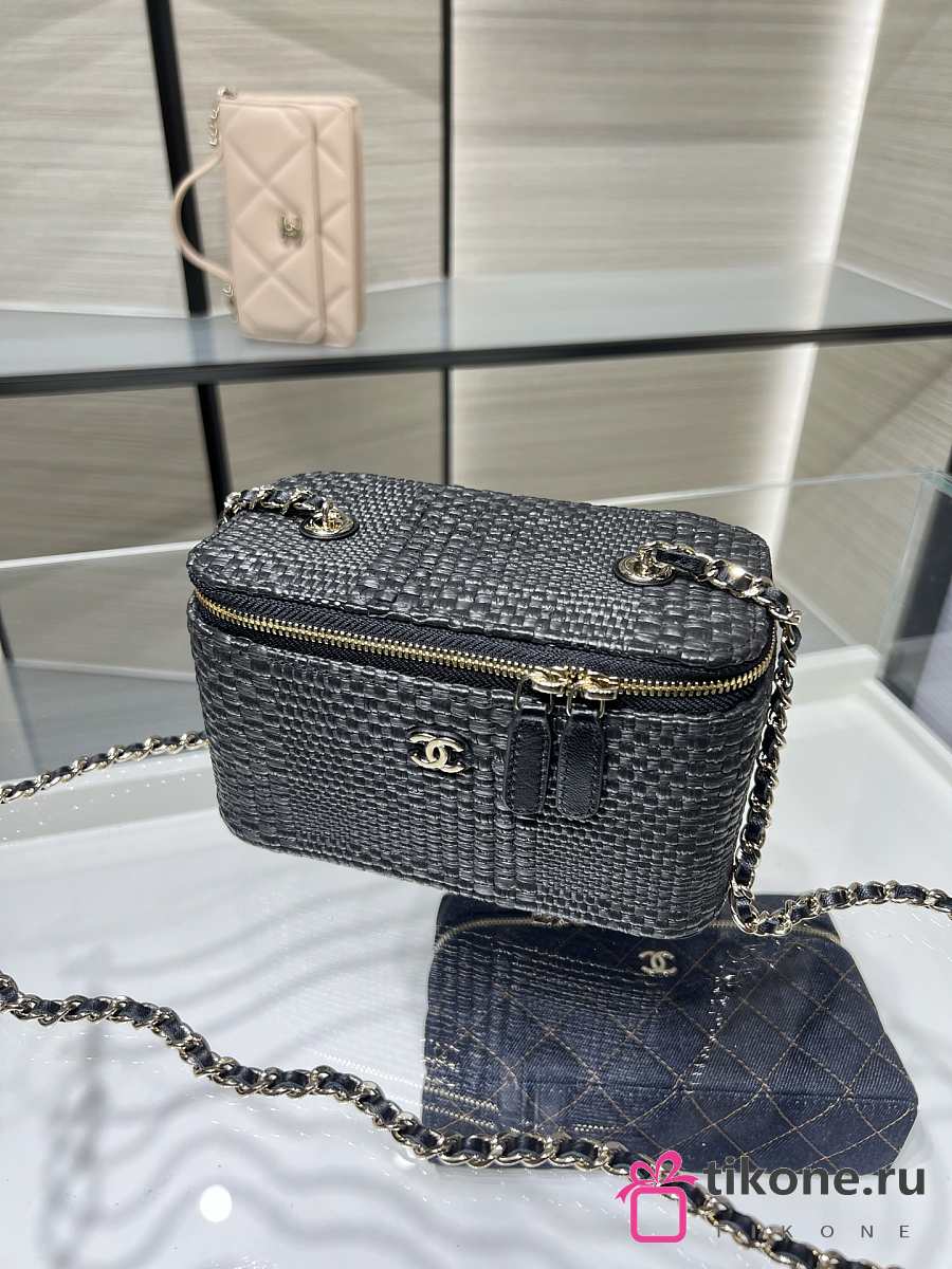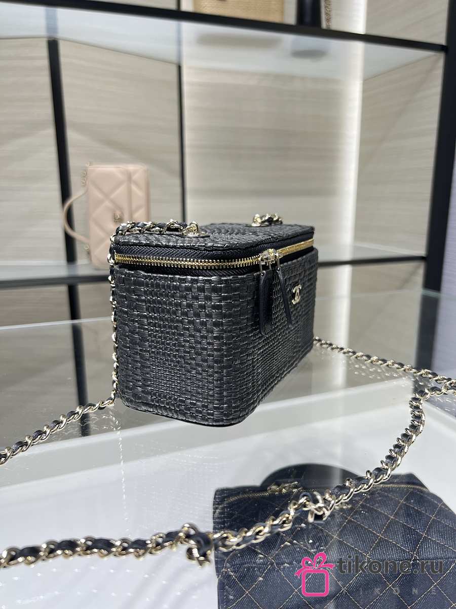 Chanel Classic Long Vanity with Chain Braided Raffia & Gold-Tone Metal Black - 17x9.5x8cm