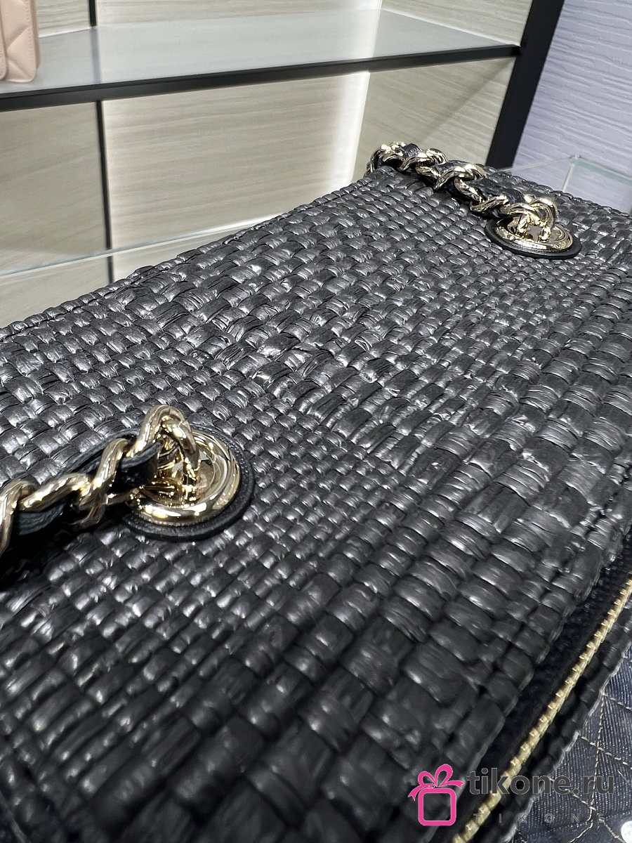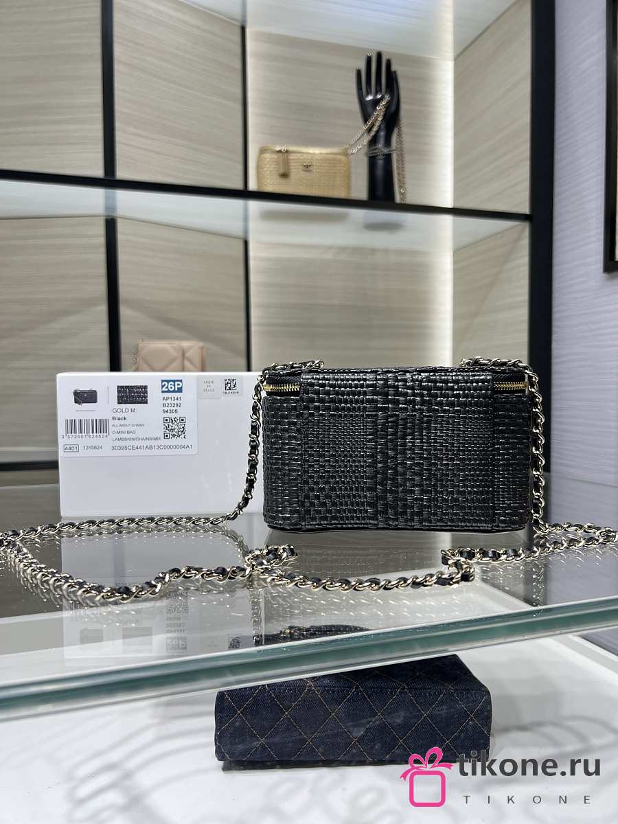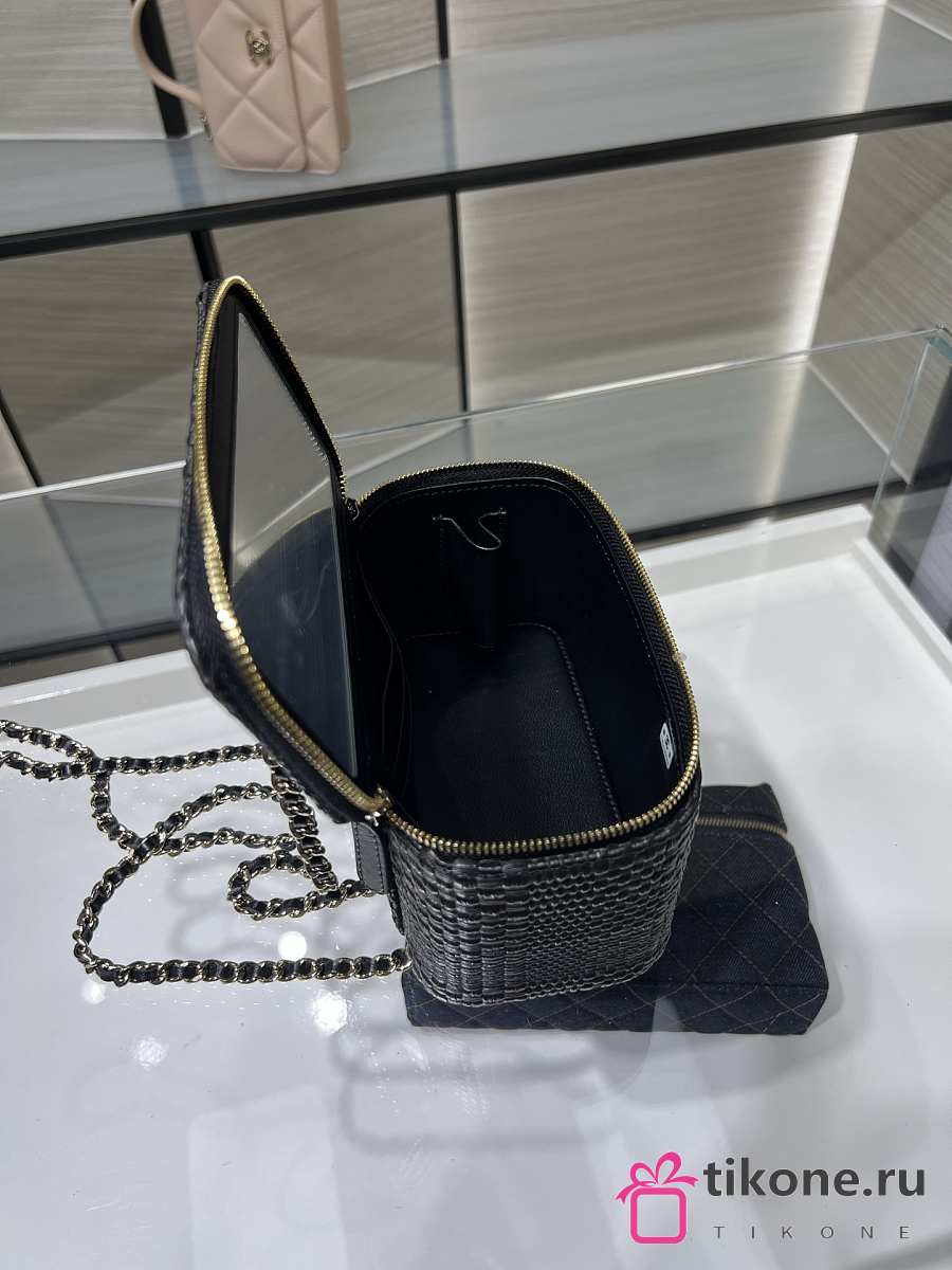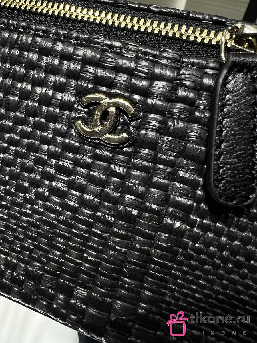 Chanel Classic Long Vanity with Chain Braided Raffia & Gold-Tone Metal Black - 17x9.5x8cm
