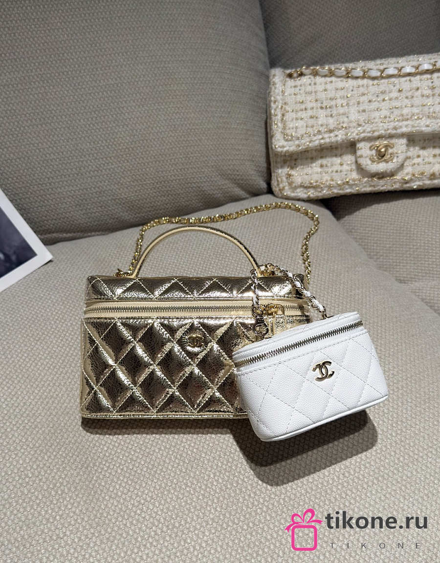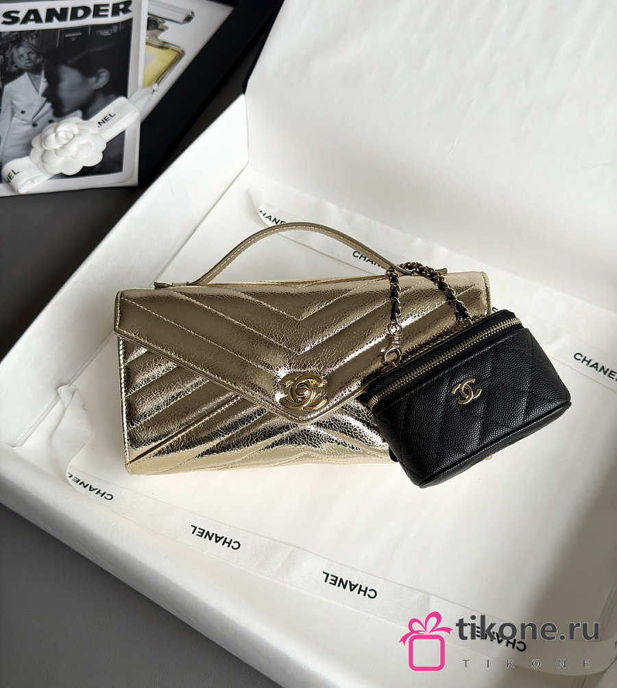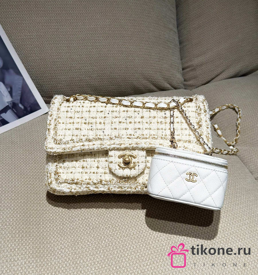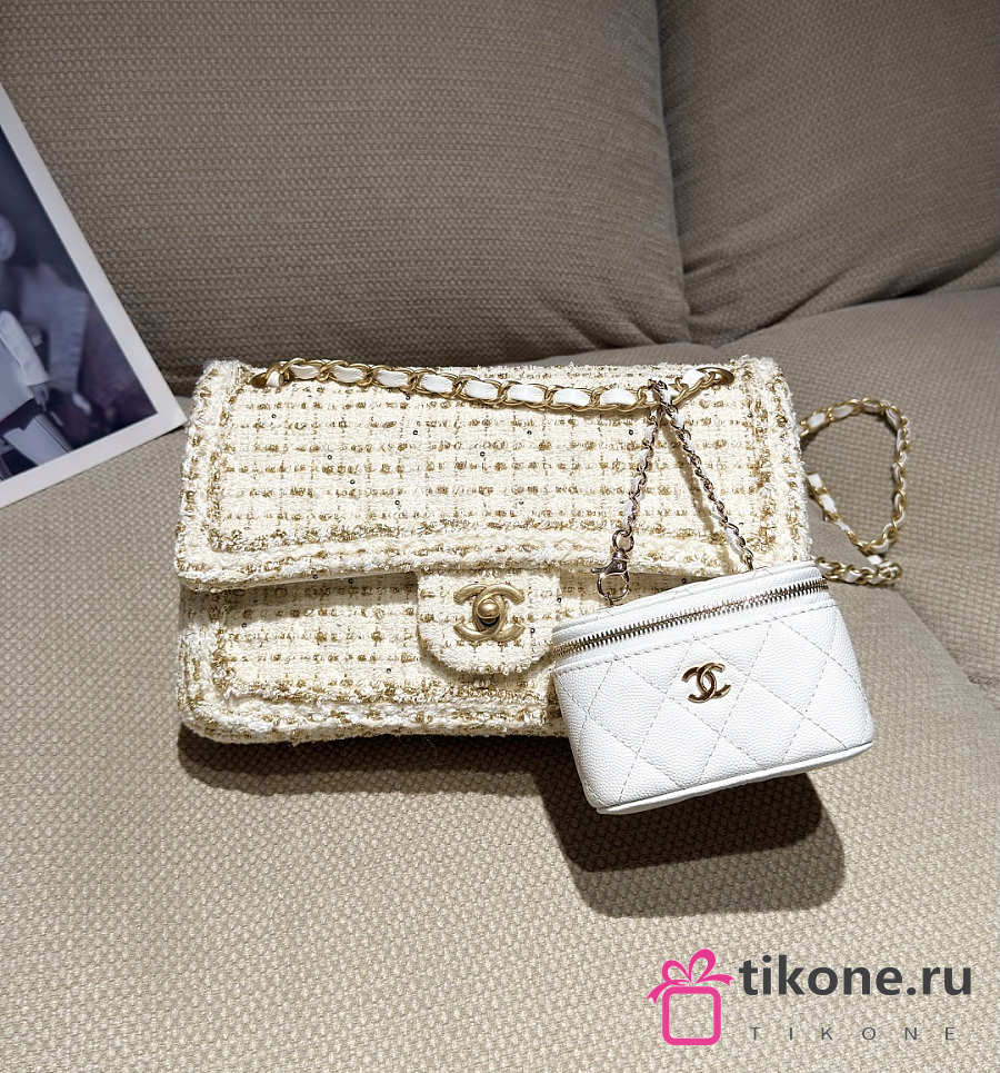 Chanel 25 Mini Flap Bag Metallized Braided Calfskin Gold Tone Metal Gold - 19x13x5.5cm