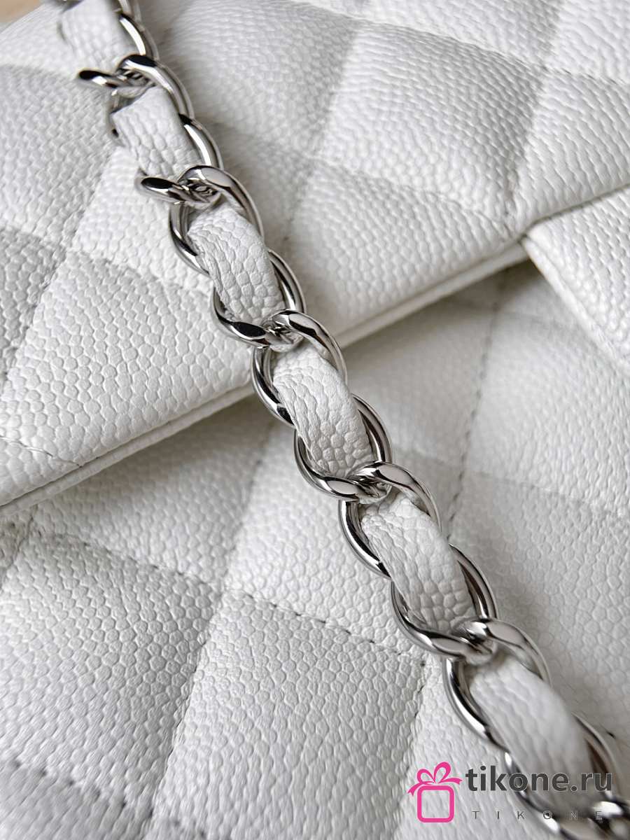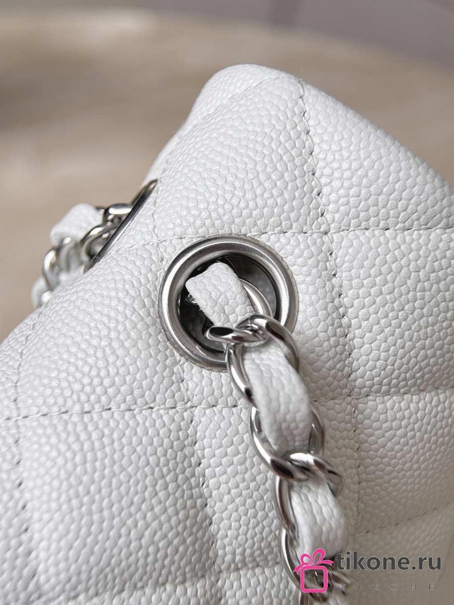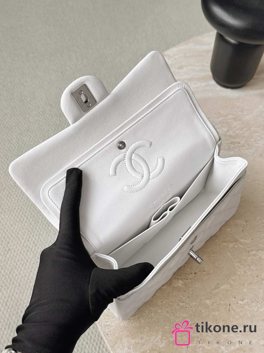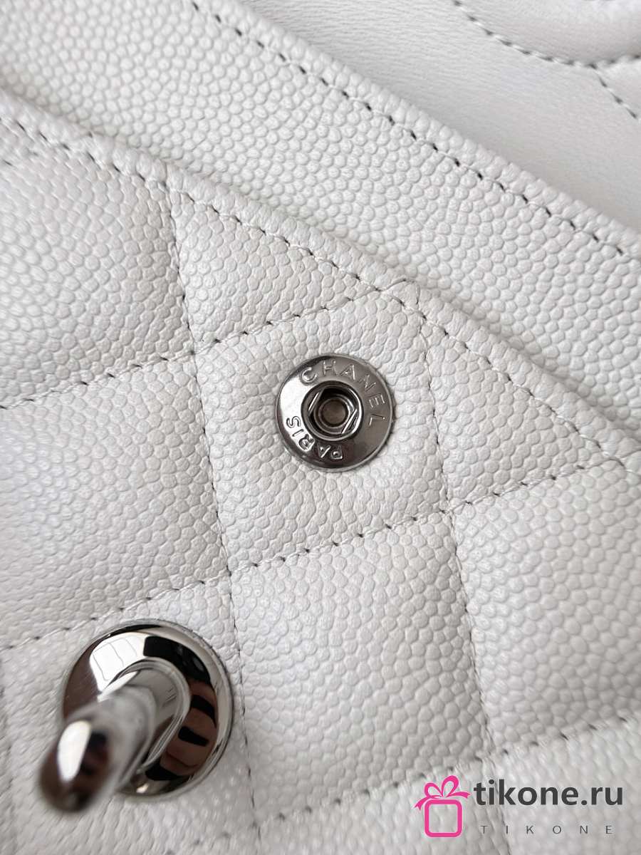 Chanel Classic White Caviar Silver Hardware Bag - 14.5x23x6cm