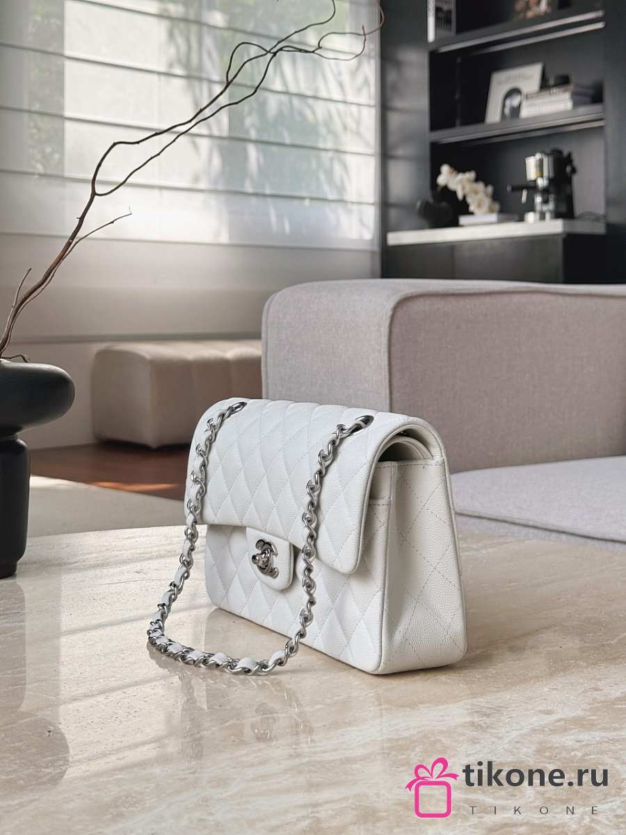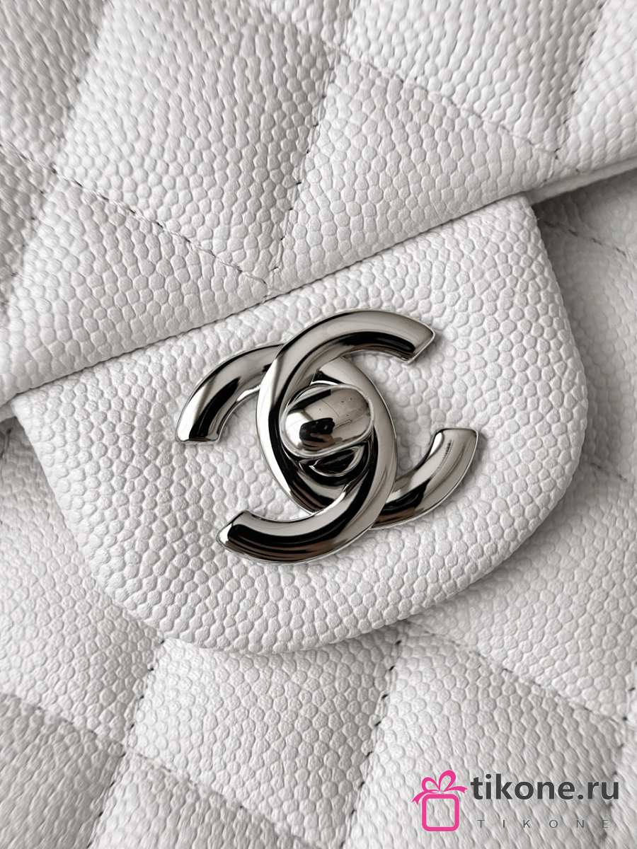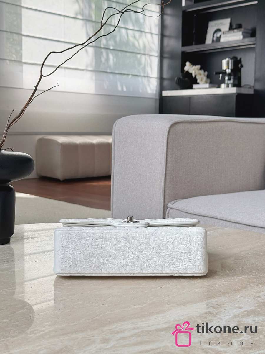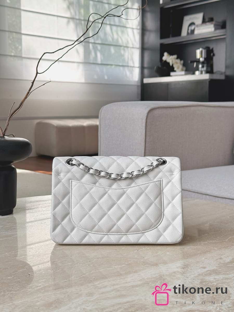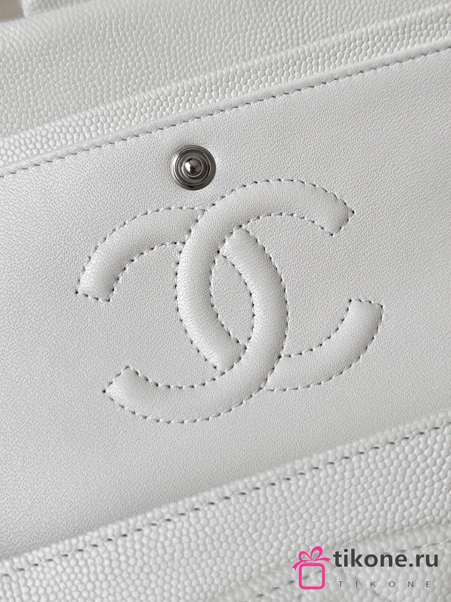 Chanel Classic White Caviar Silver Hardware Bag - 14.5x23x6cm