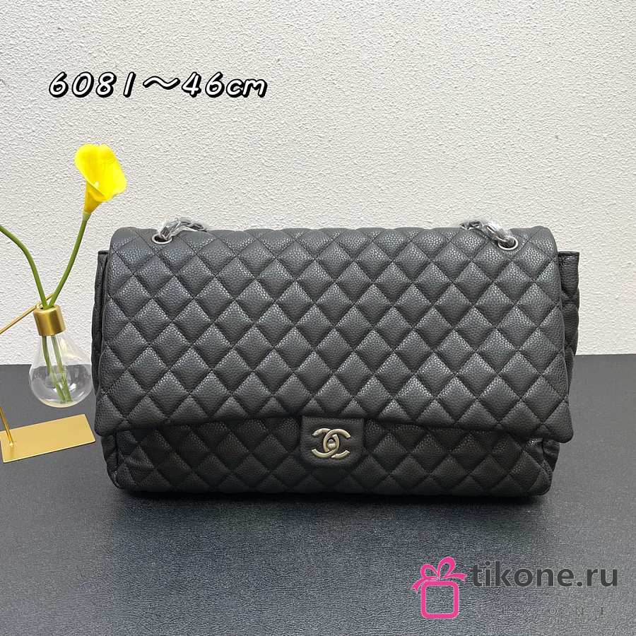 Chanel Classic XXL Travel Flap Grained Calfskin & Ruthenium-Finish Metal Black - 46x26x14cm