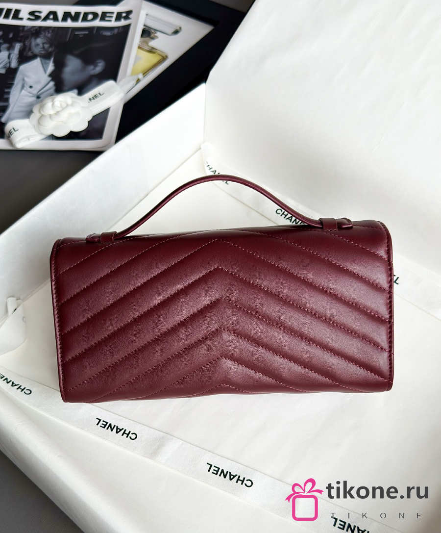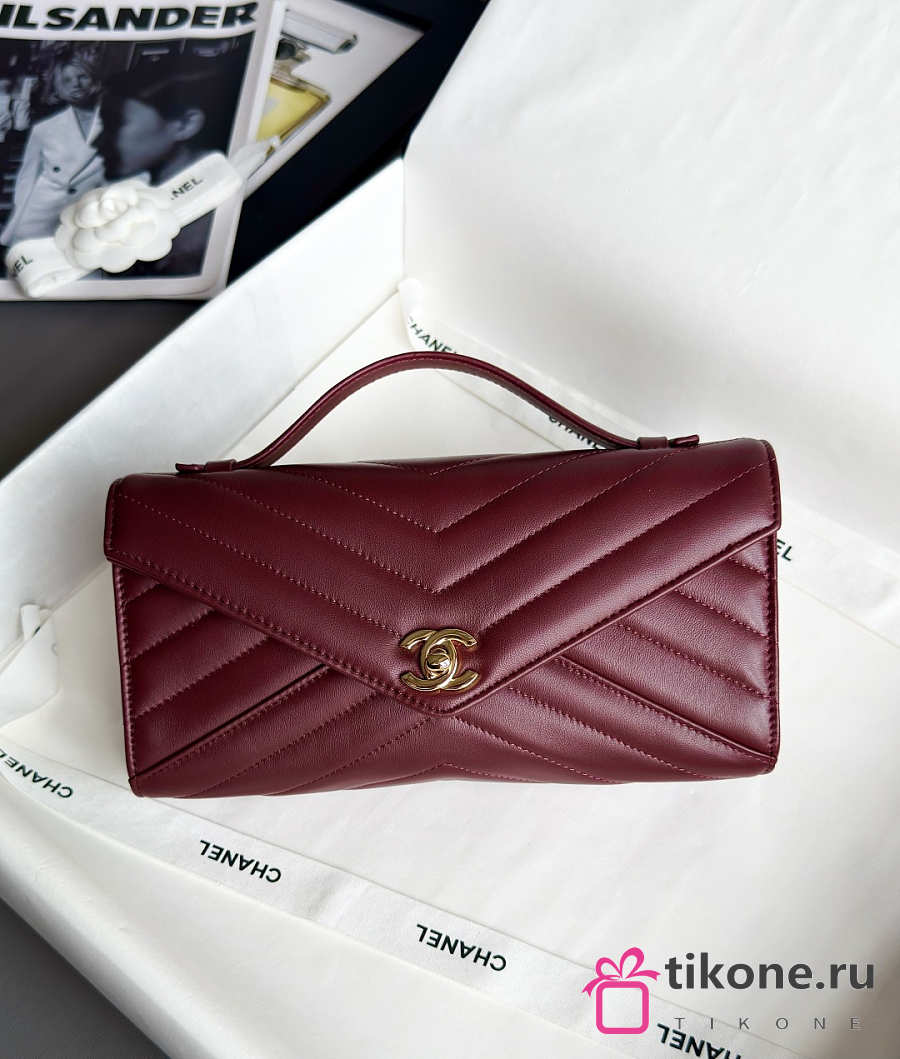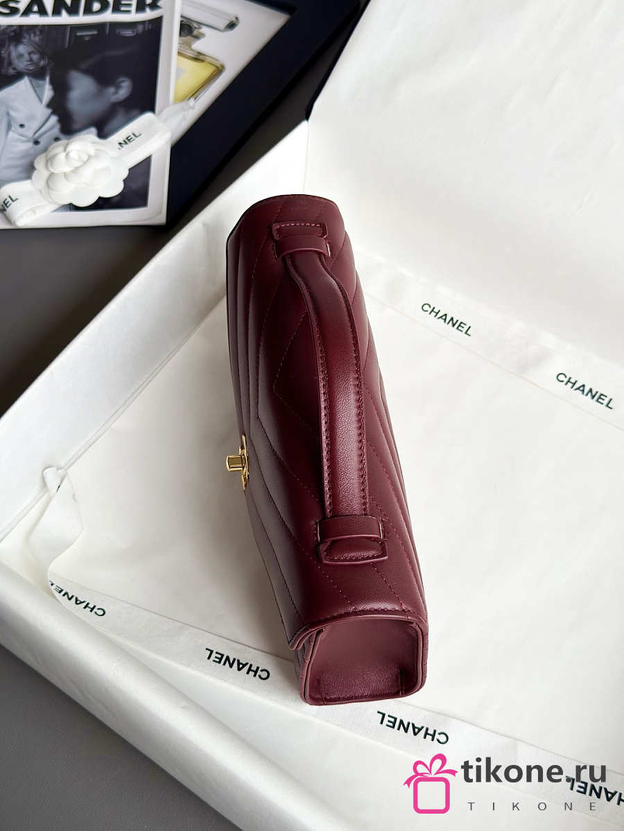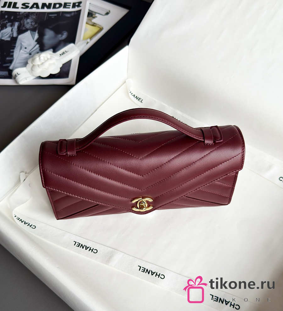 Chanel Clutch Flap Bag With Top Handle Goatskin & Gold-Tone Metal Burgundy - 25x13x6.5cm