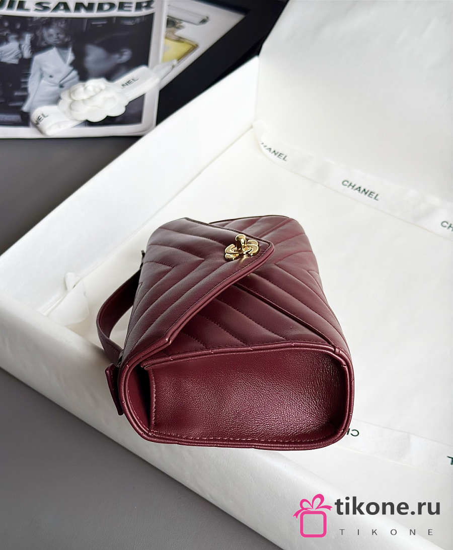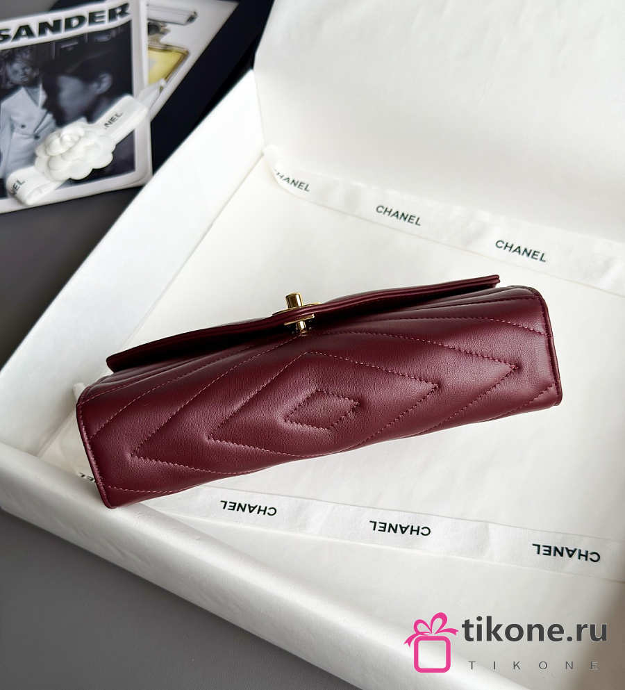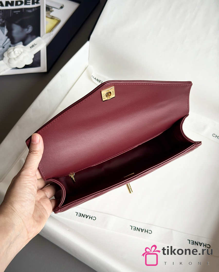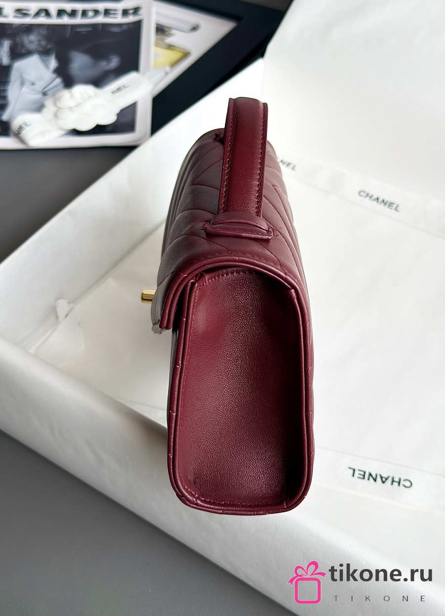 Chanel Clutch Flap Bag With Top Handle Goatskin & Gold-Tone Metal Burgundy - 25x13x6.5cm