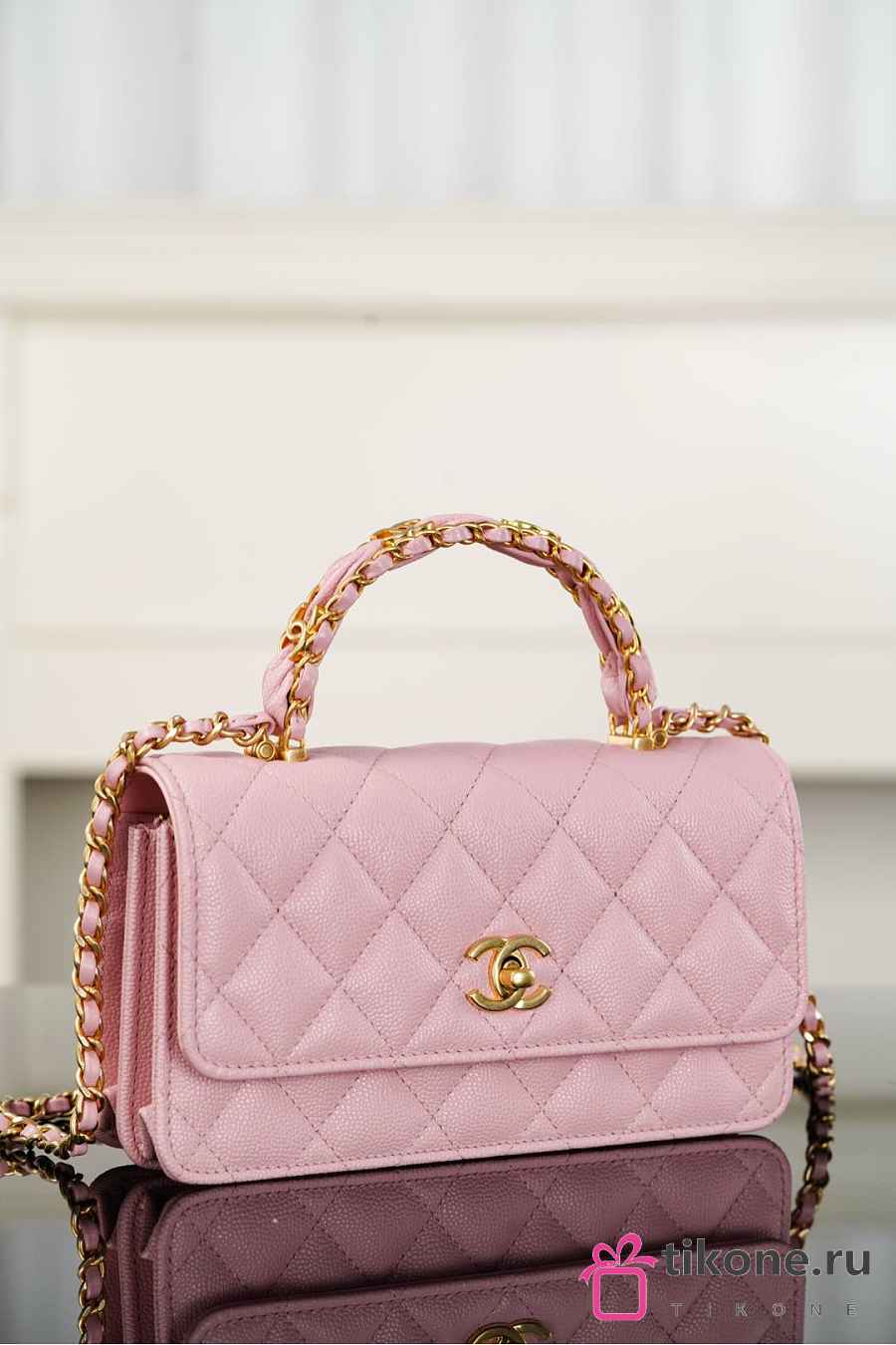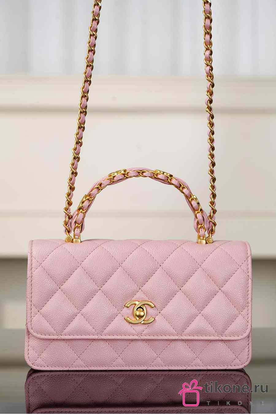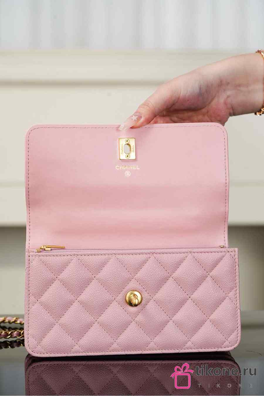 Chanel Clutch With Chain Grained Shiny Calfskin & Gold Tone Metal Light Pink - 18.5x11x6cm