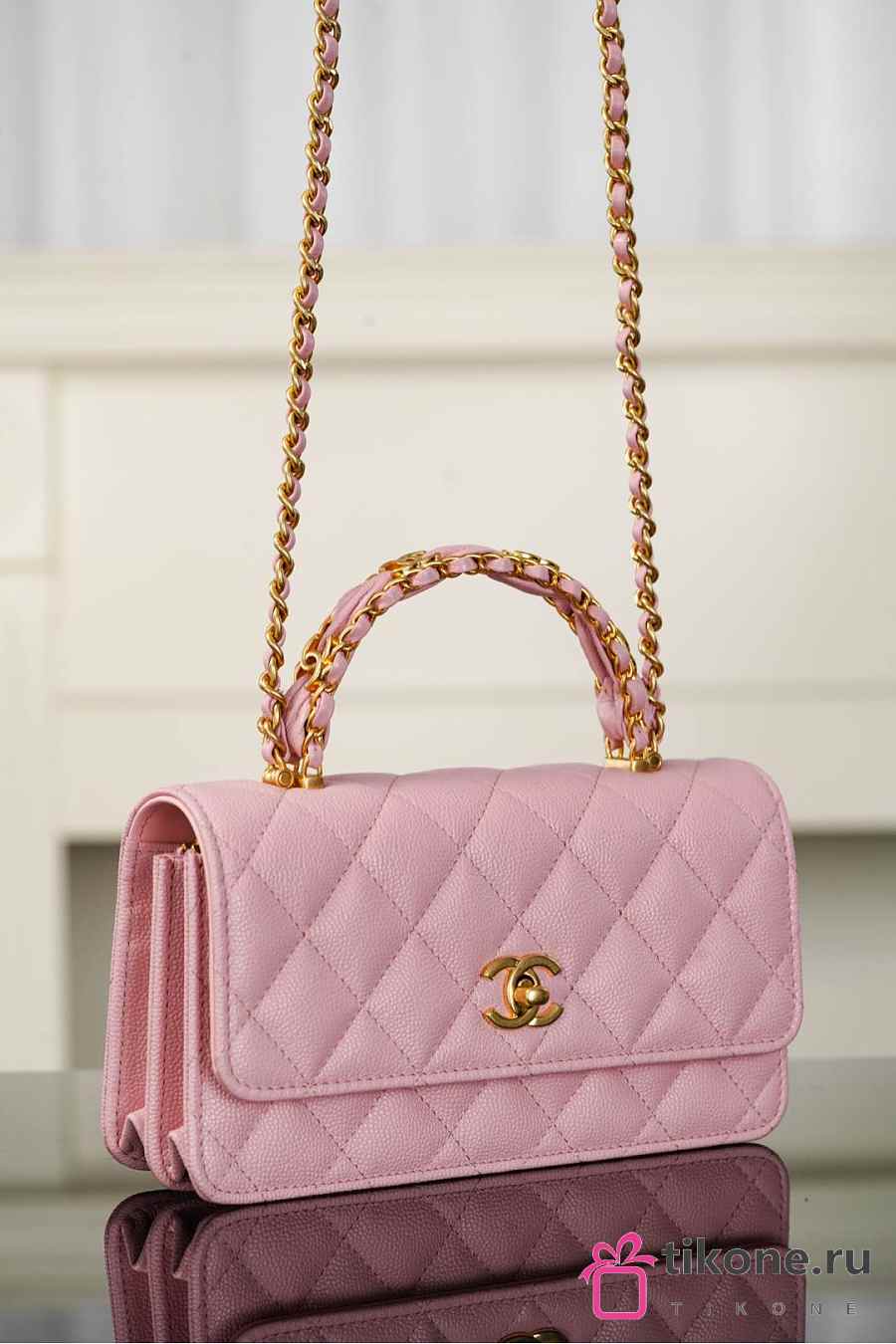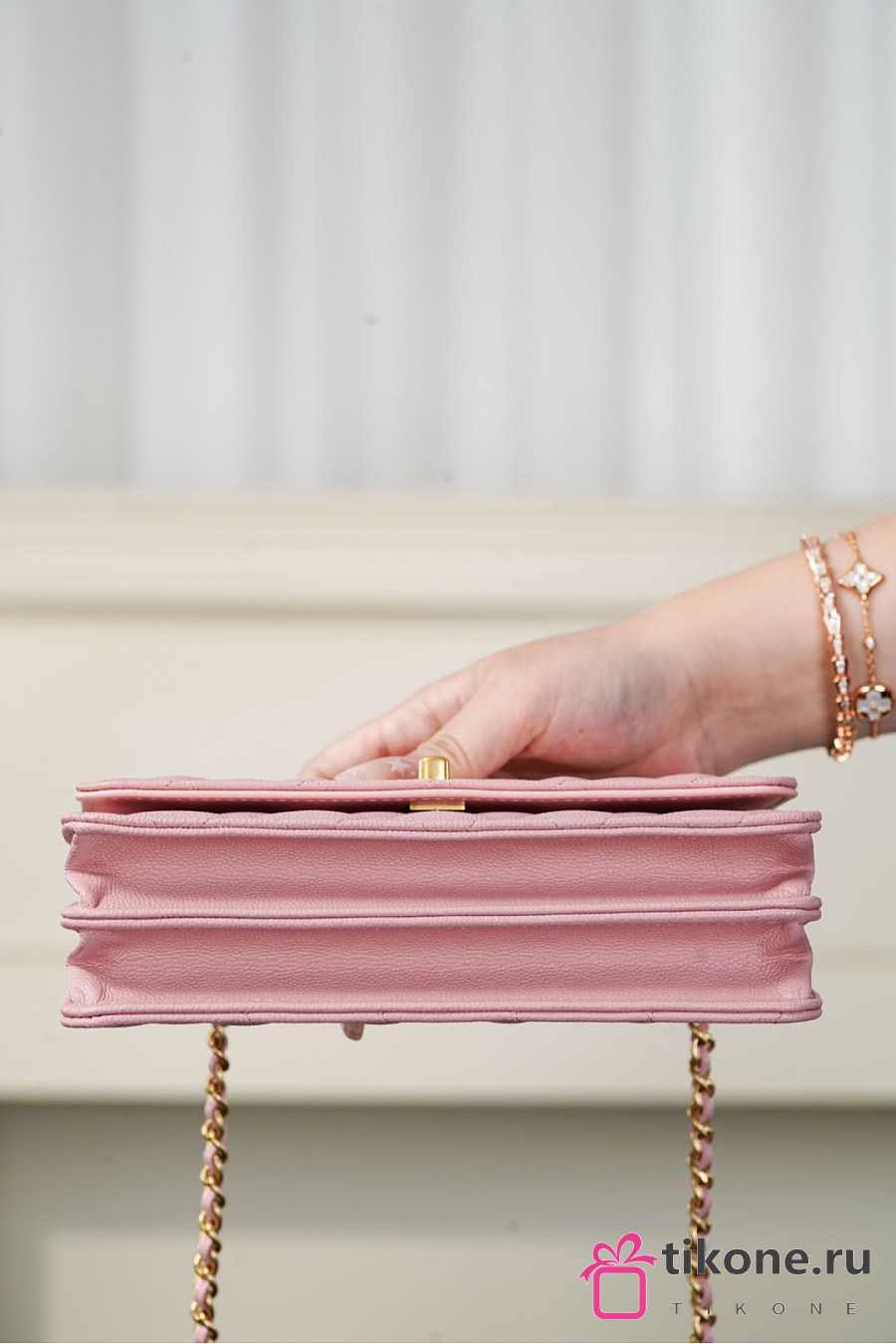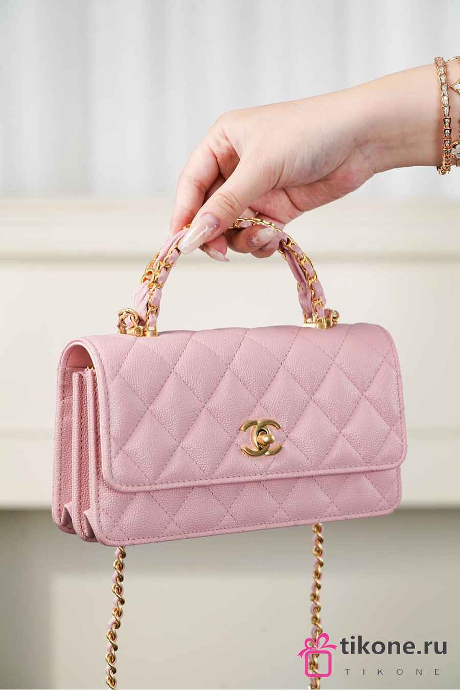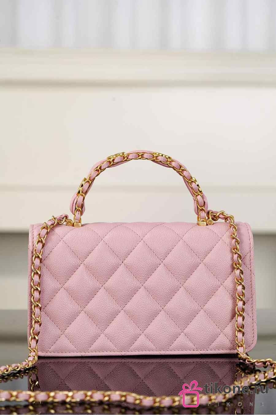 Chanel Clutch With Chain Grained Shiny Calfskin & Gold Tone Metal Light Pink - 18.5x11x6cm