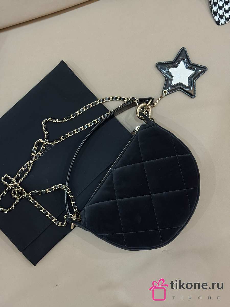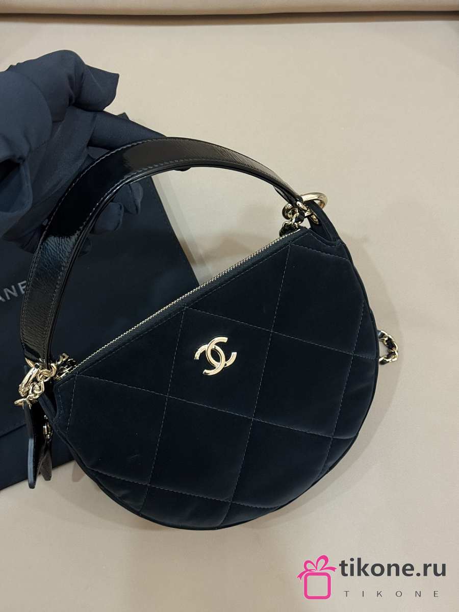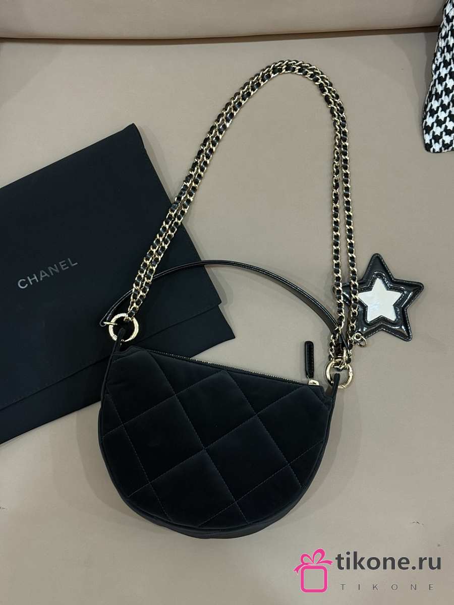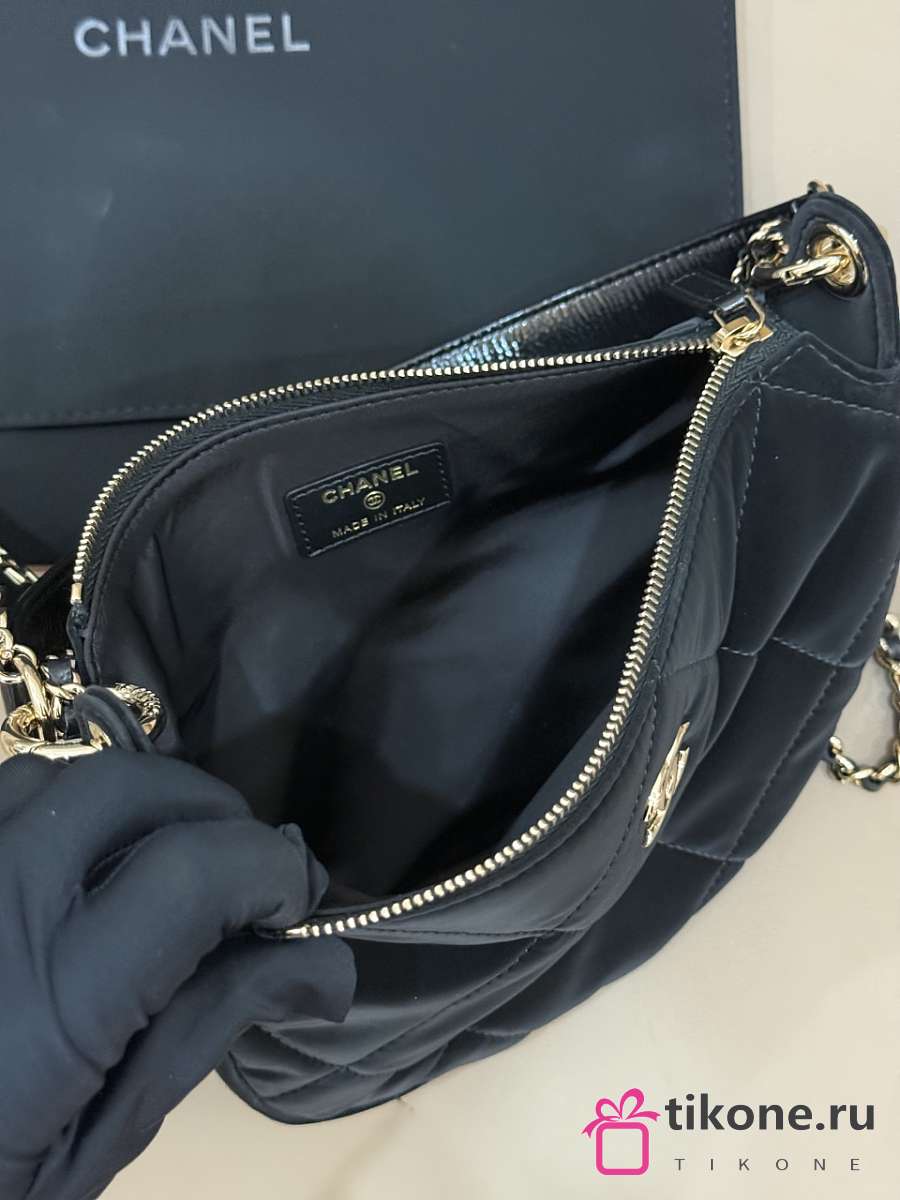 Chanel Clutch With Chain Velvet Effect Nylon Shiny Crumpled Calfskin & Gold Tone Metal Black - 22x15x6cm