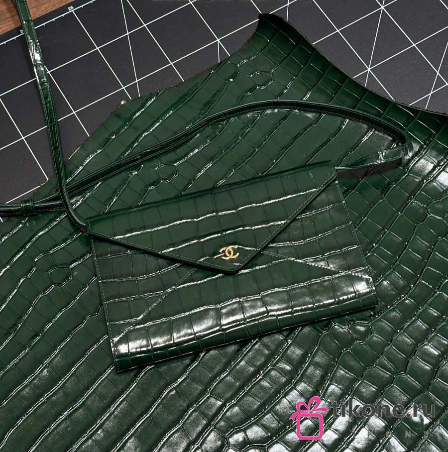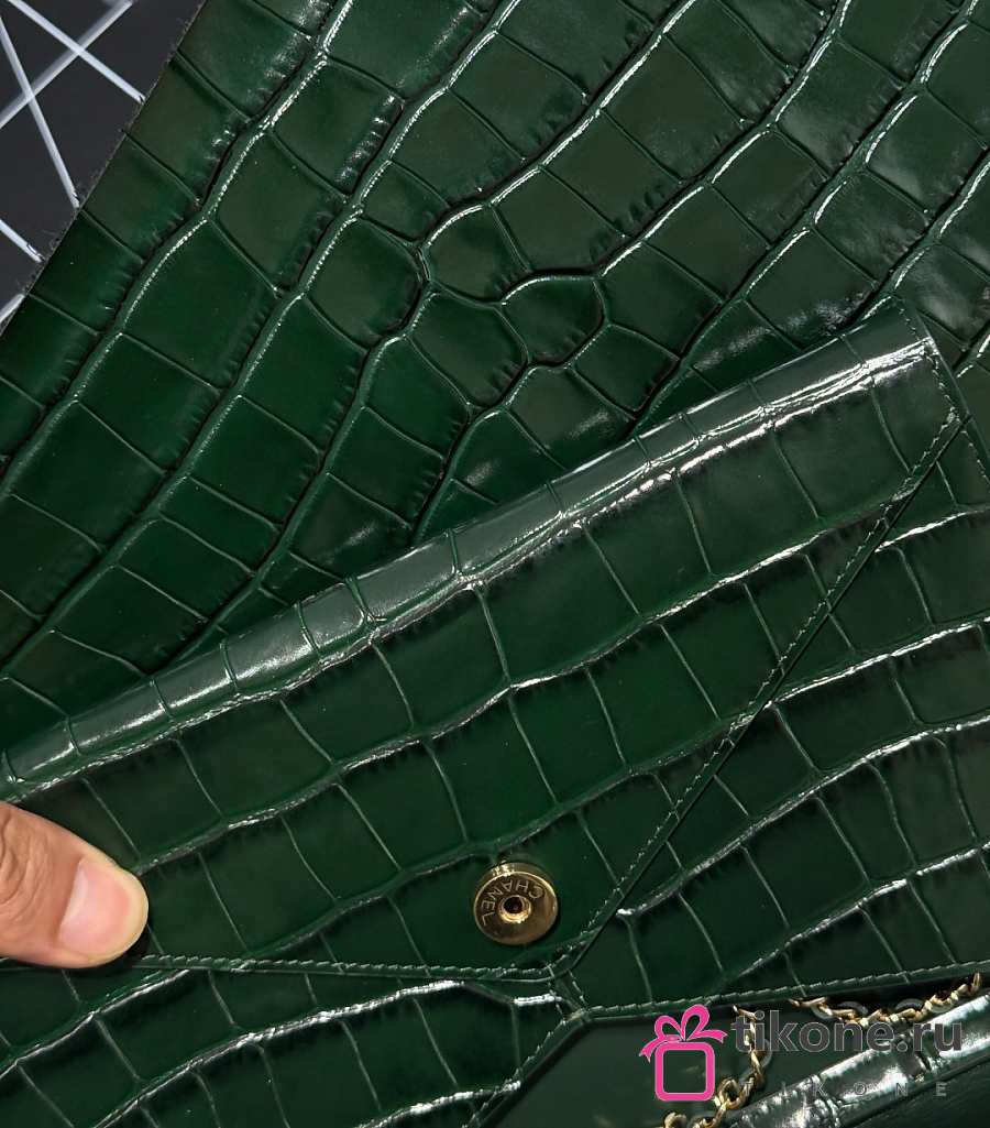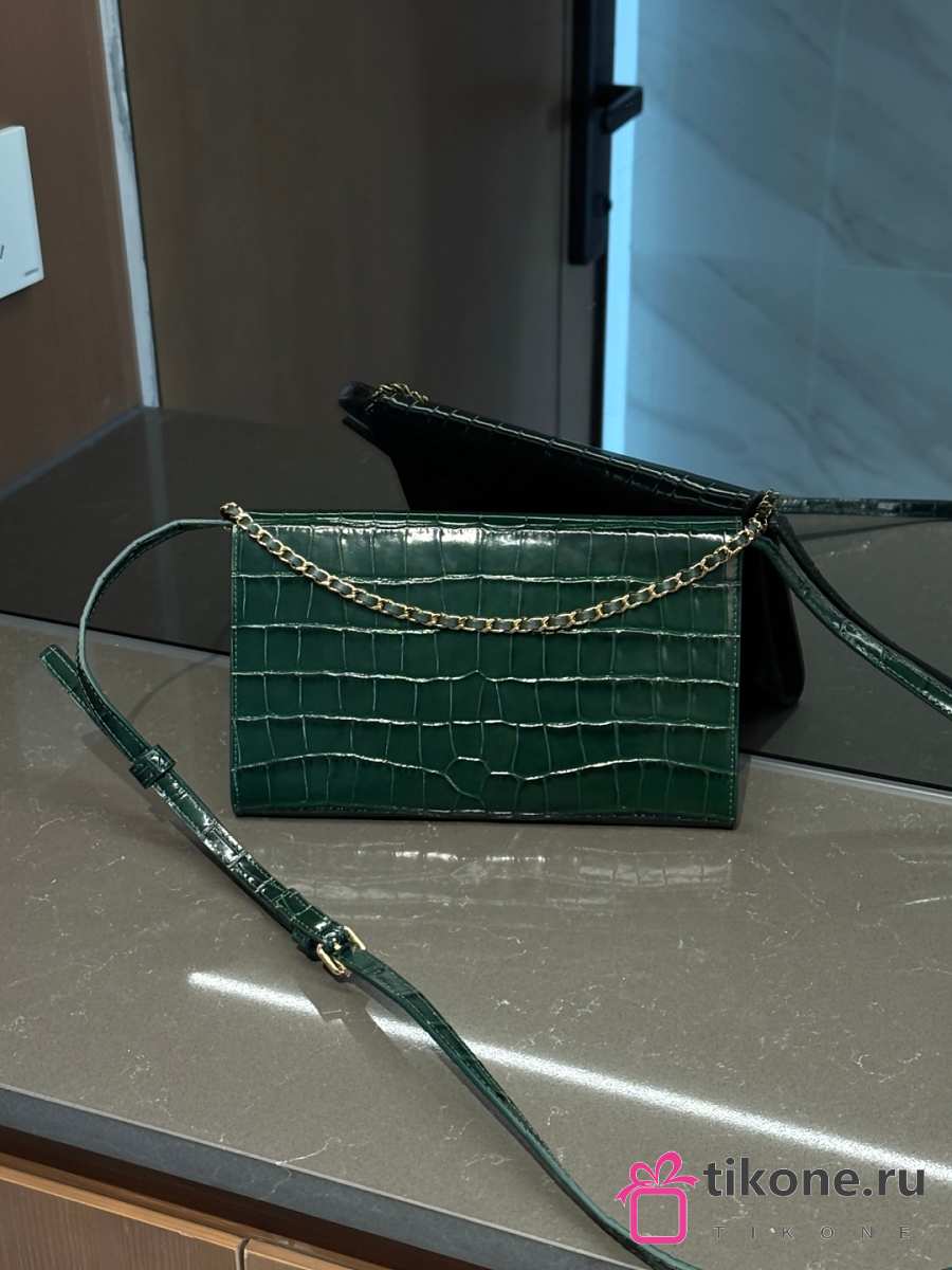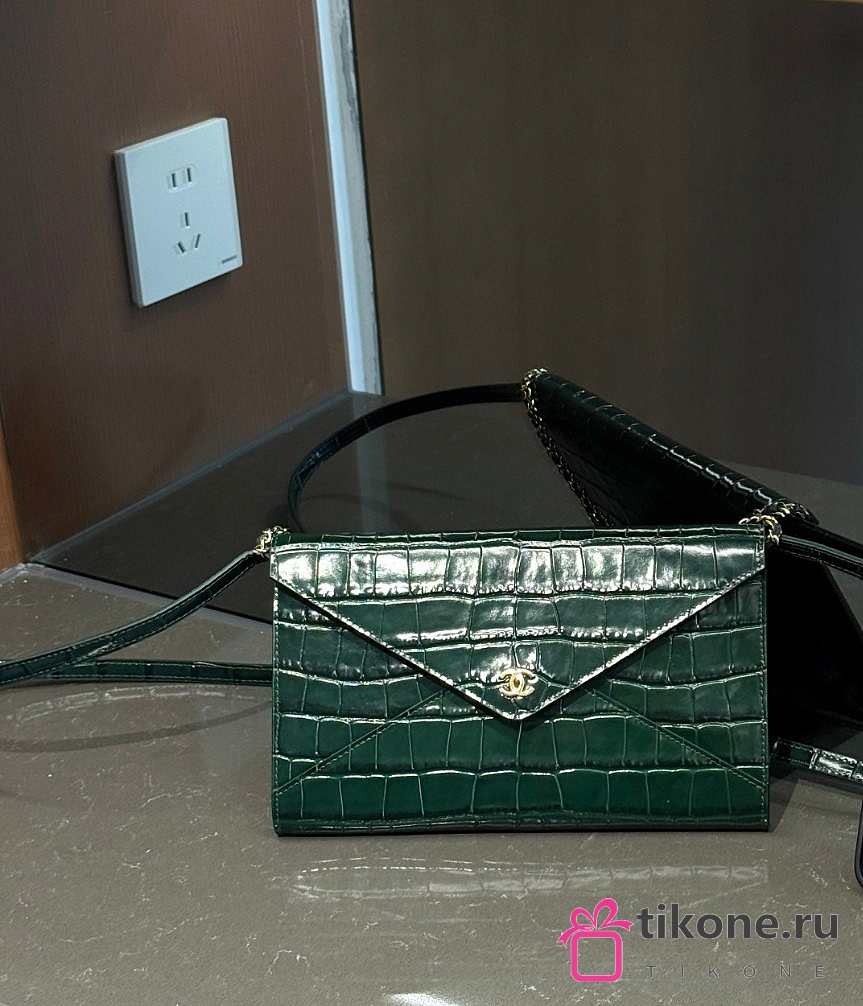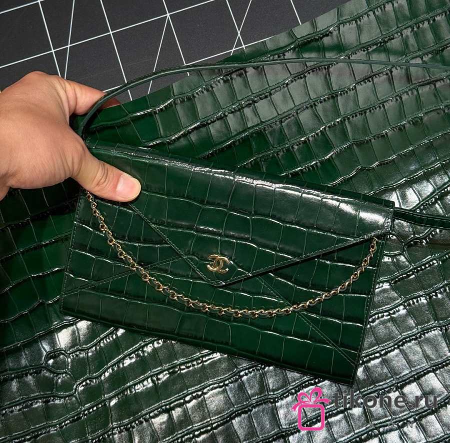 Chanel Clutch with Leather Strap Crocodile Embossed Calfskin & Gold-Tone Metal Green - 21.5x13x2cm