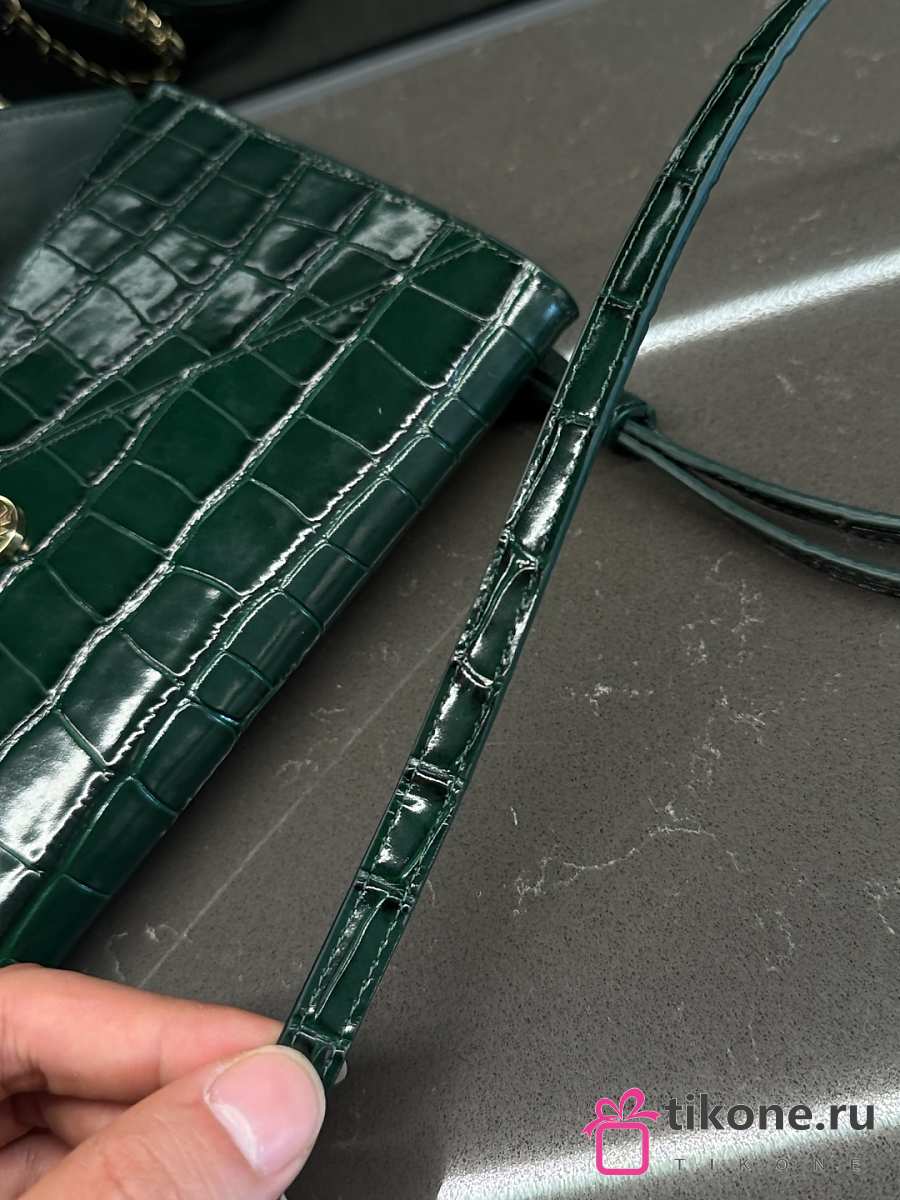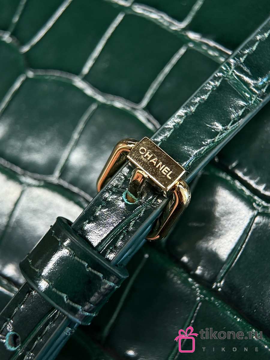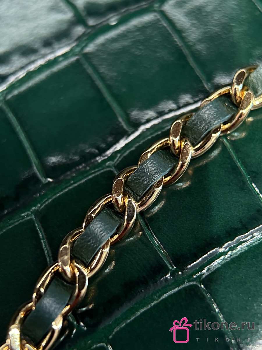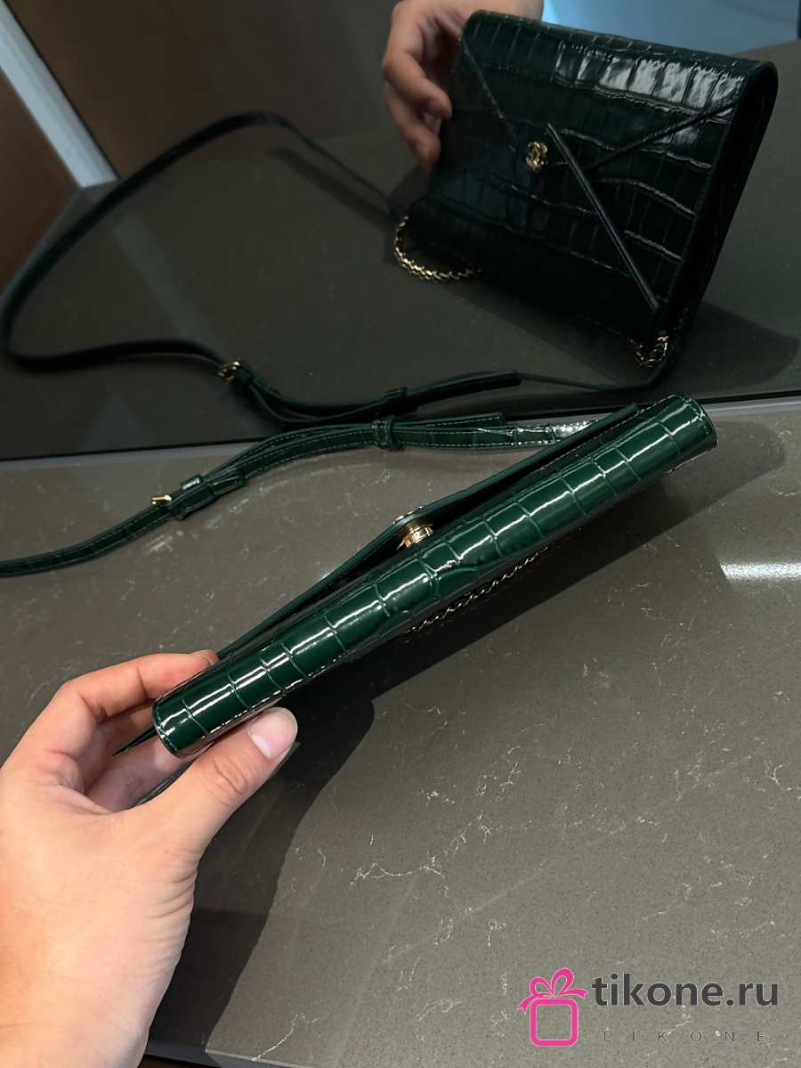 Chanel Clutch with Leather Strap Crocodile Embossed Calfskin & Gold-Tone Metal Green - 21.5x13x2cm