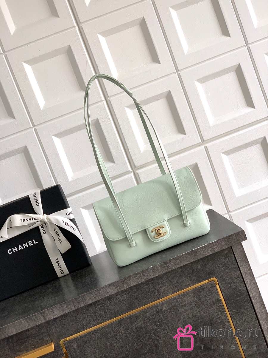 Chanel Clutch with Leather Strap Grained Shiny Calfskin & Gold-Tone Metal Light Green - 17x11.5x5cm