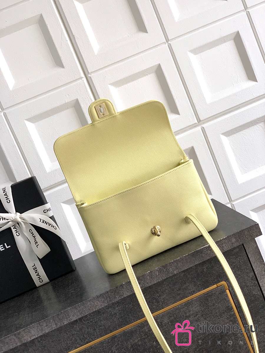 Chanel Clutch with Leather Strap Grained Shiny Calfskin & Gold-Tone Metal Light Yellow - 17x11.5x5cm