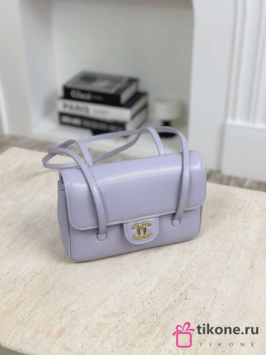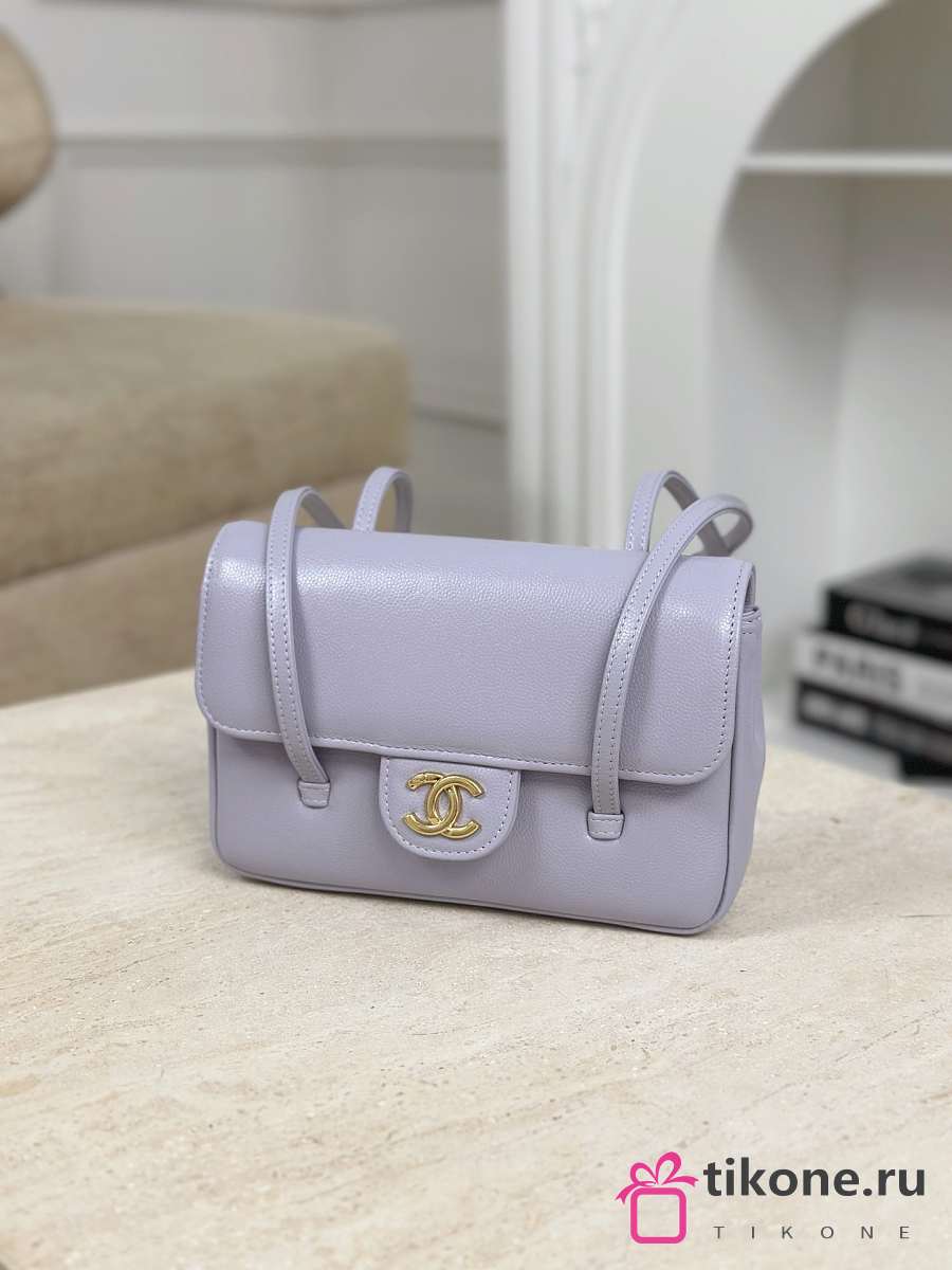 Chanel Clutch with Leather Strap Grained Shiny Calfskin & Gold-Tone Metal Purple - 17x11.5x5cm
