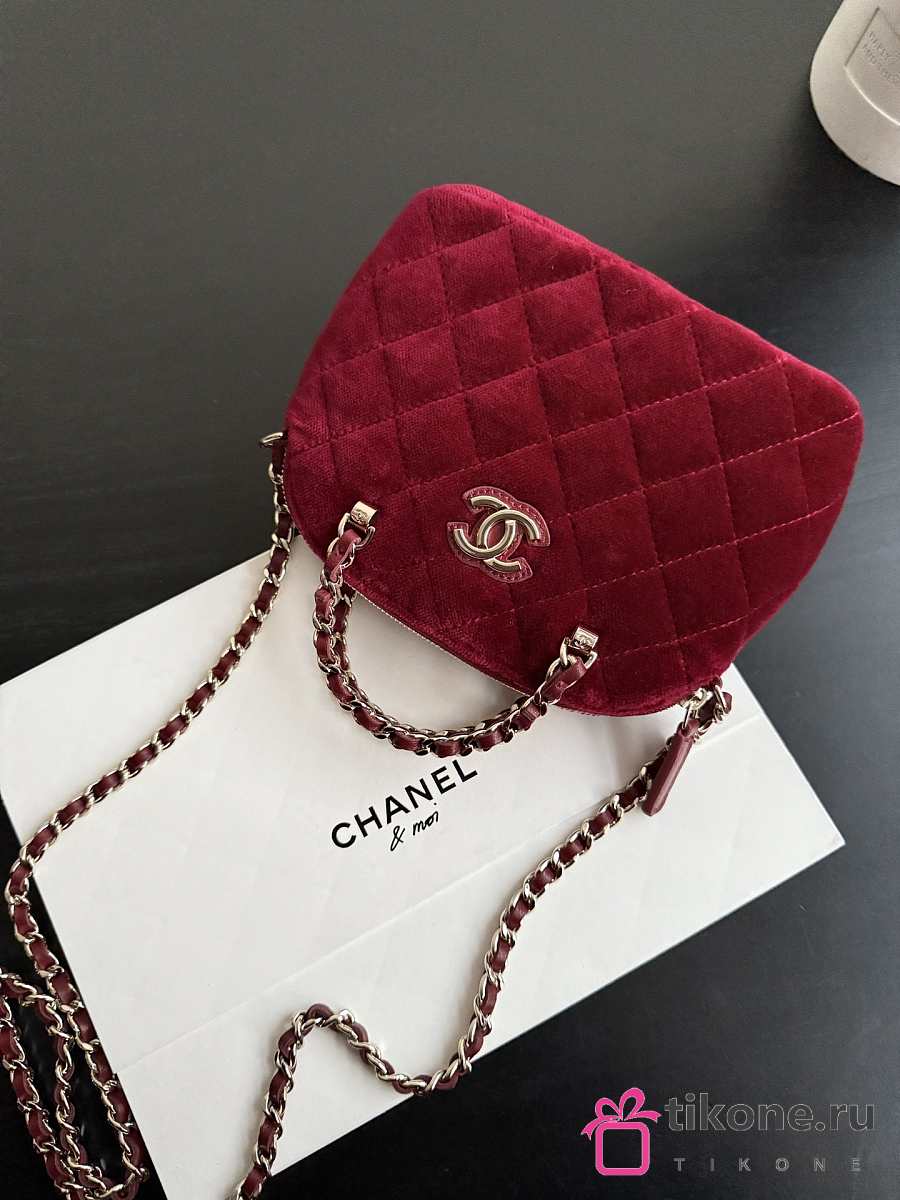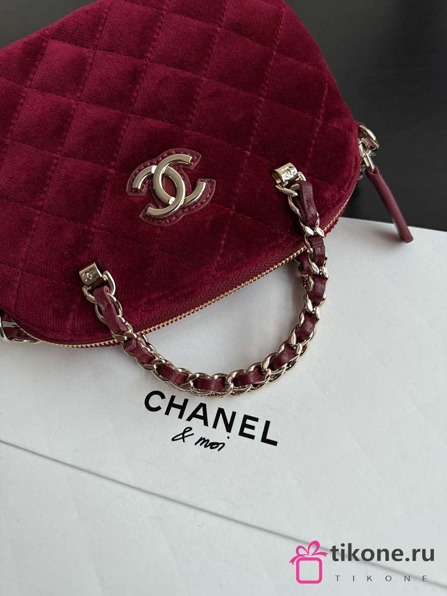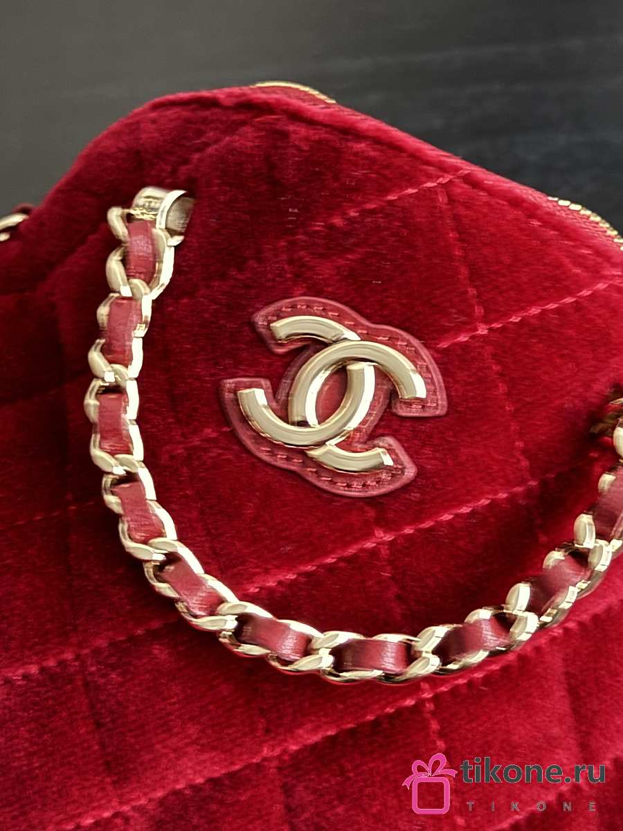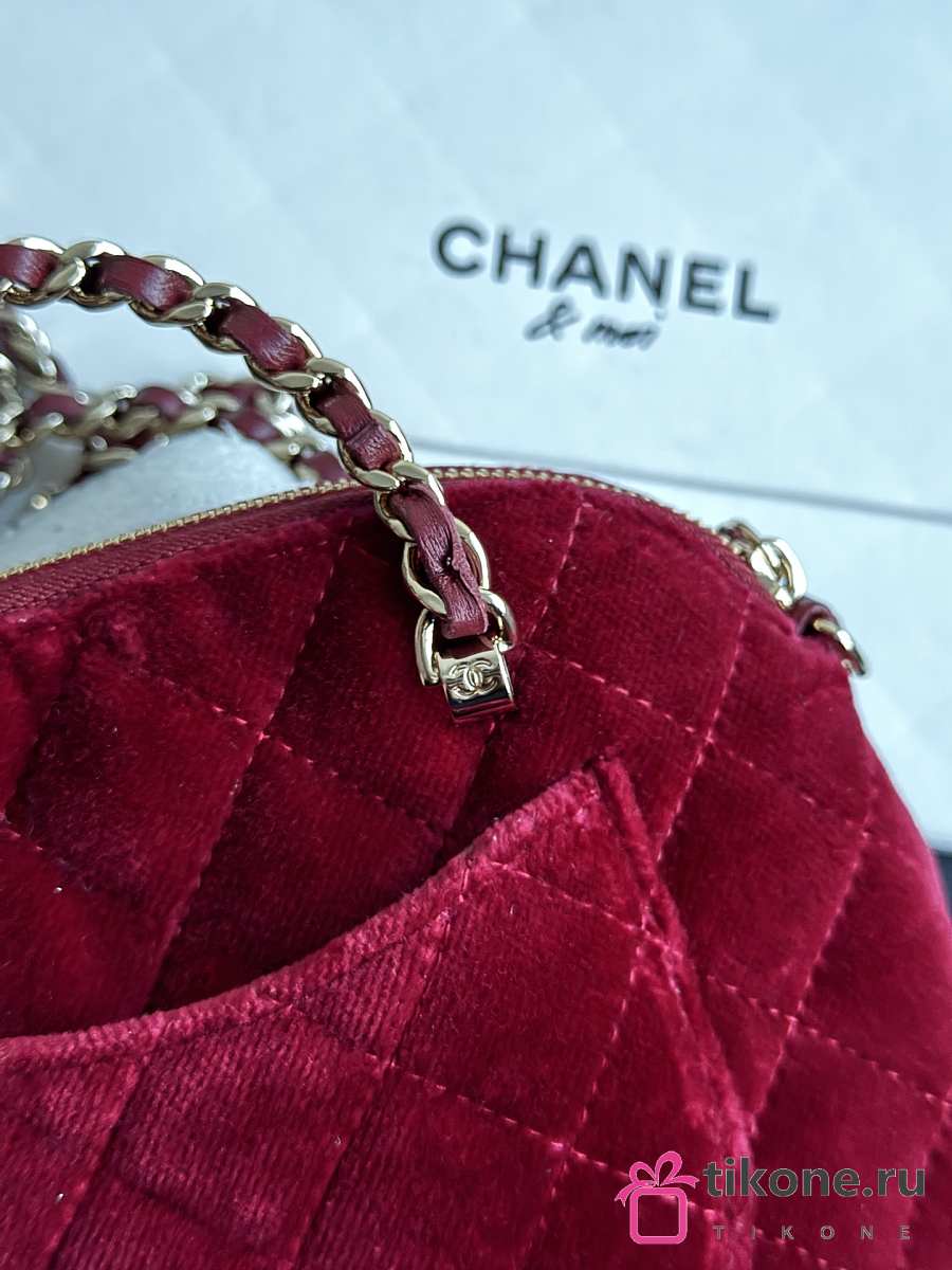 Chanel Clutch with Strap Velvet & Gold Metal Red - 11×16×5.5cm