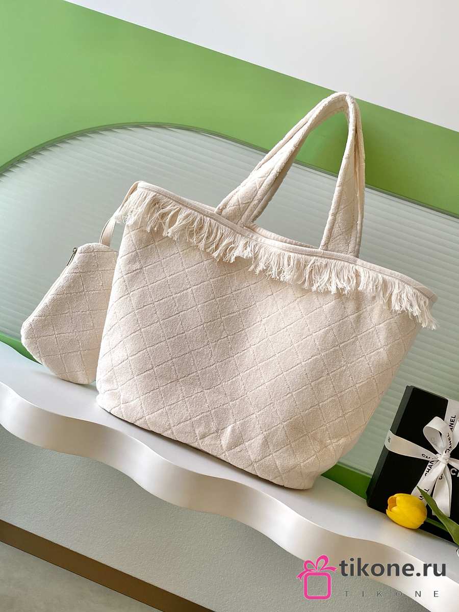 Chanel Coco Beach Quilted Terry Tote White - 58x38x20cm