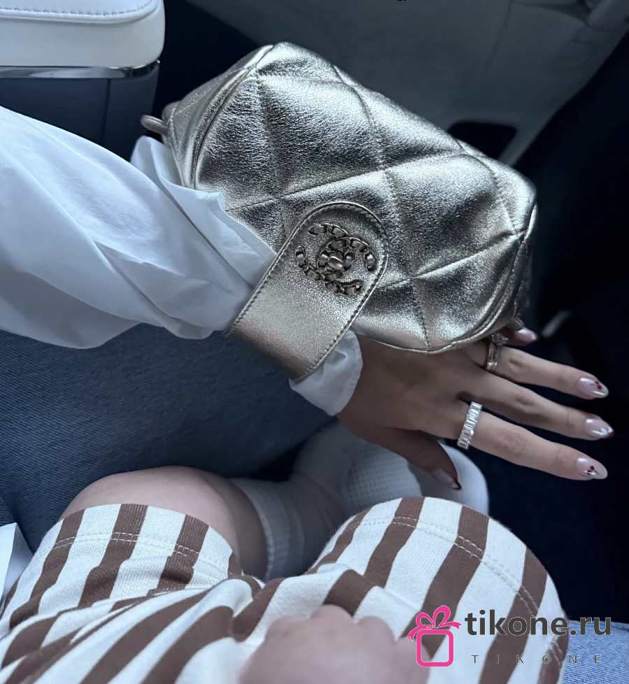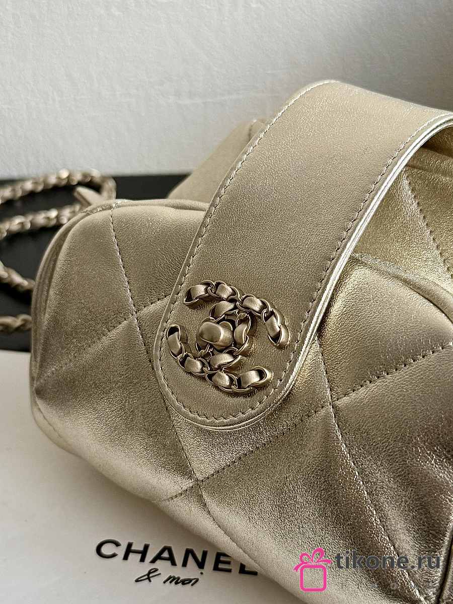 Chanel 19 Handbag Gold Tone Silver Tone & Ruthenium Finish Metal Black - 16x26x9cm