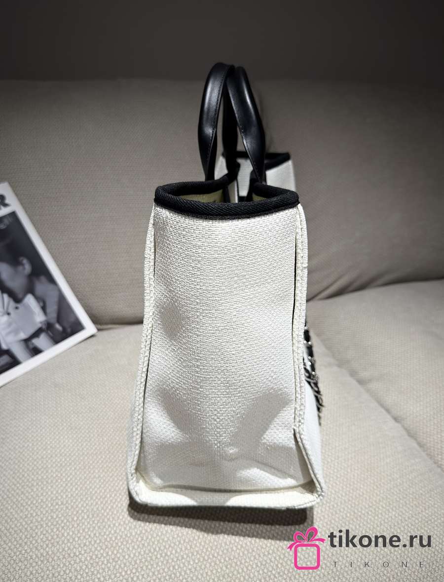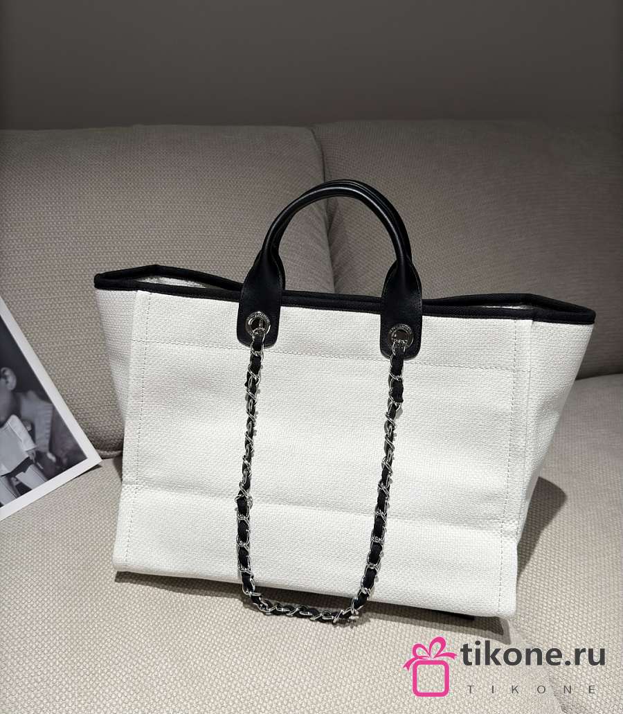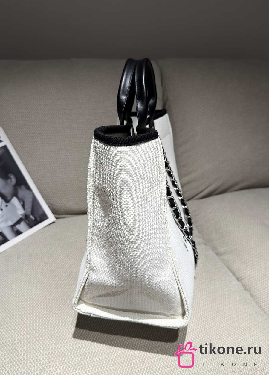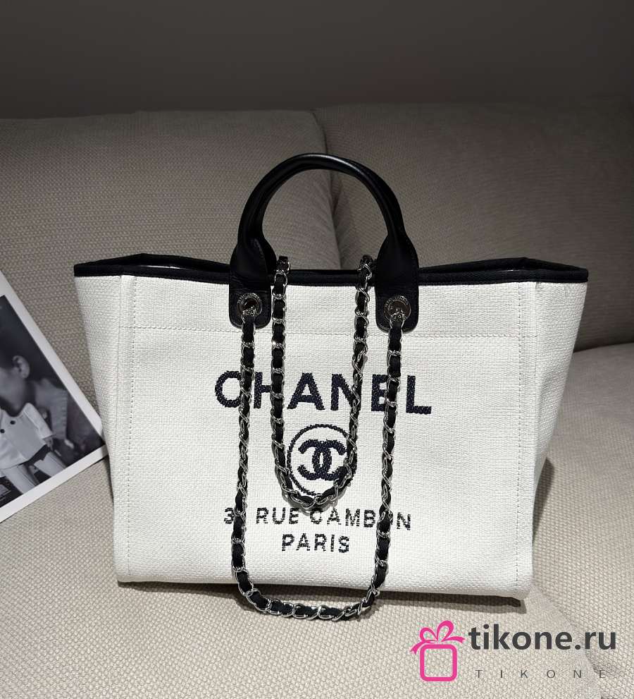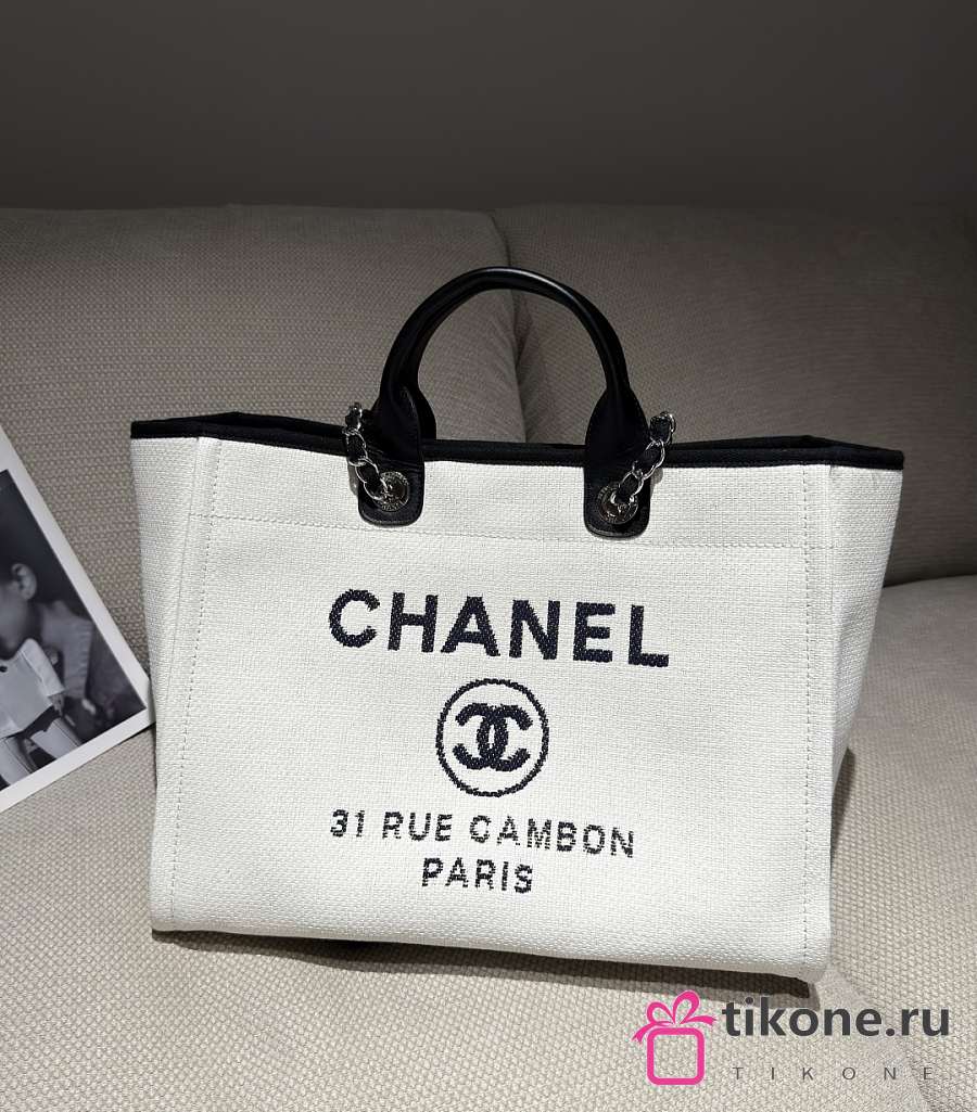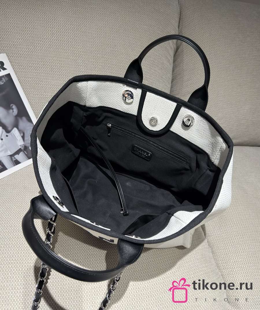 Chanel Deauville Shopping Bag Canvas & Gold Tone Metal White Black - 39x24x17cm