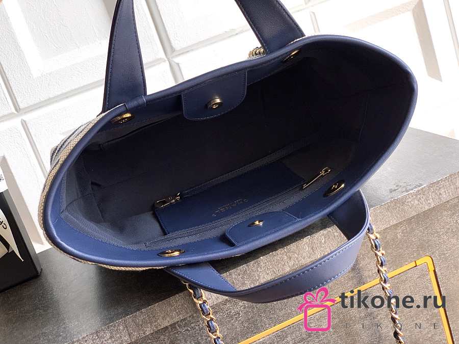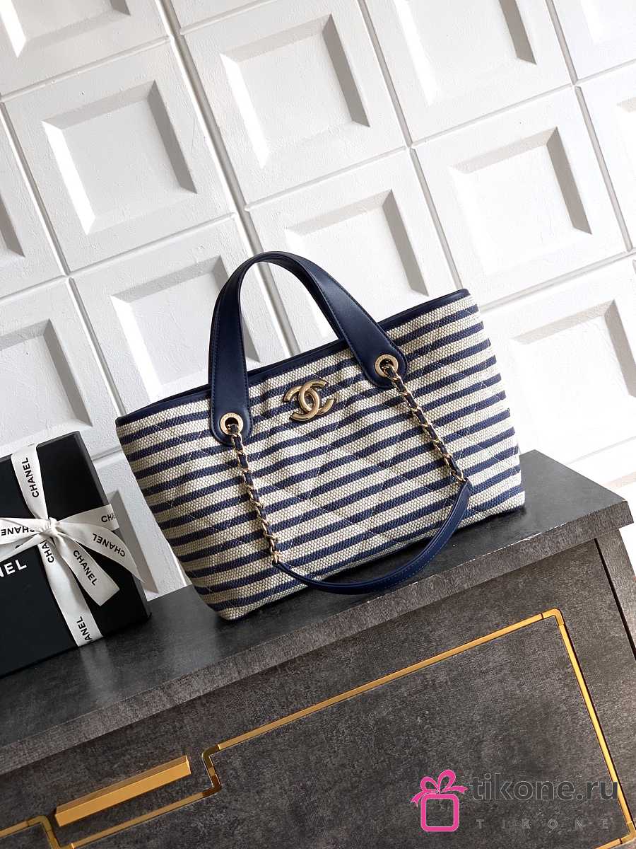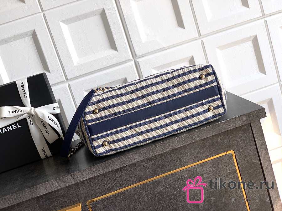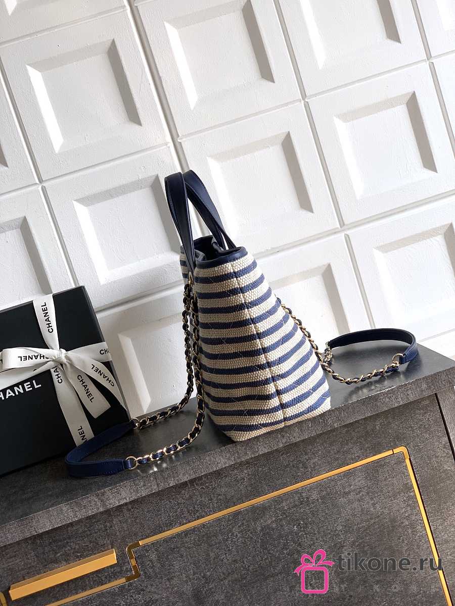 Chanel Deauville Tote Striped Canvas White Navy - 36x21.5x11cm