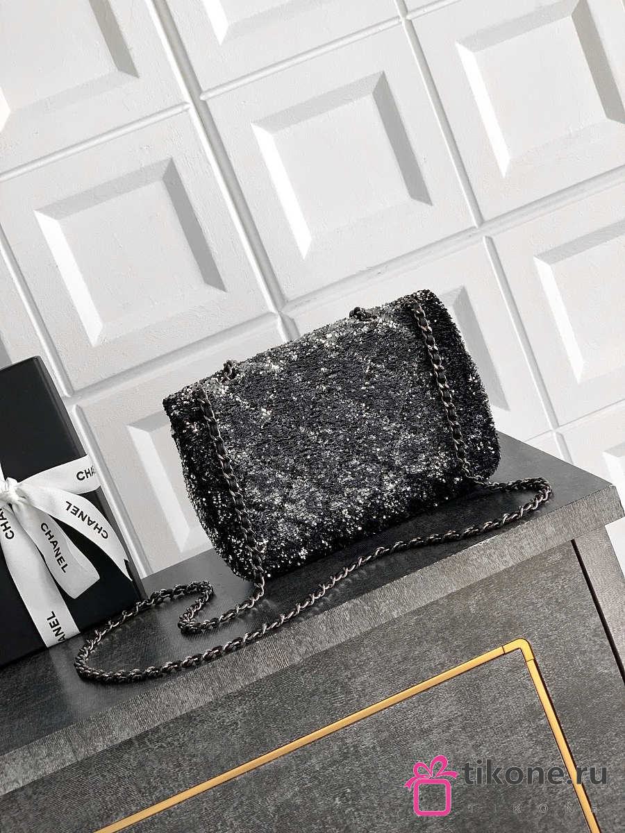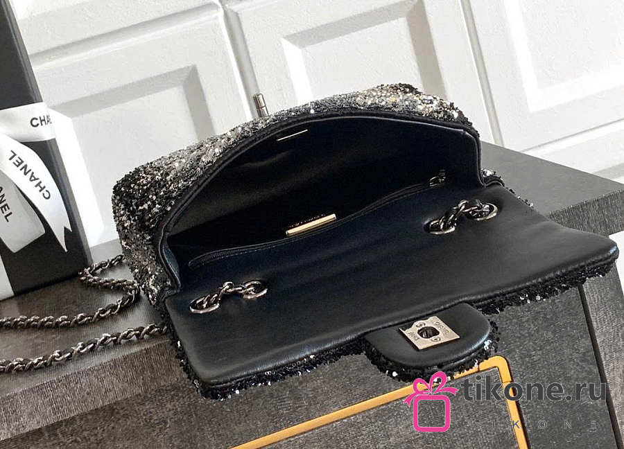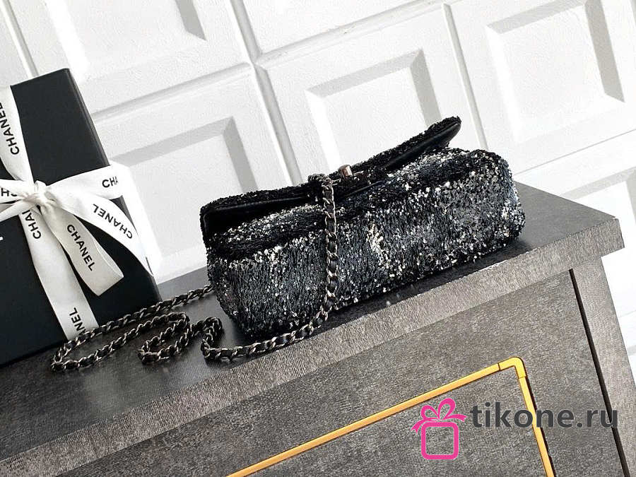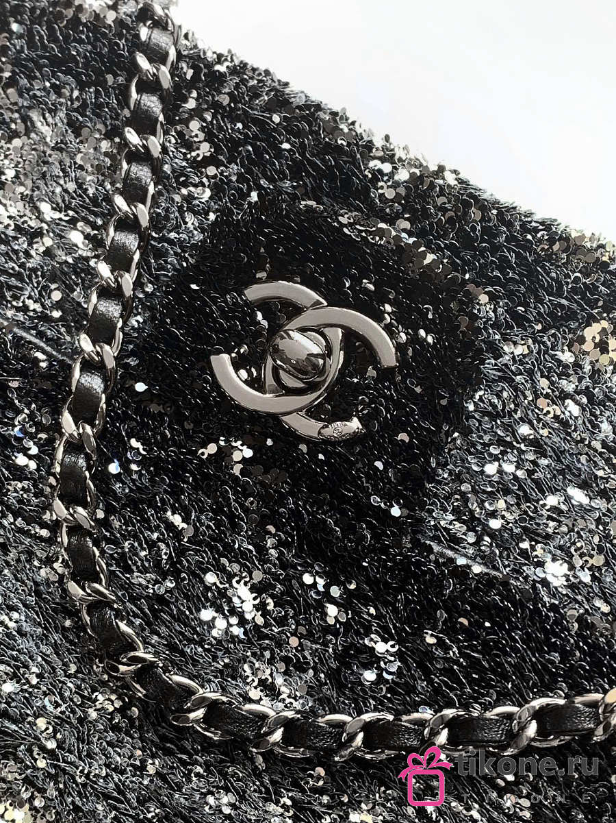 Chanel Evening Bag Quilted Sequins & Gold Tone Metal Black - 20x10x7cm