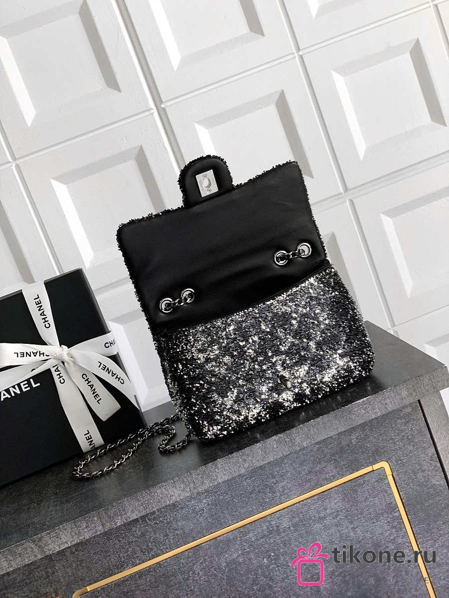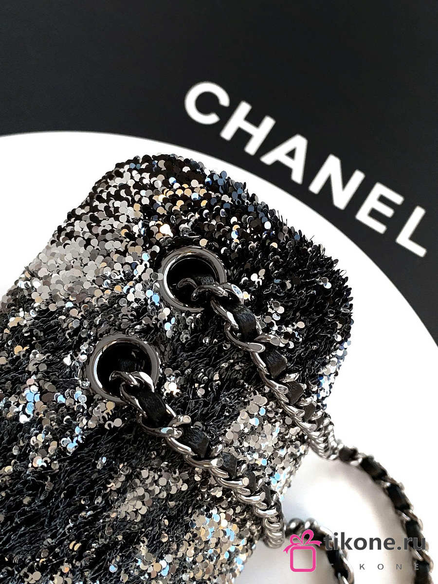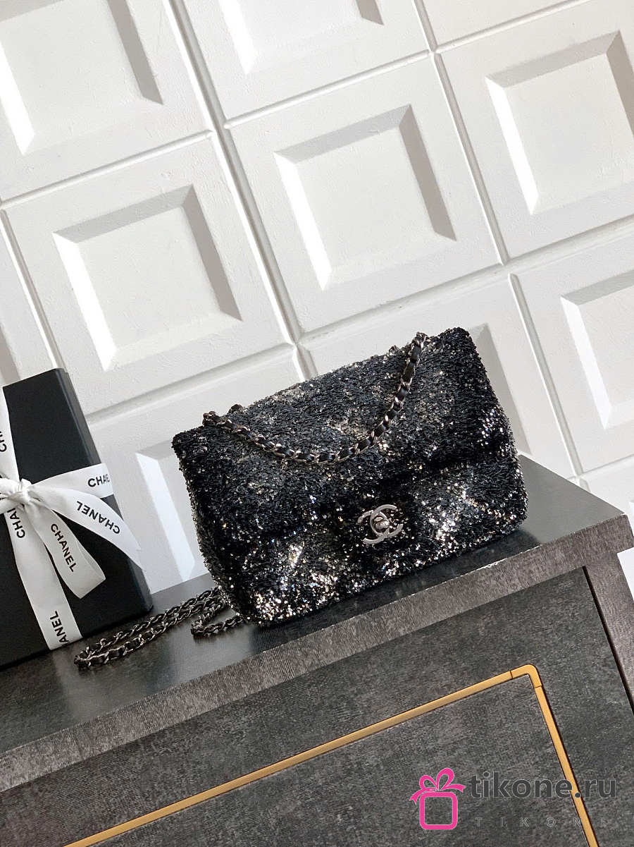 Chanel Evening Bag Quilted Sequins & Gold Tone Metal Black - 20x10x7cm
