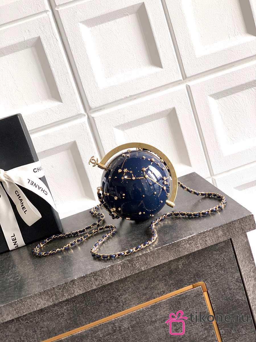 Chanel Evening Bag Resin Strass & Gold-Tone Metal Dark Blue & Gold - 18x11x11cm