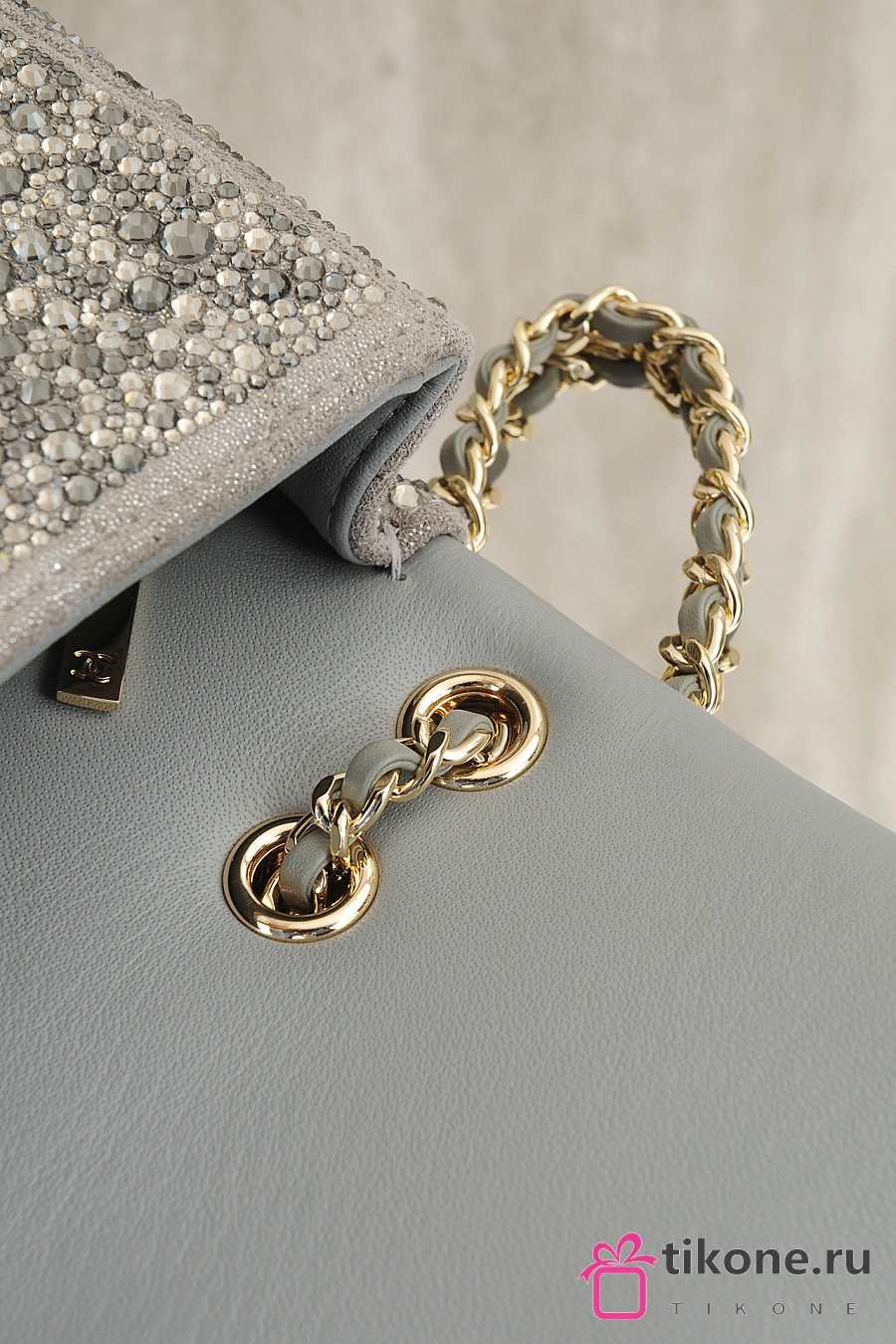 Chanel Mini Flap Bag with Top Handle Lambskin Gray - 20x14x5.5cm