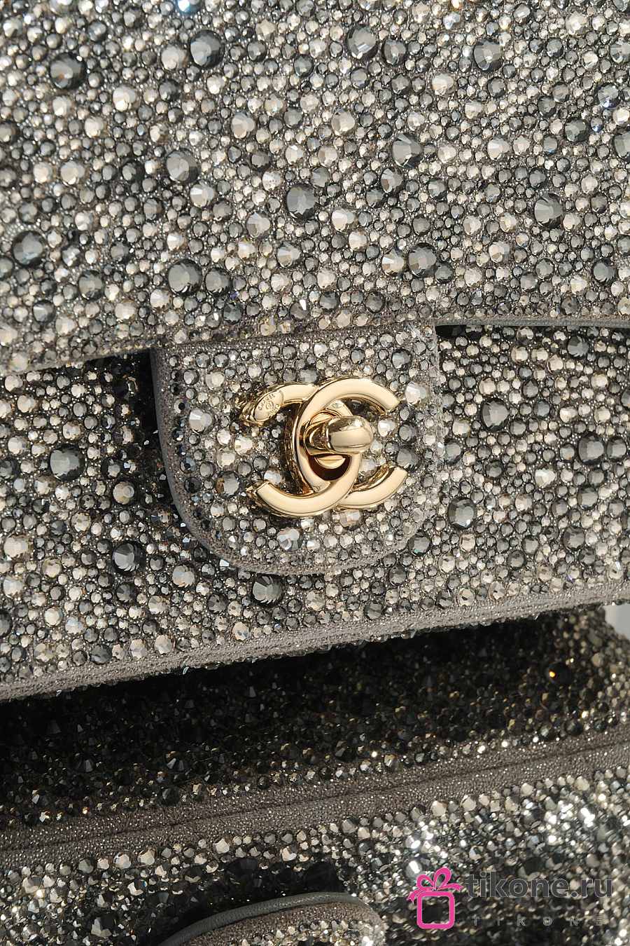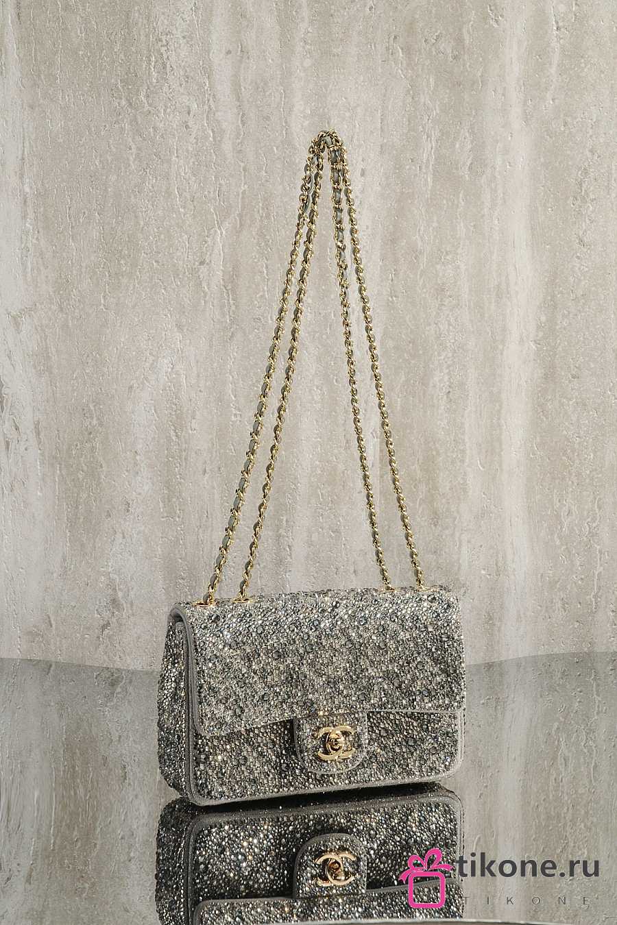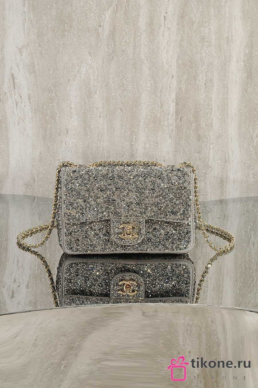 Chanel Evening Bag Strass Imitation Pearls & Gold-Tone Metal Dark Gray Pearly White & Light Gray - 21x13x8cm
