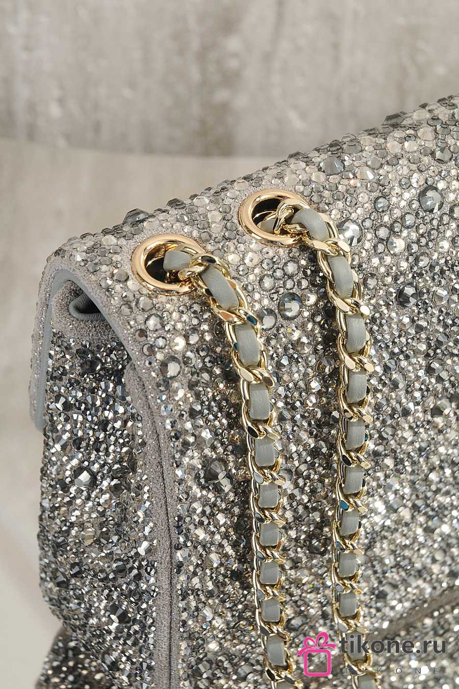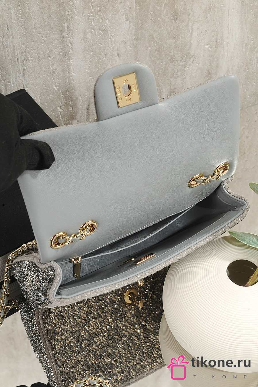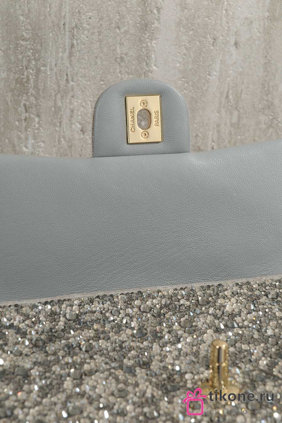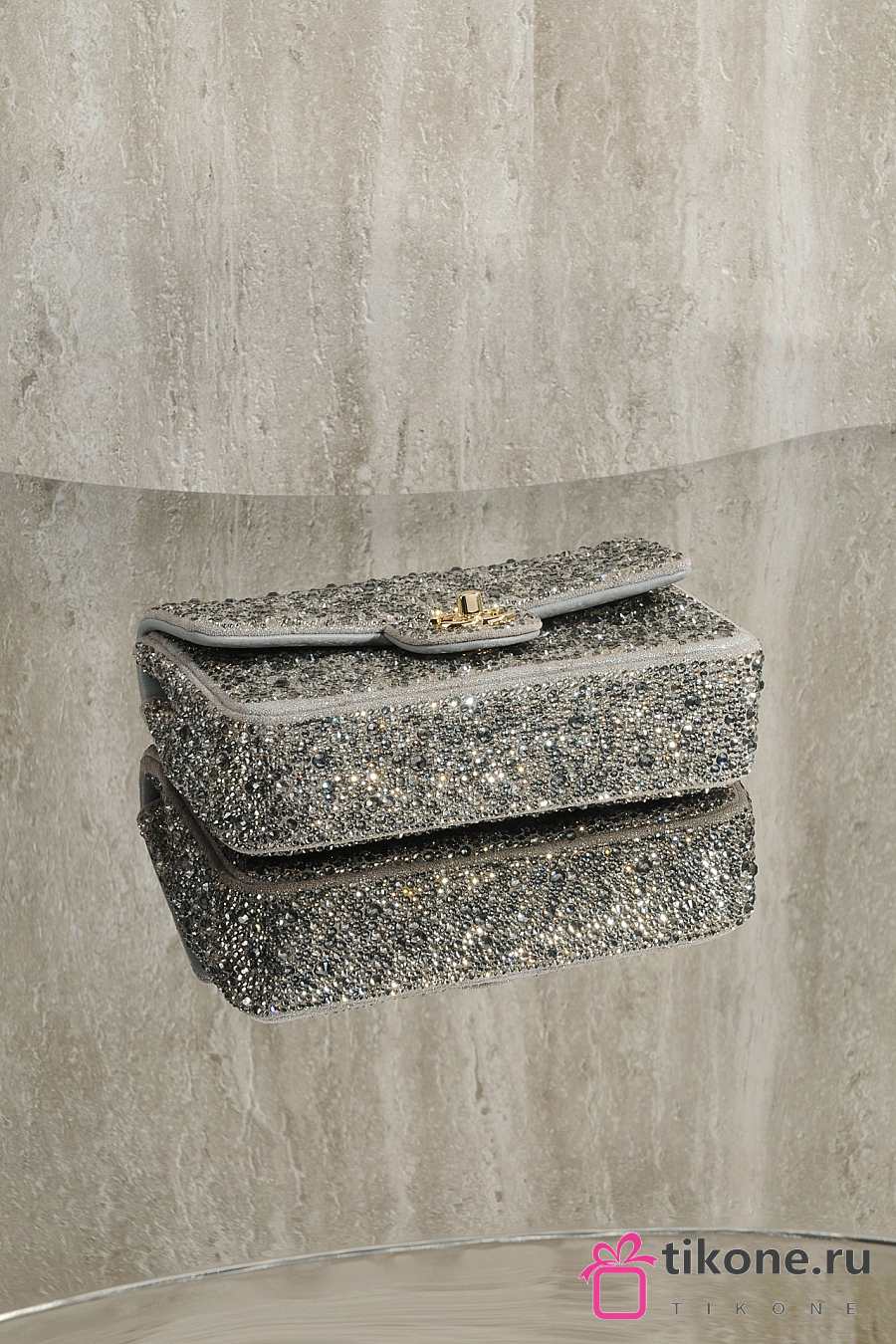 Chanel Evening Bag Strass Imitation Pearls & Gold-Tone Metal Dark Gray Pearly White & Light Gray - 21x13x8cm