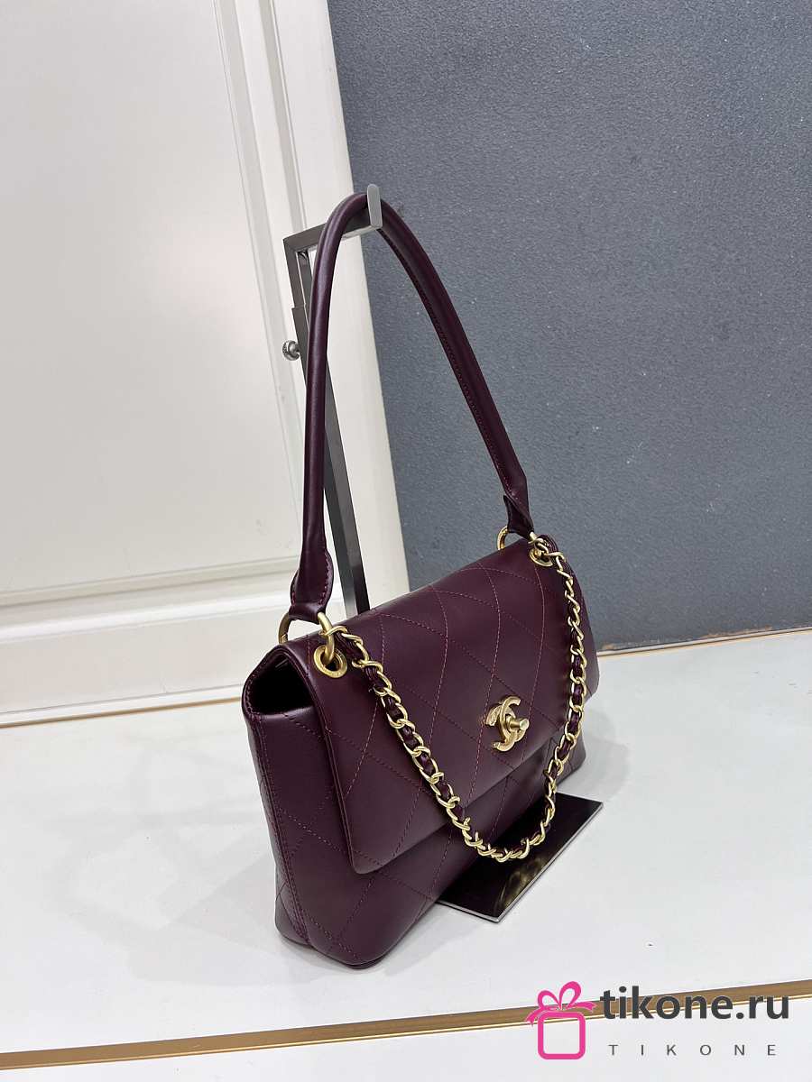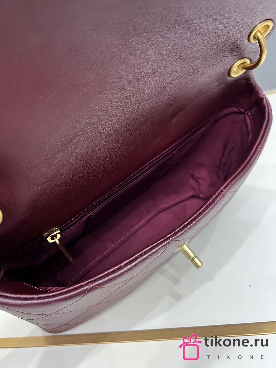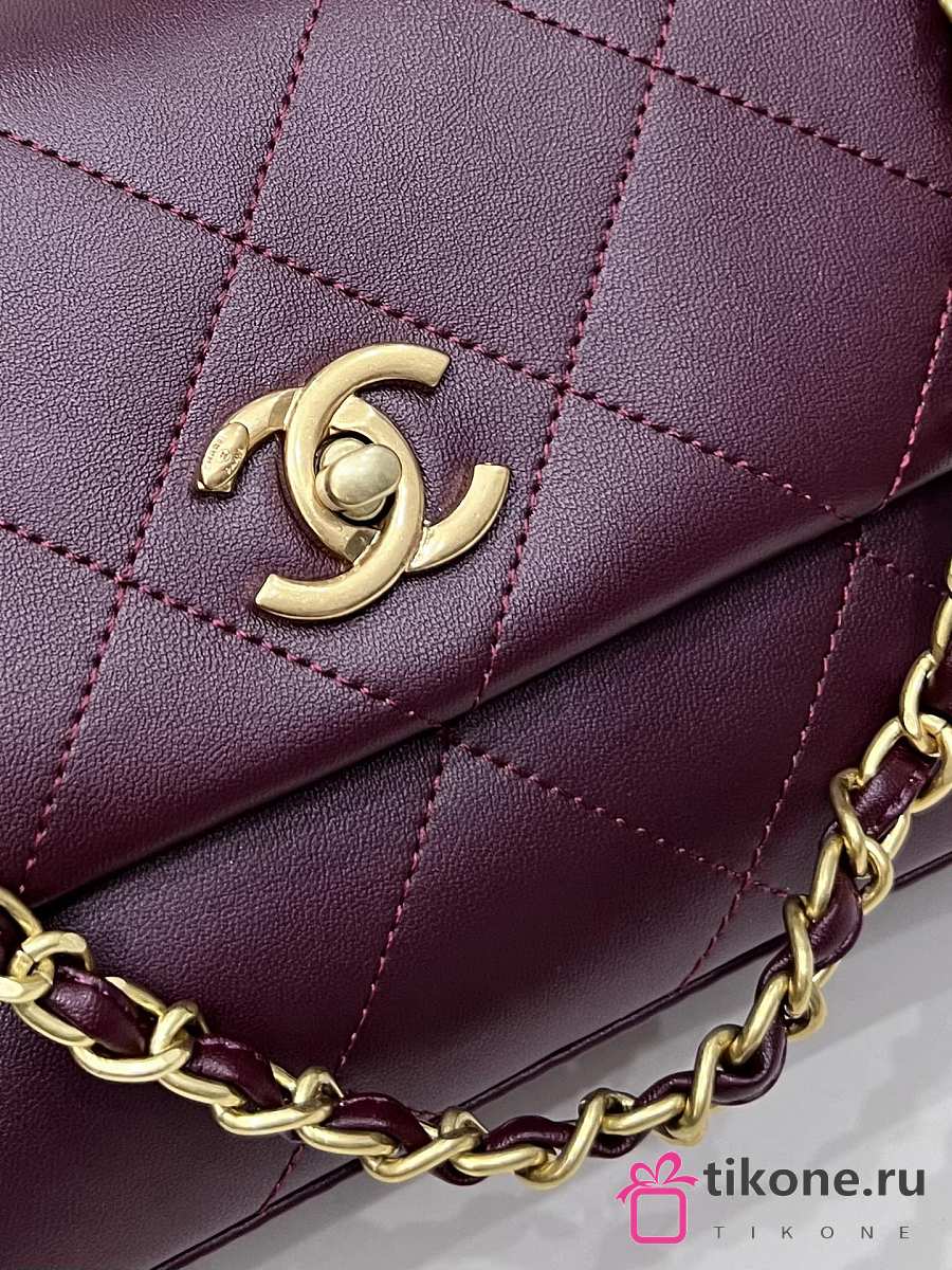 Chanel Flap Bag Lamskin & Gold-Tone Metal Dark Burgundy - 25x14.5x5cm