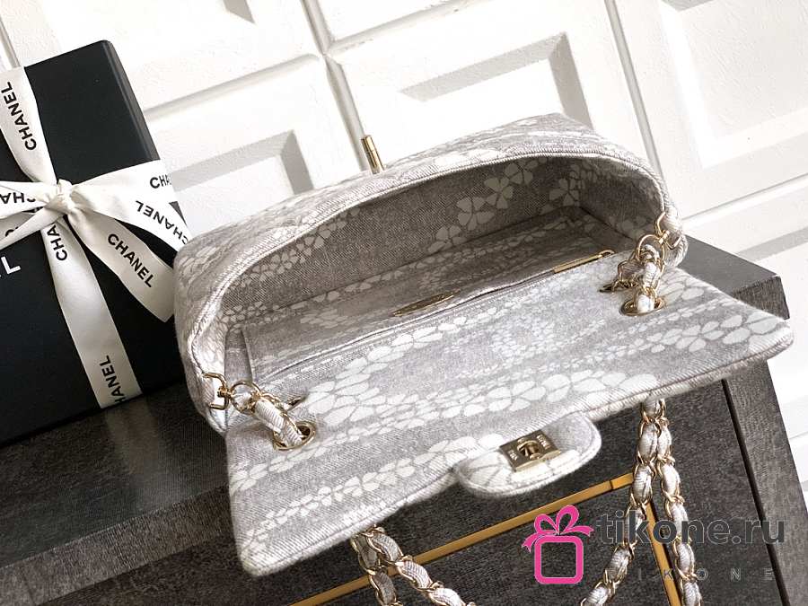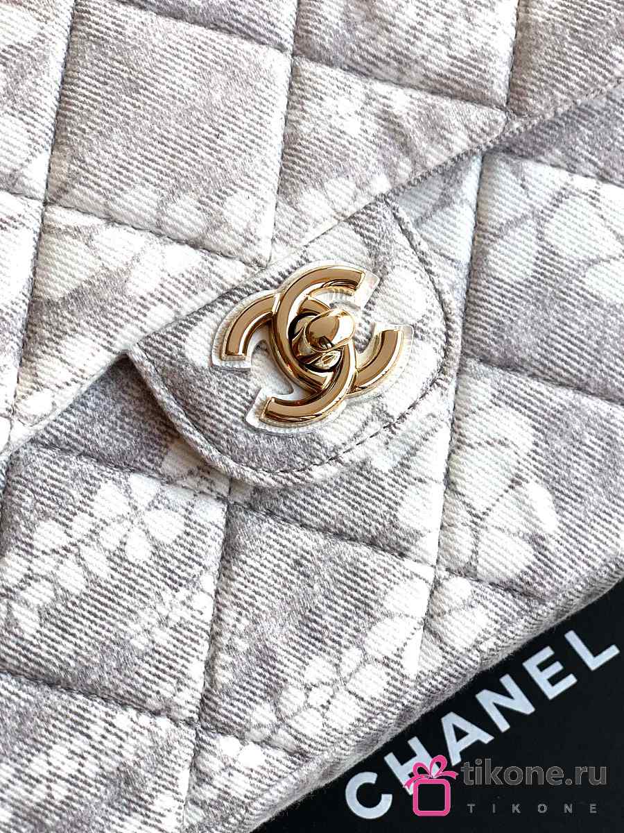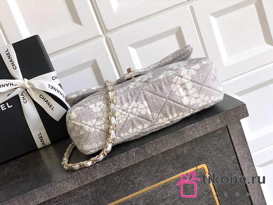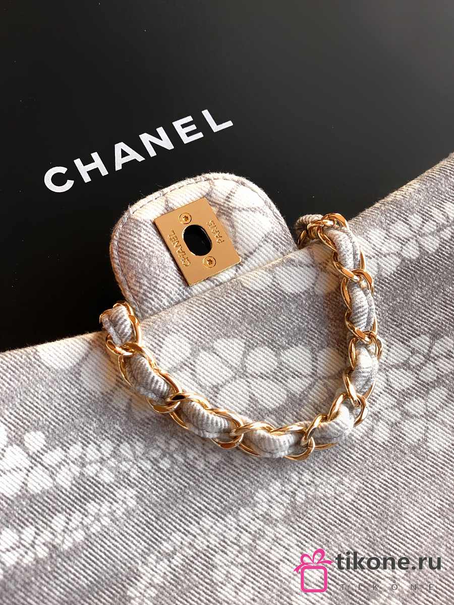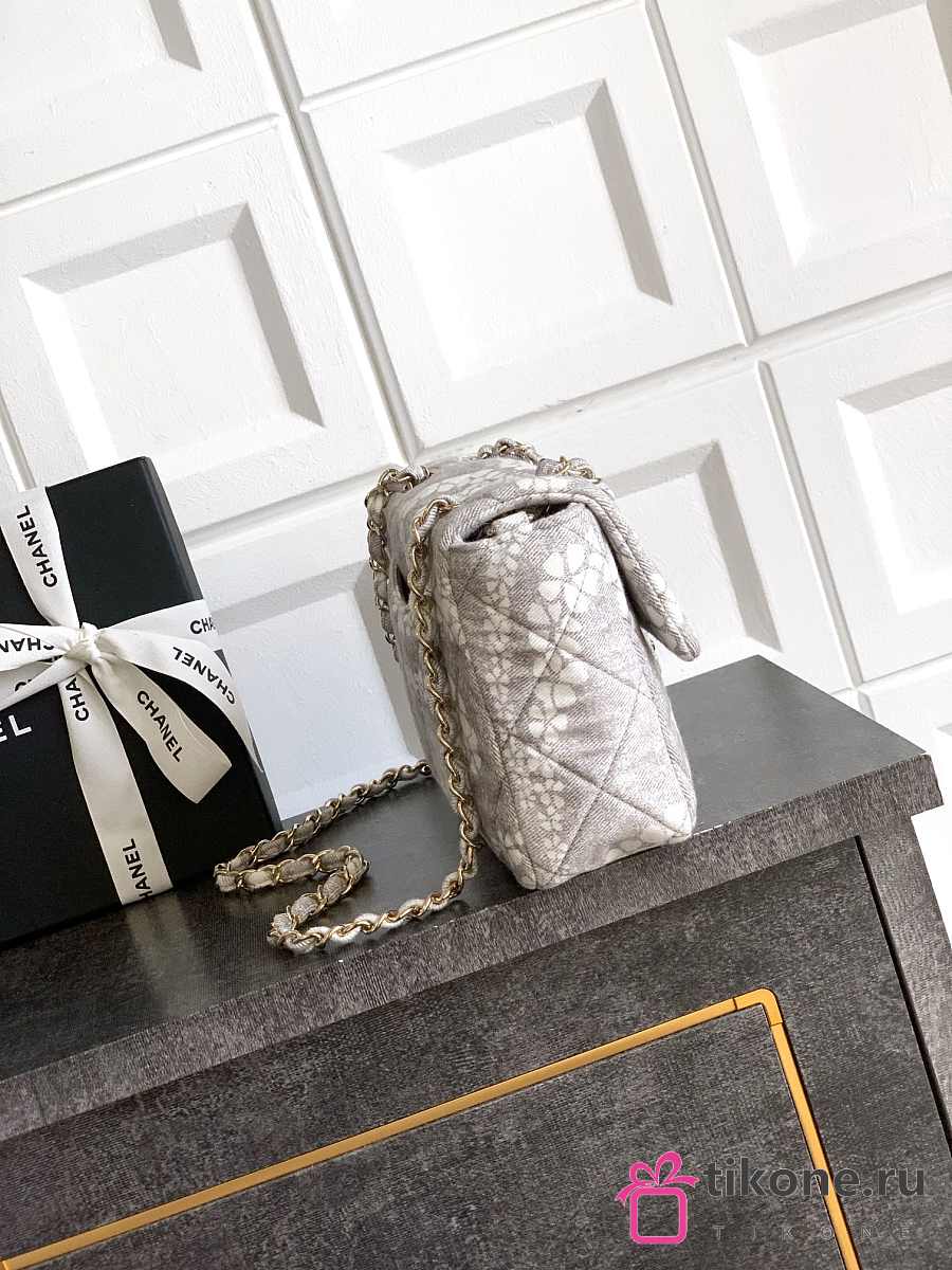 Chanel Flap Bag Printed Denim & Gold-Tone Metal White & Gray - 15x24x6.5cm