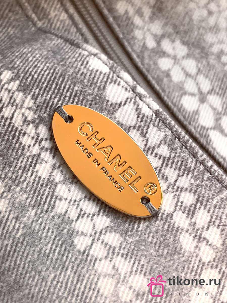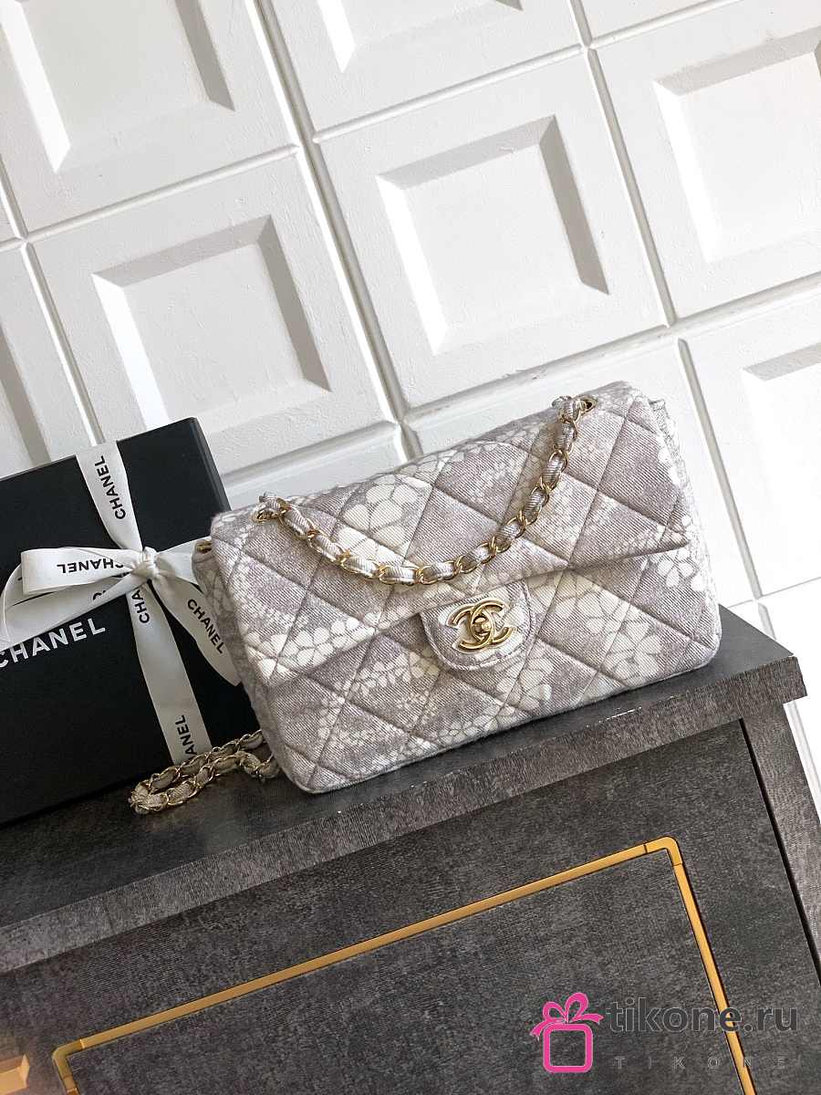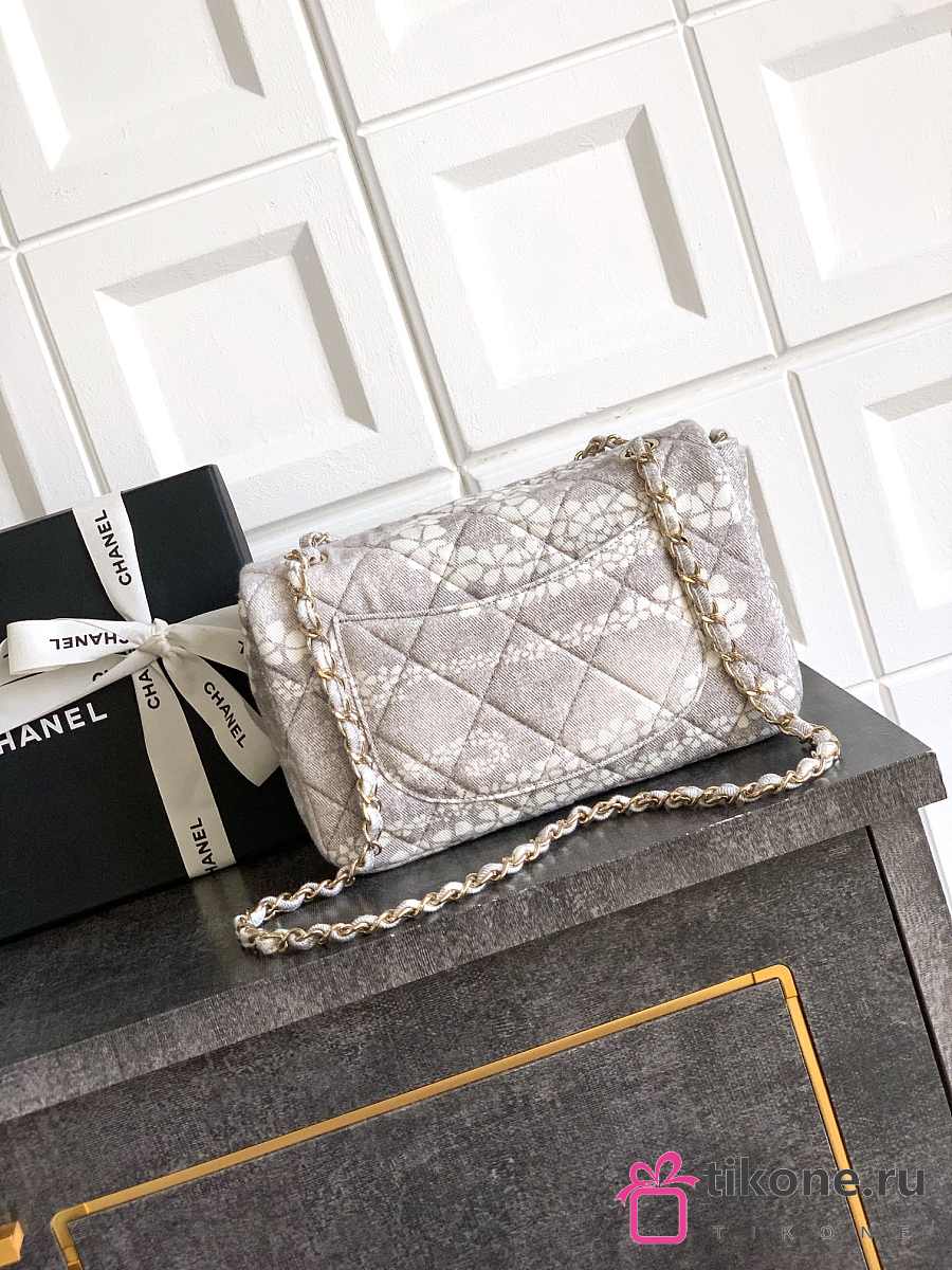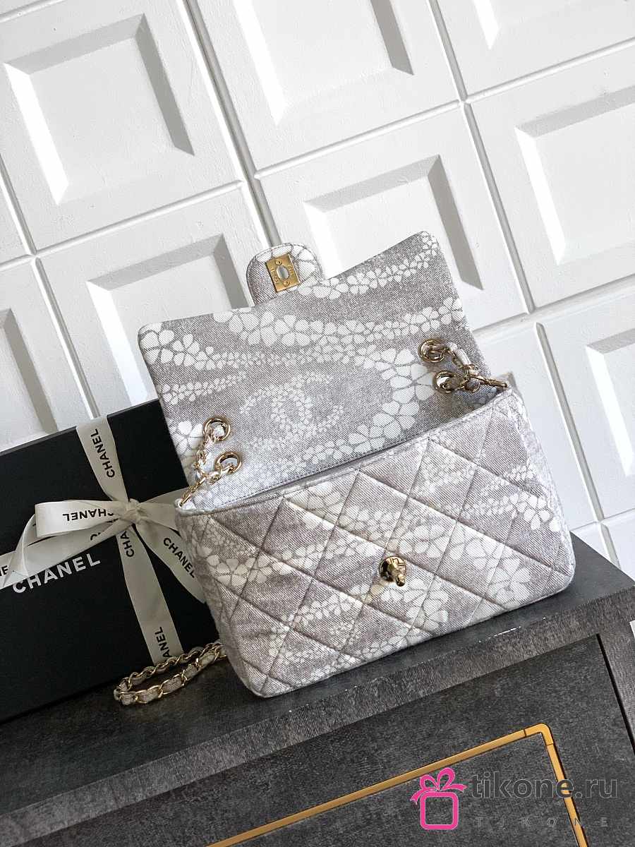 Chanel Flap Bag Printed Denim & Gold-Tone Metal White & Gray - 15x24x6.5cm