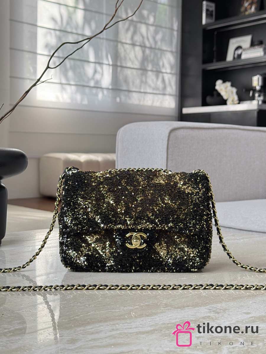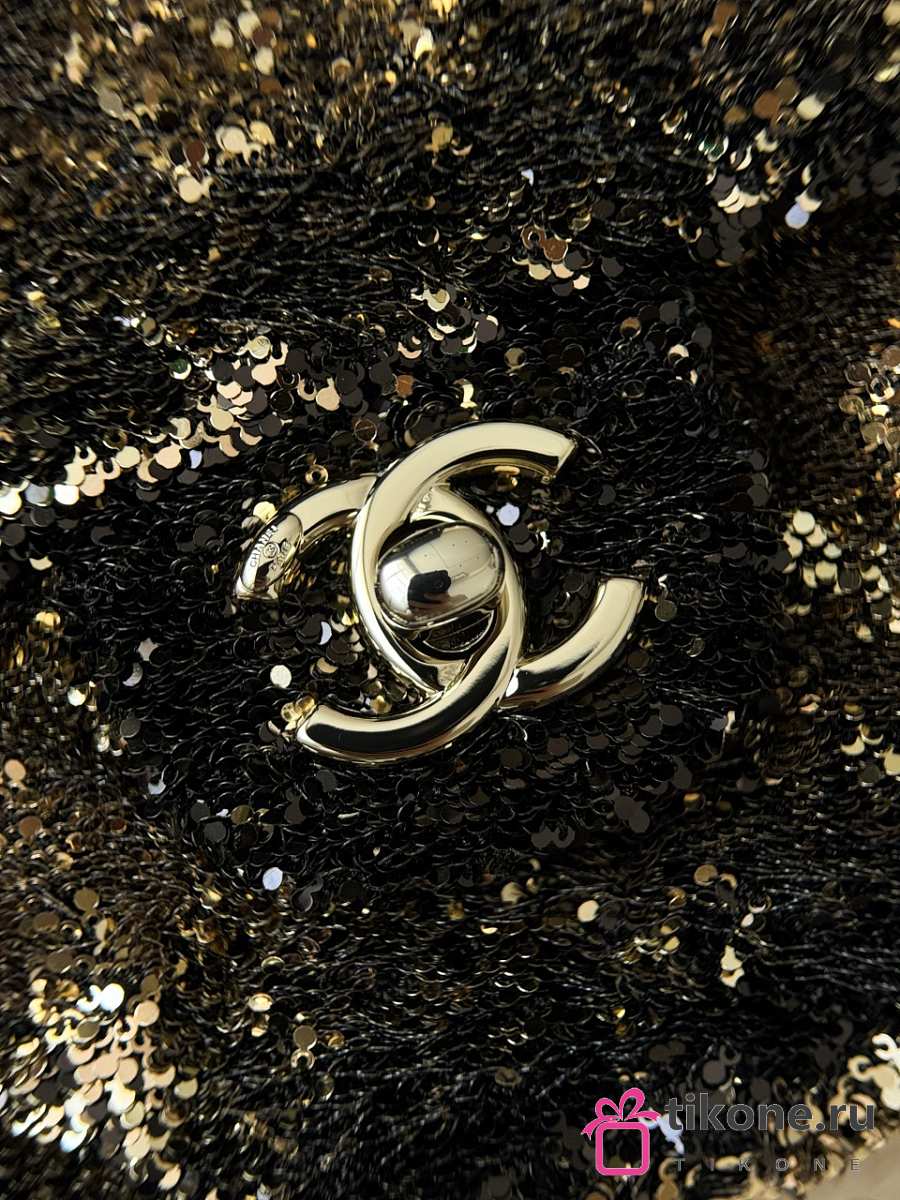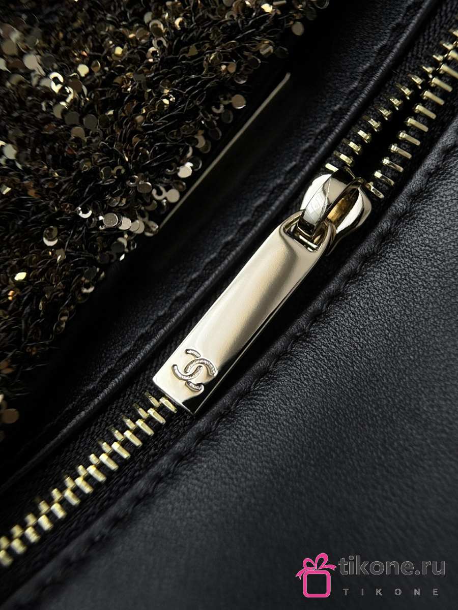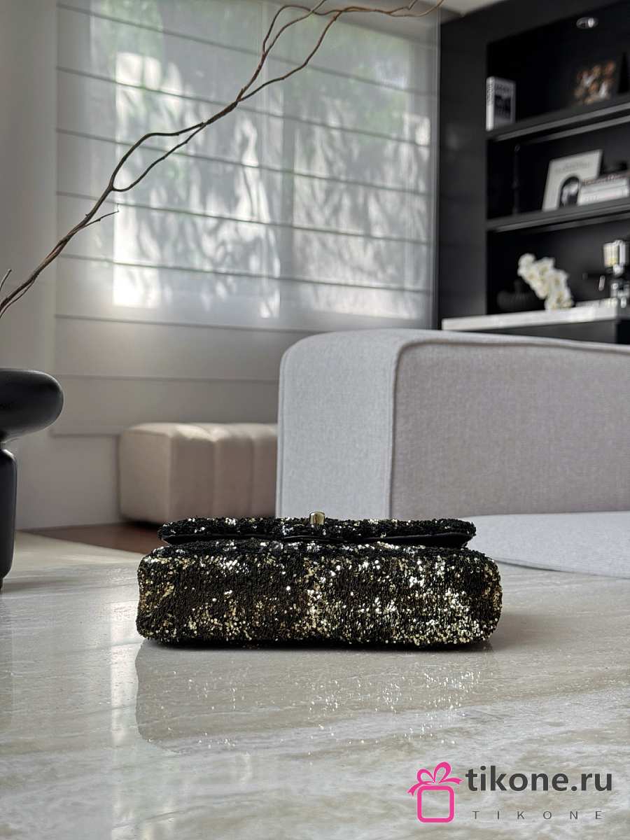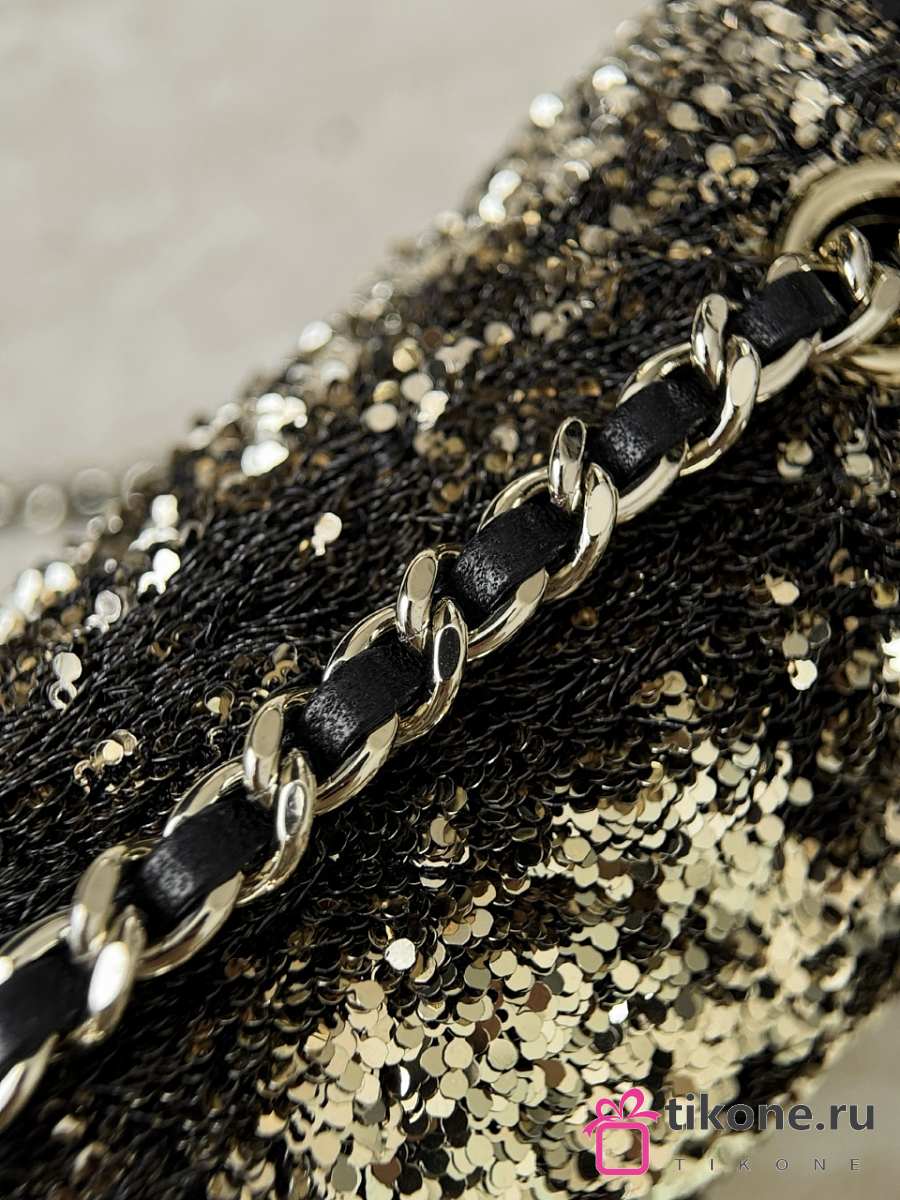 Chanel Flap Bag Quilted Gradient Sequins & Ruthenium Finish Metal Gold & Black - 21x14x8cm