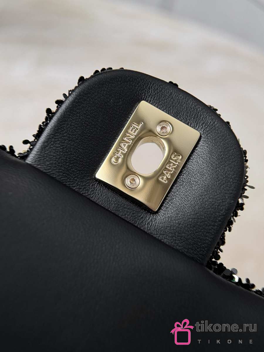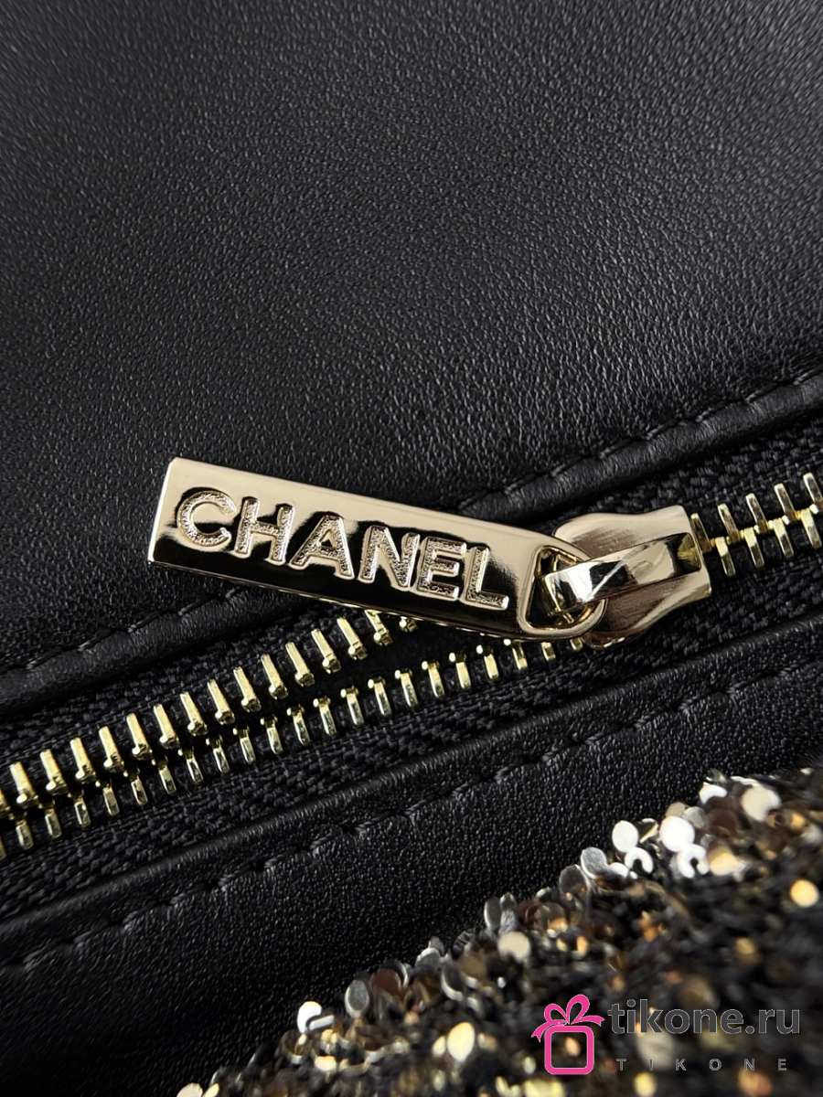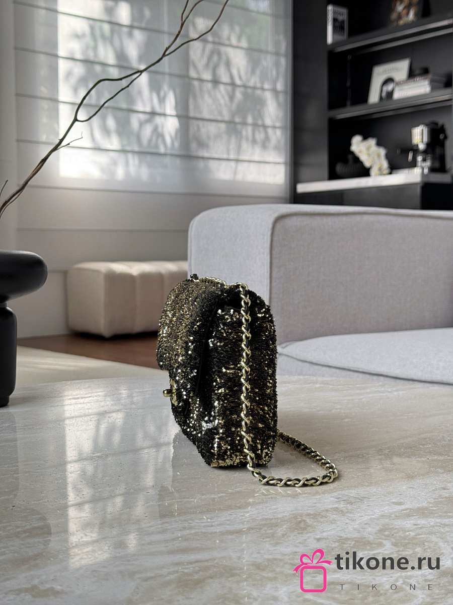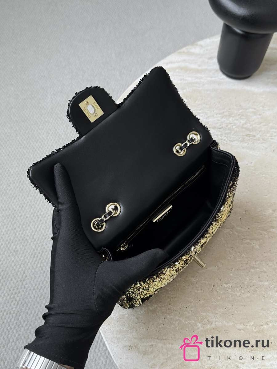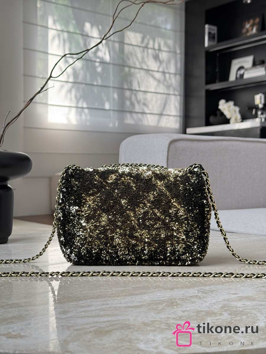Chanel Flap Bag Quilted Gradient Sequins & Ruthenium Finish Metal Gold & Black - 21x14x8cm