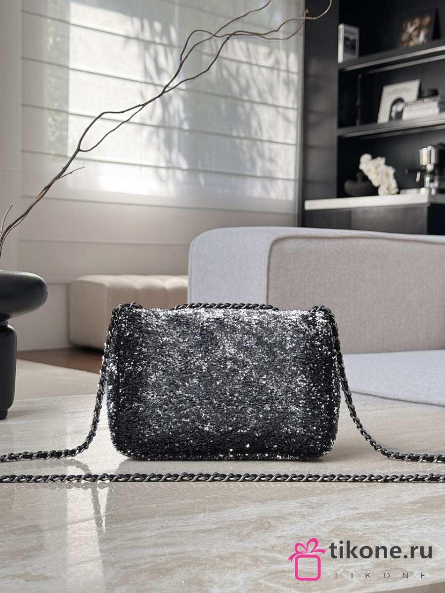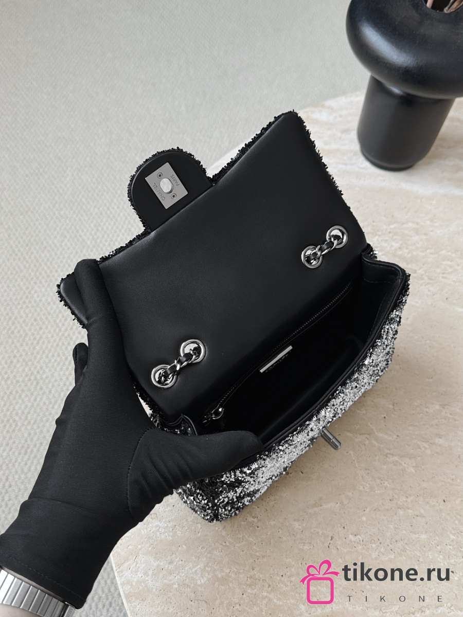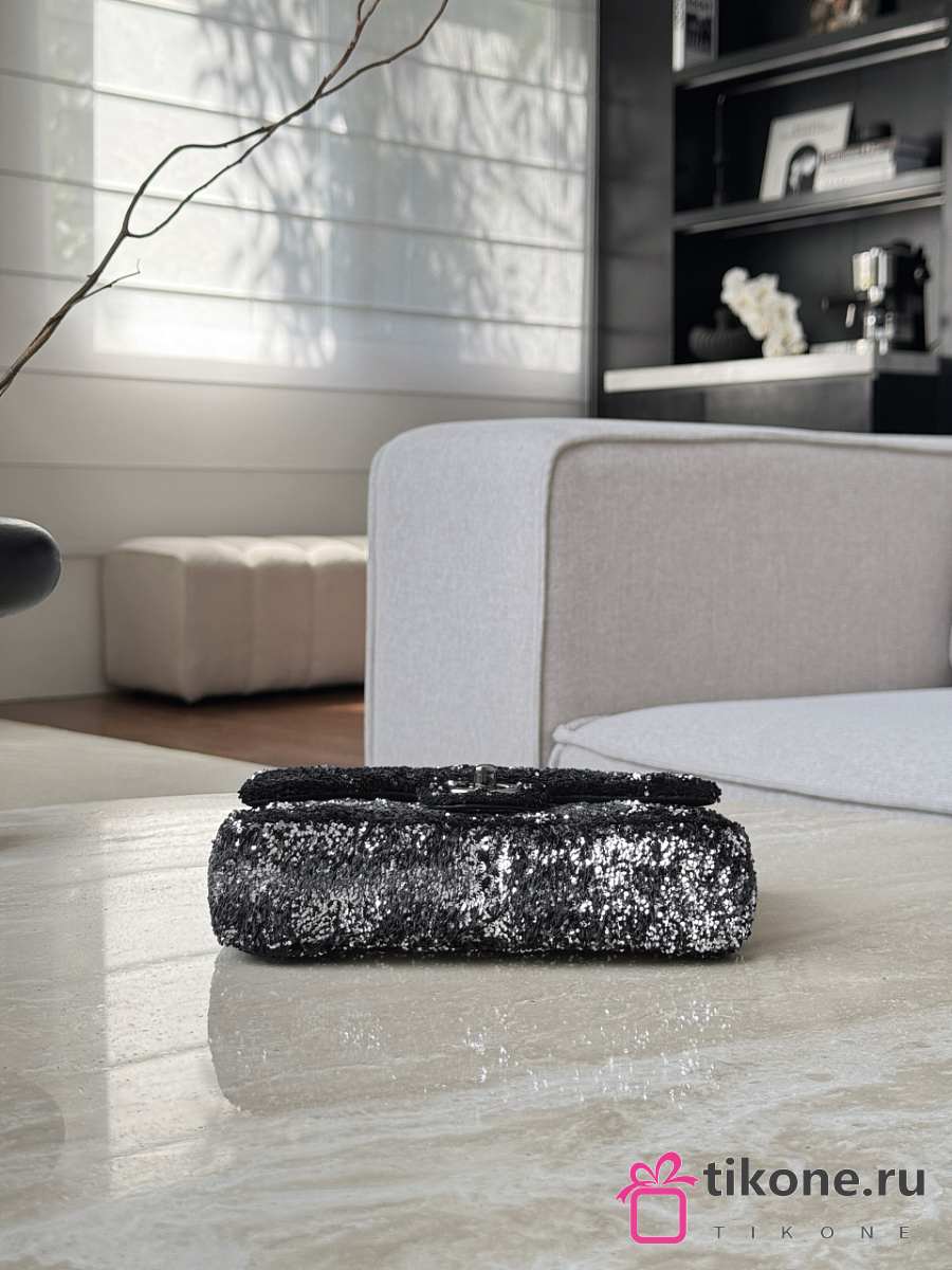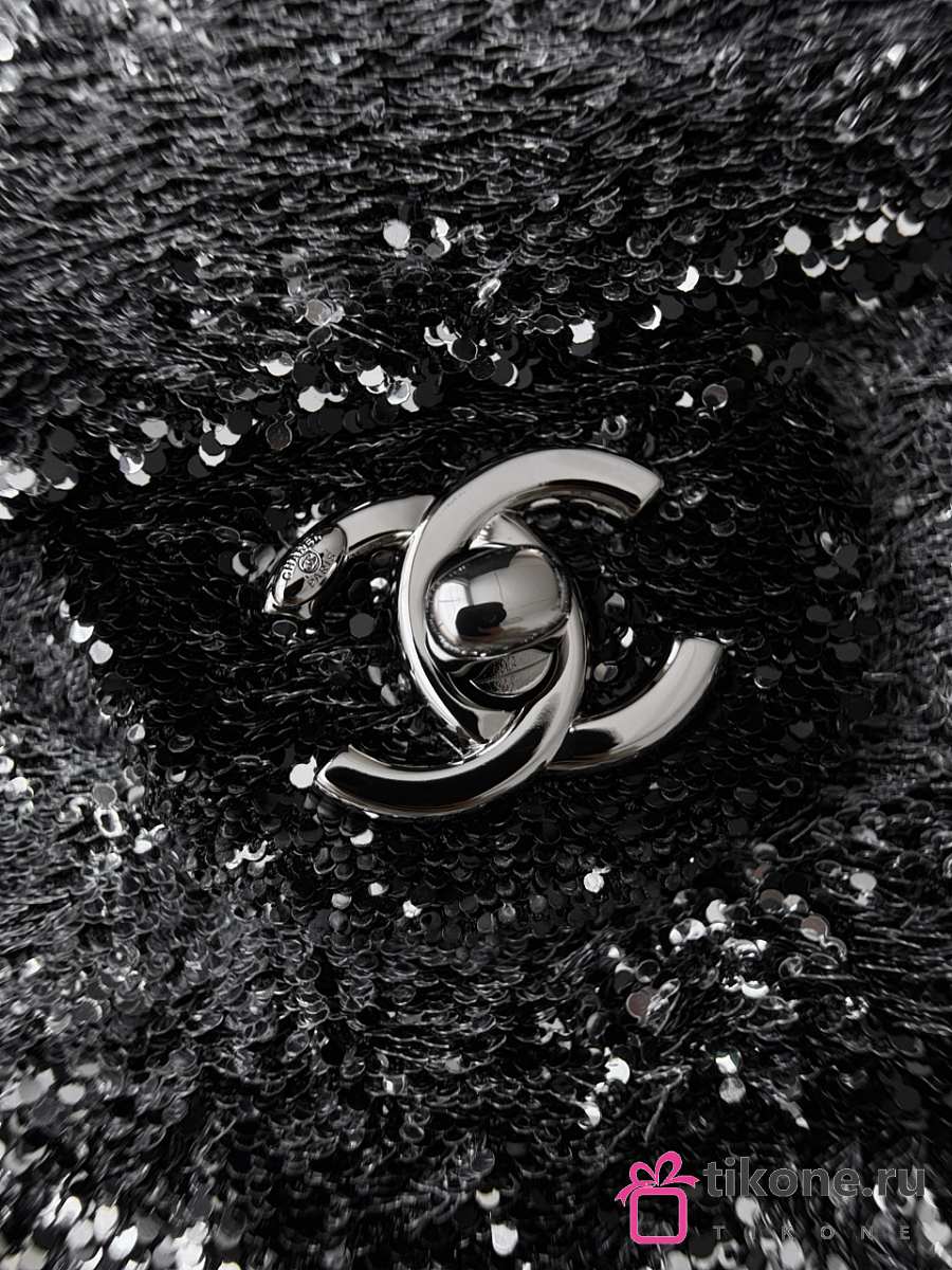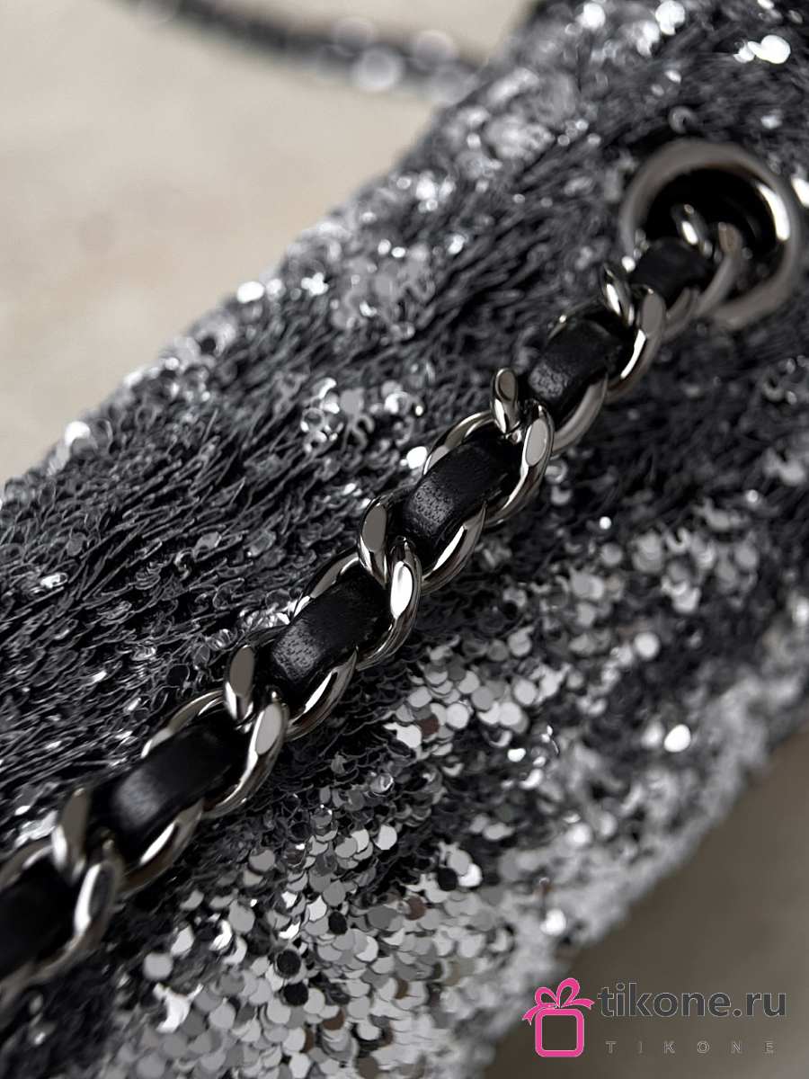 Chanel Flap Bag Quilted Gradient Sequins & Ruthenium Finish Metal Silver & Black - 21x14x8cm