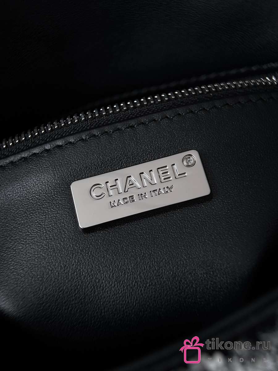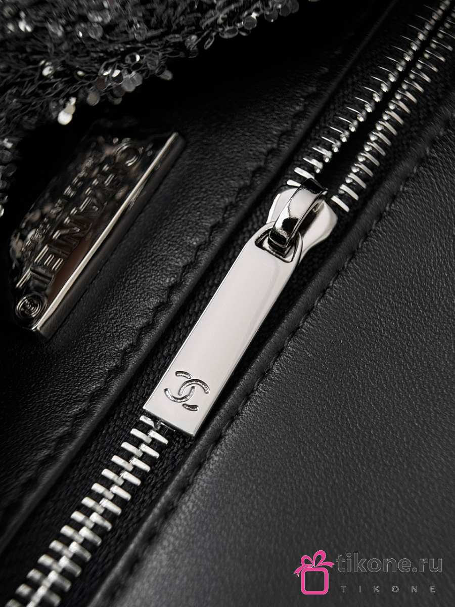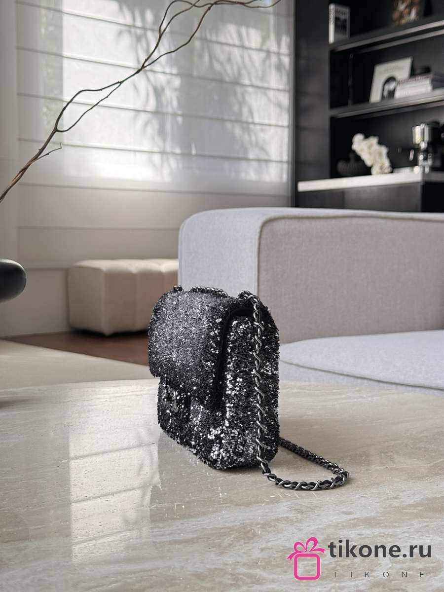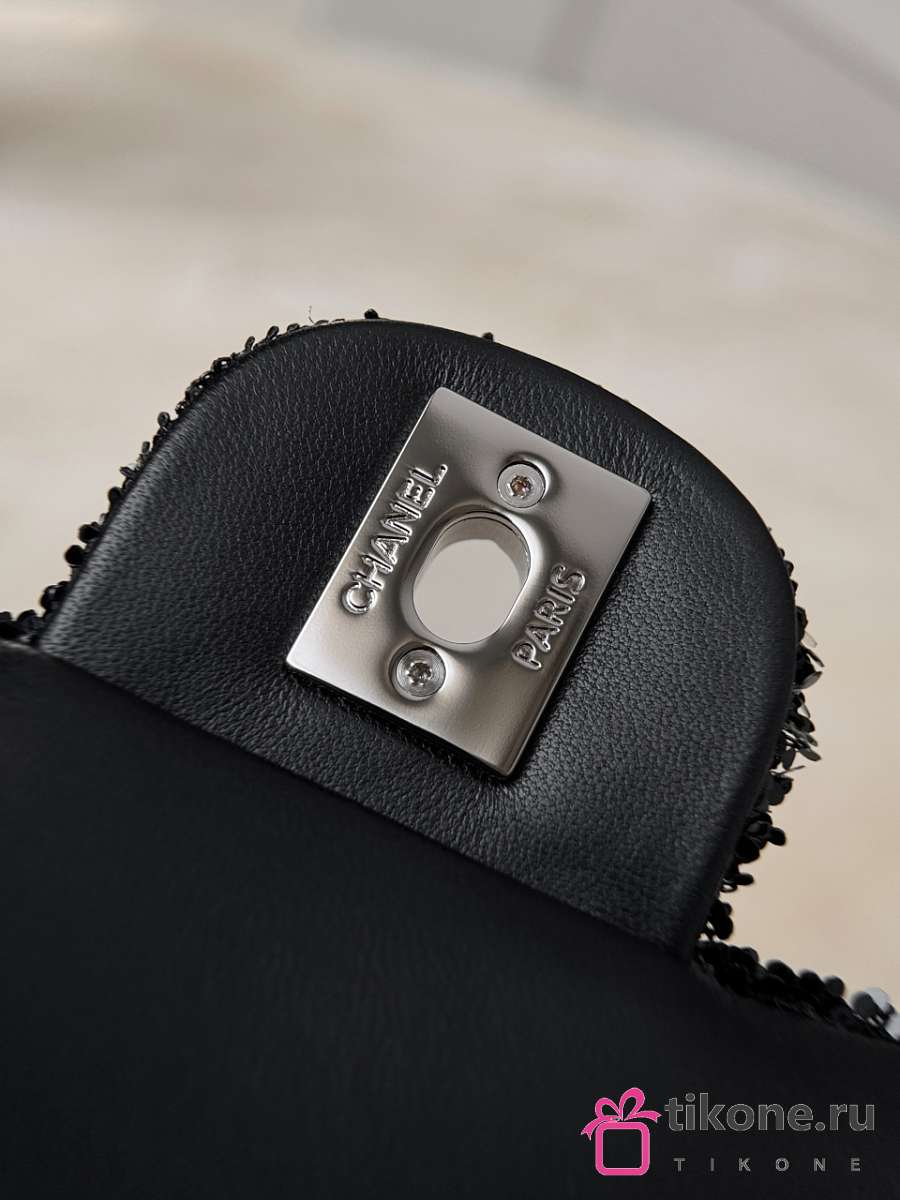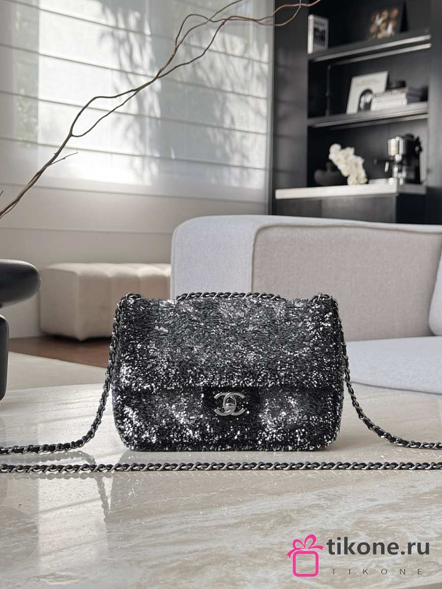 Chanel Flap Bag Quilted Gradient Sequins & Ruthenium Finish Metal Silver & Black - 21x14x8cm
