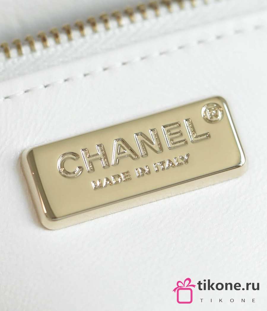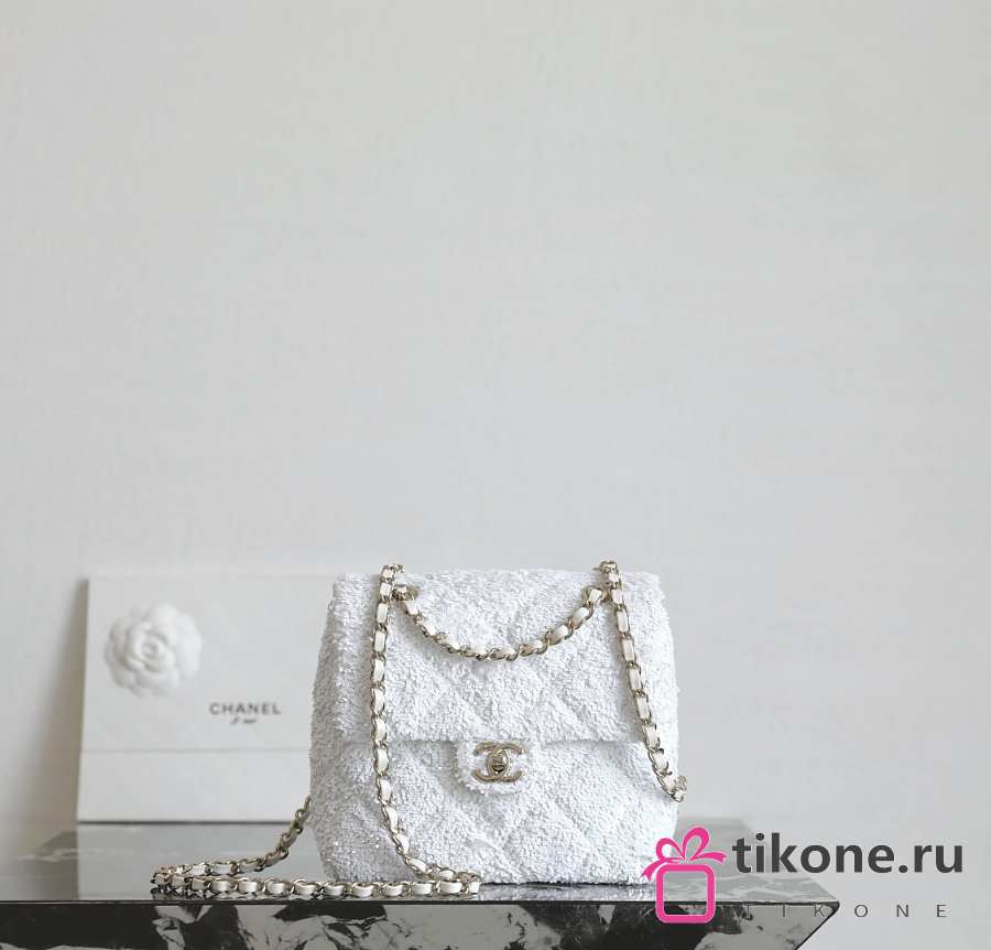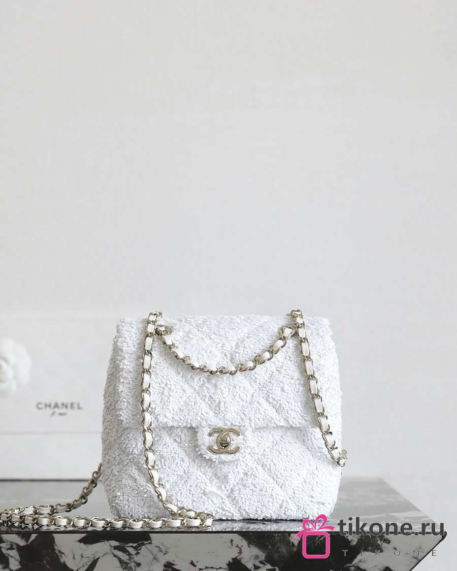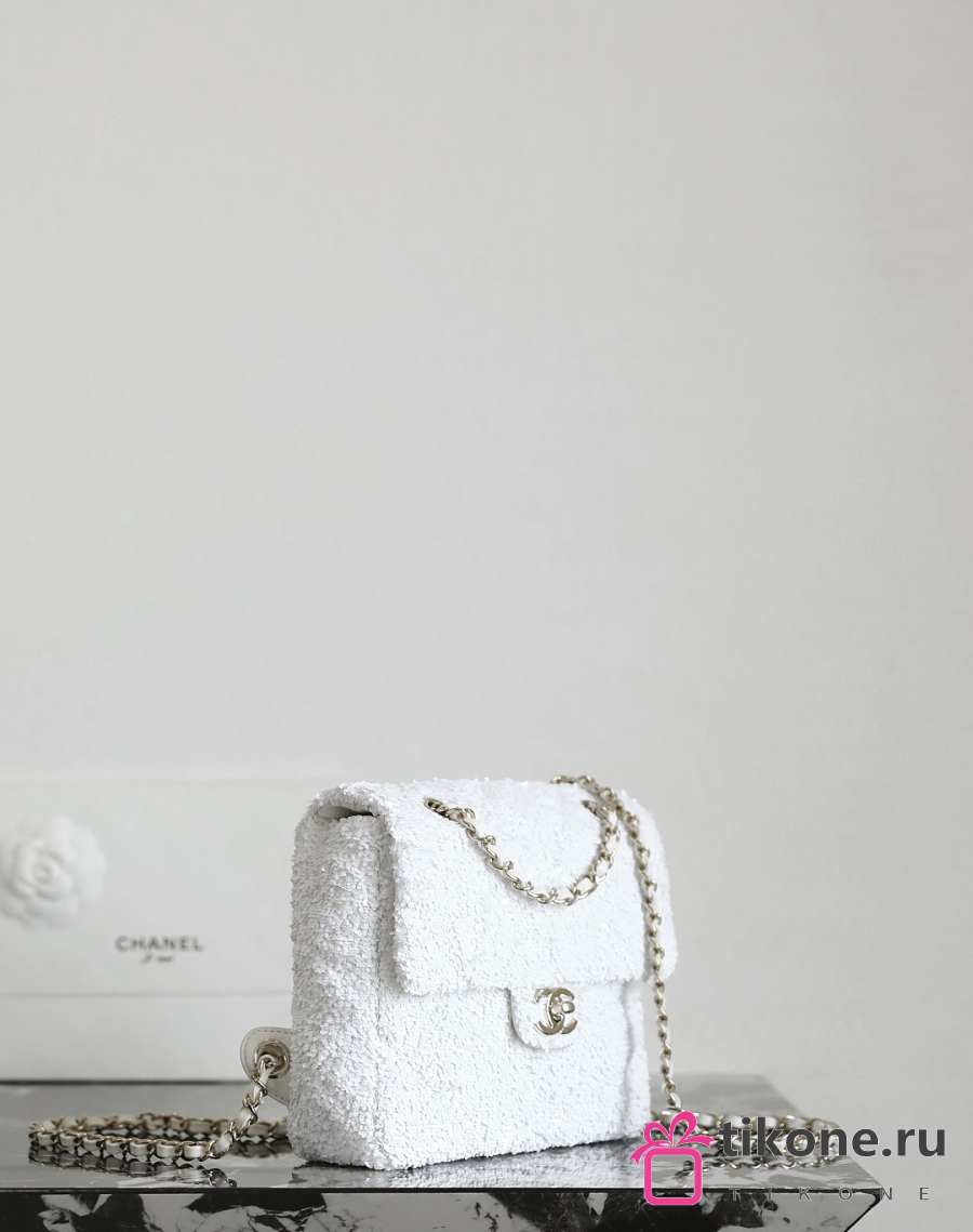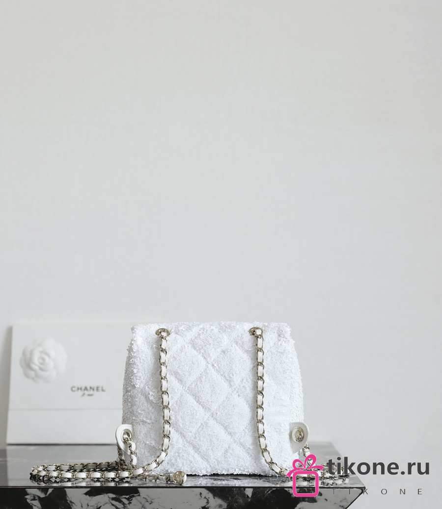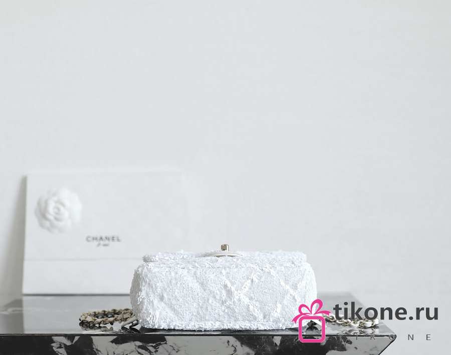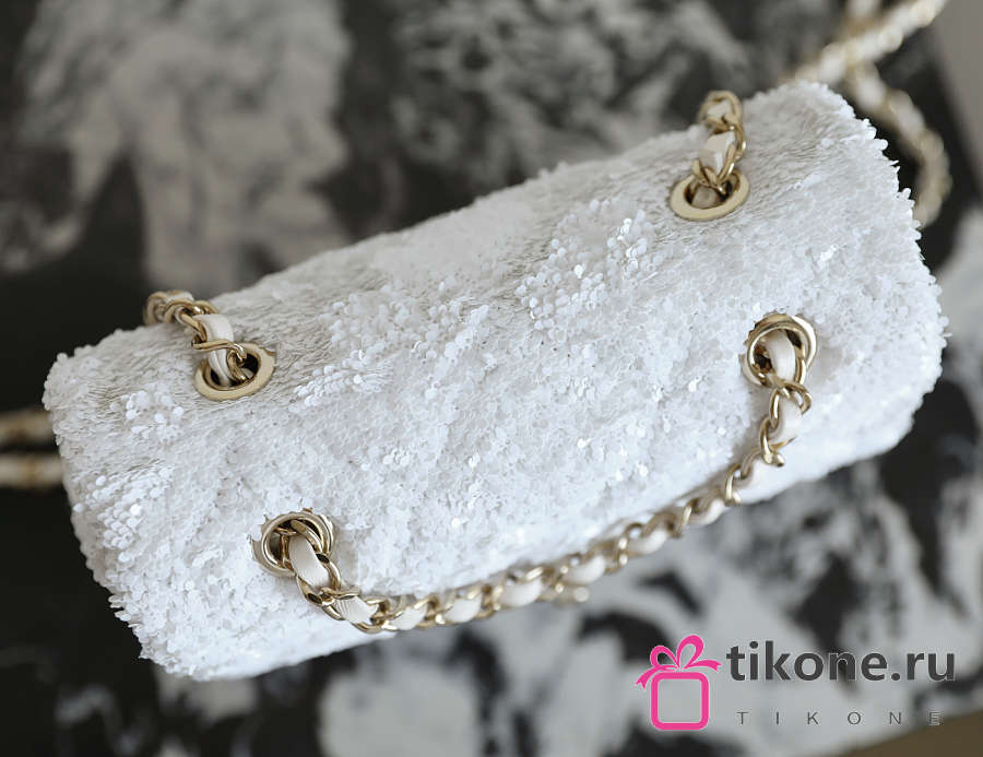 Chanel Flap Bag Quilted Sequins & Gold Tone Metal White - 21x14x8cm