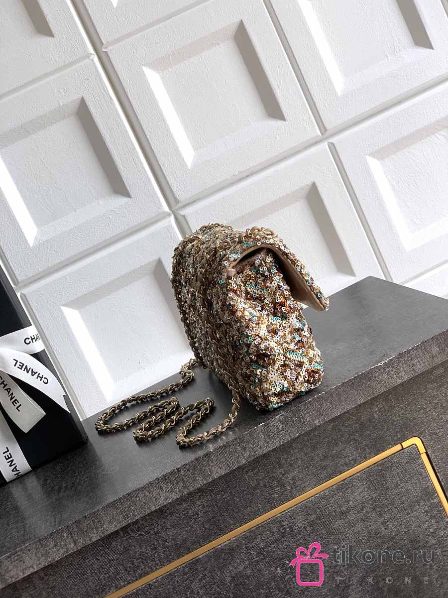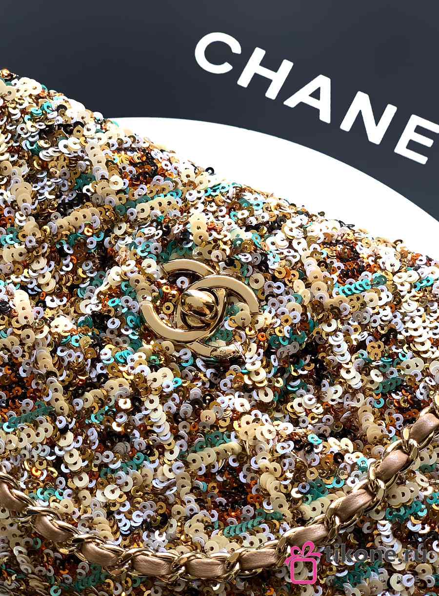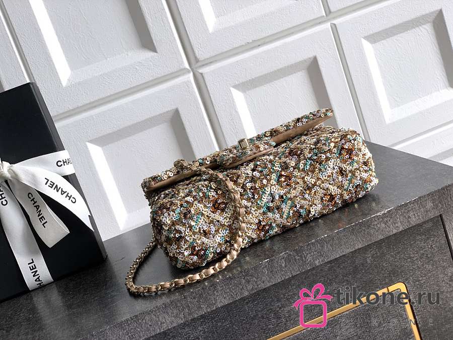 Chanel Flap Bag Sequins & Gold Tone Metal Beige & Multicolour - 21x13x8cm