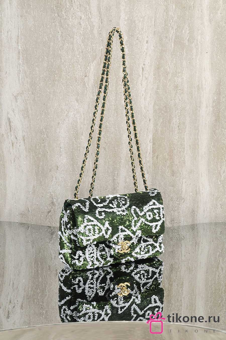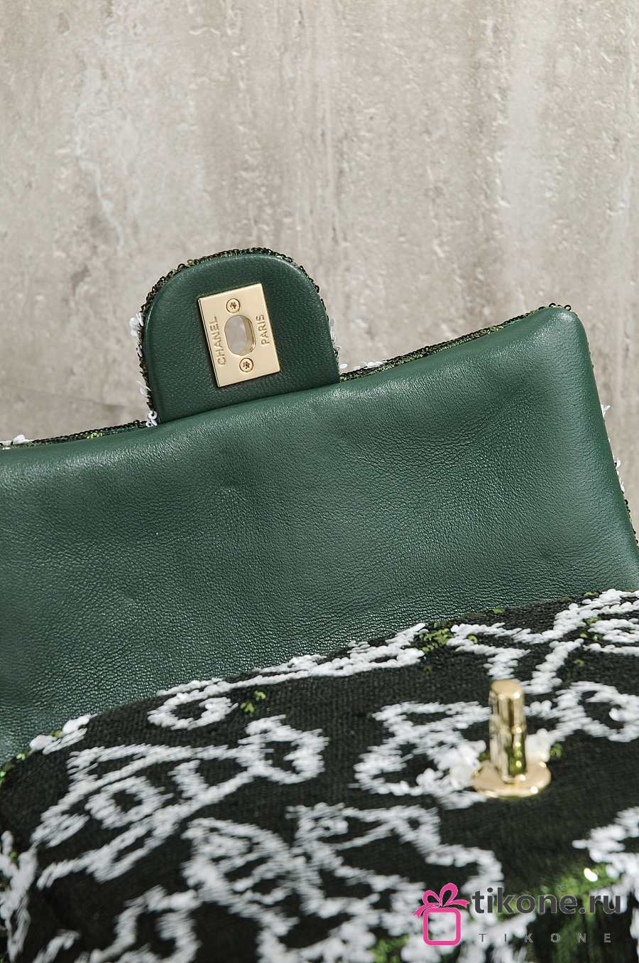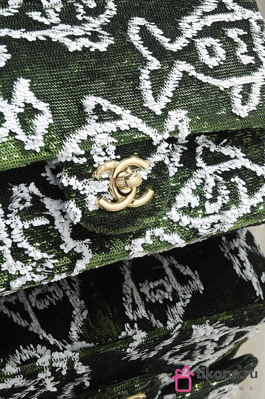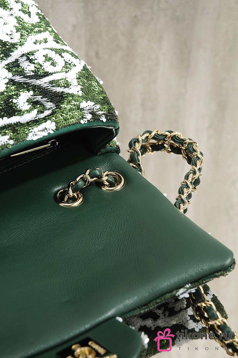 Chanel Flap Bag Sequins & Gold Tone Metal Green White- 20x14x8cm