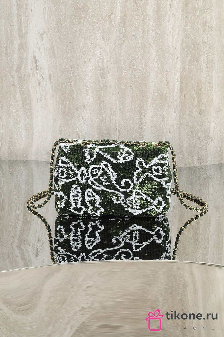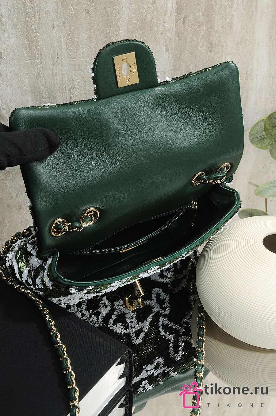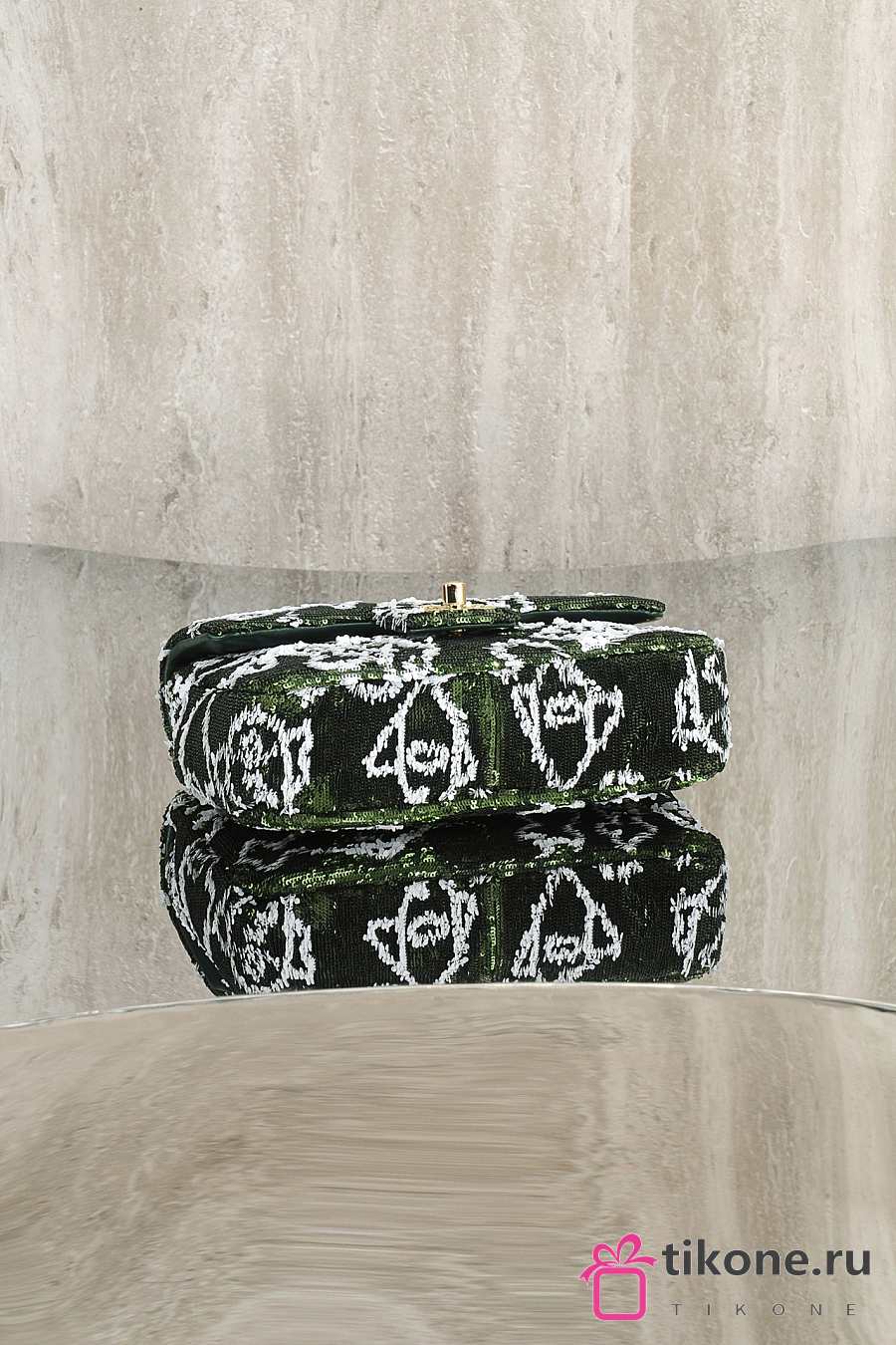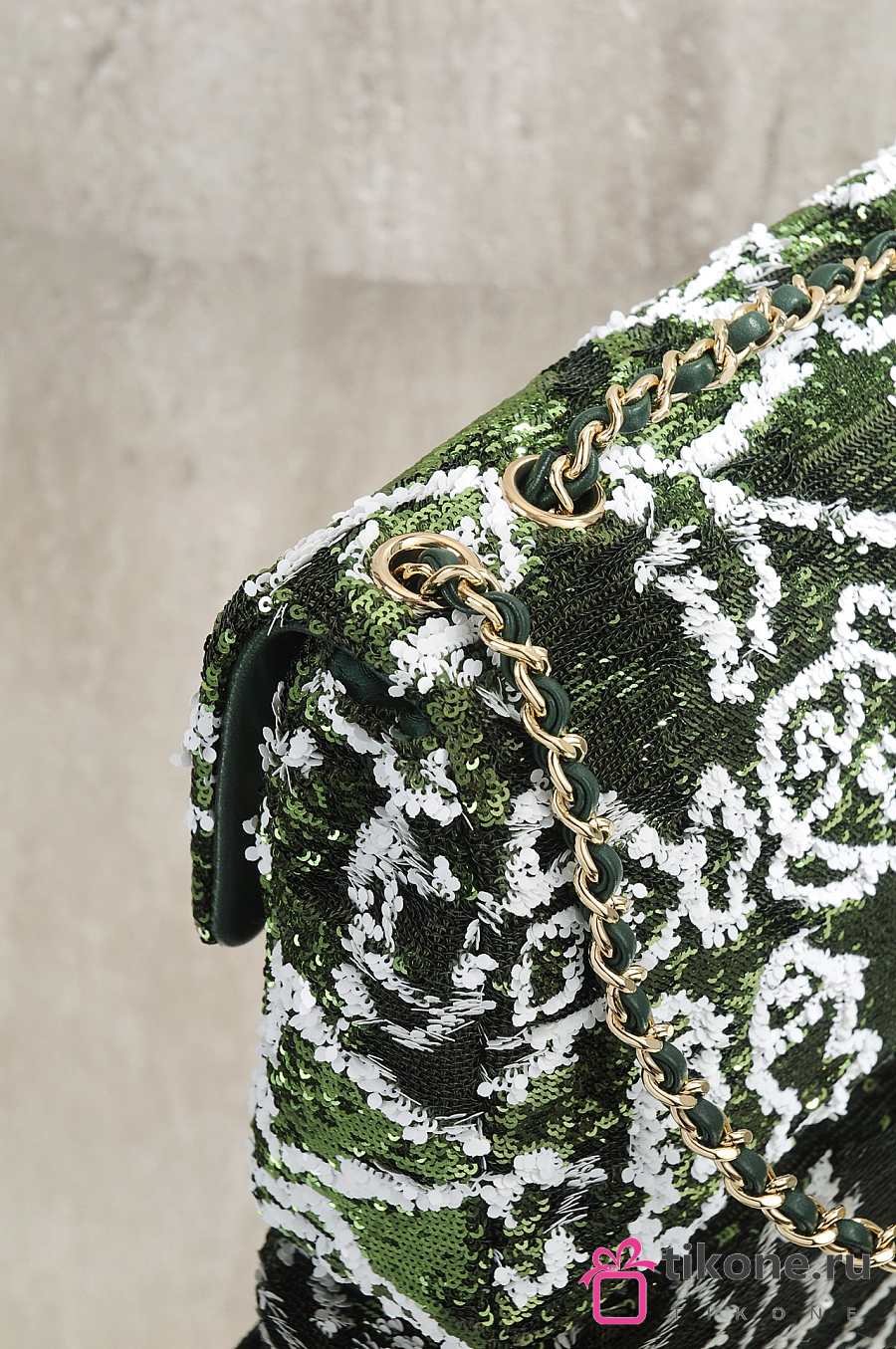 Chanel Flap Bag Sequins & Gold Tone Metal Green White- 20x14x8cm