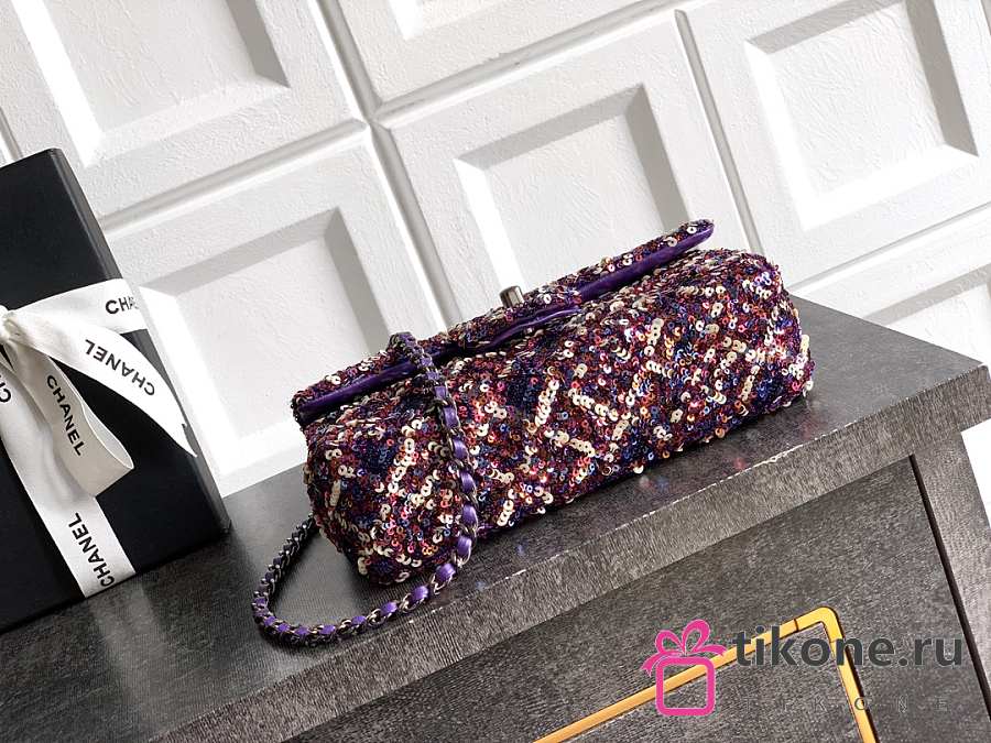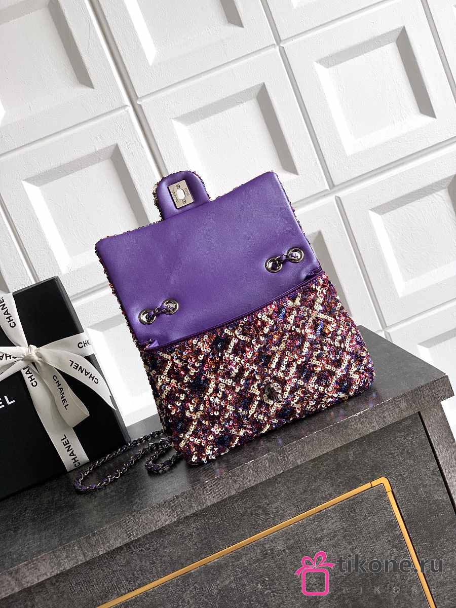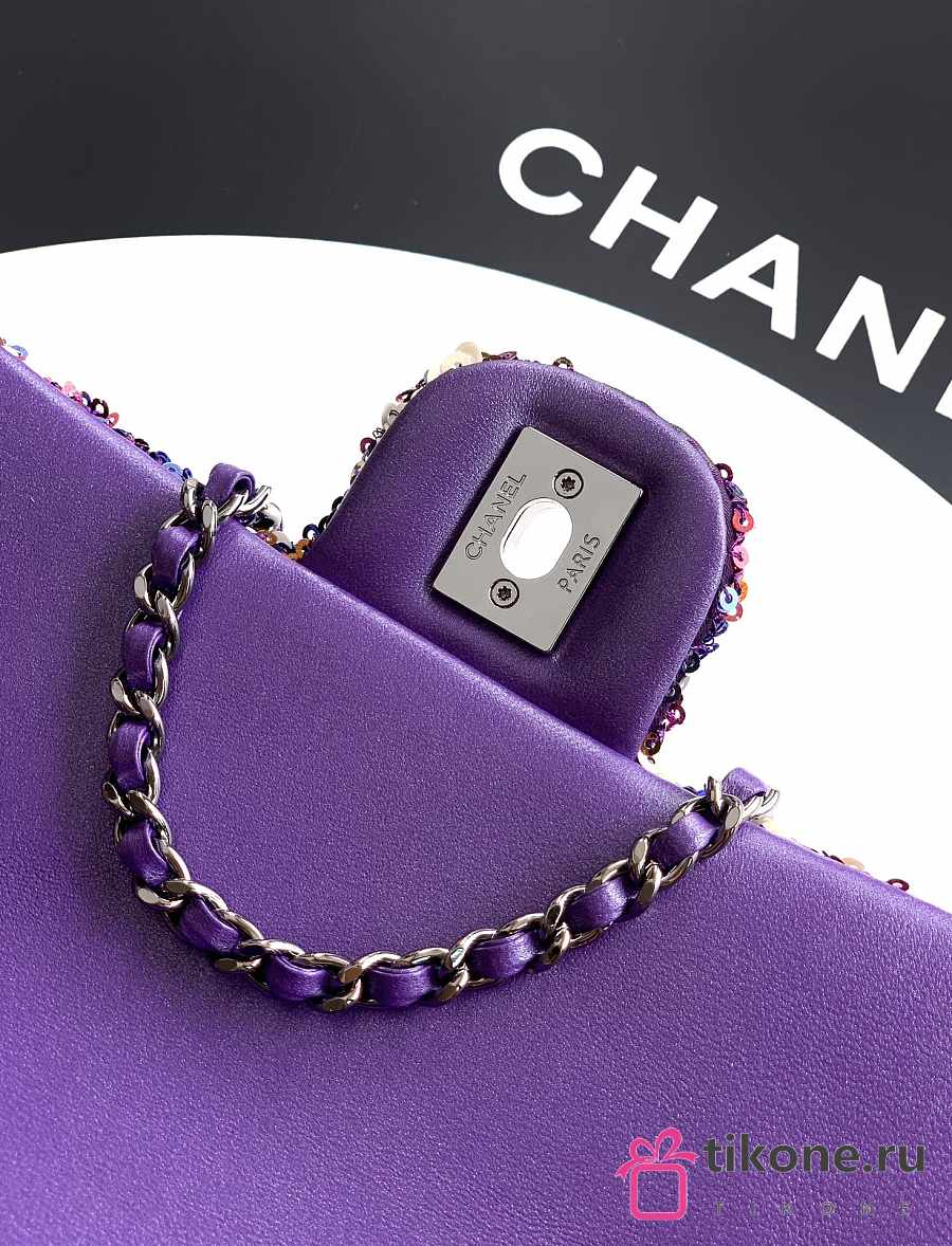 Chanel Flap Bag Sequins & Gold Tone Metal Purple & Multicolour - 21x13x8cm