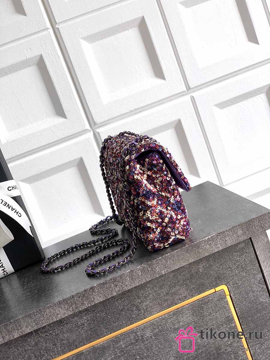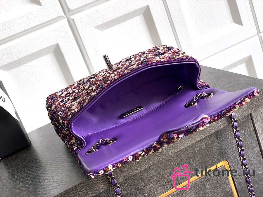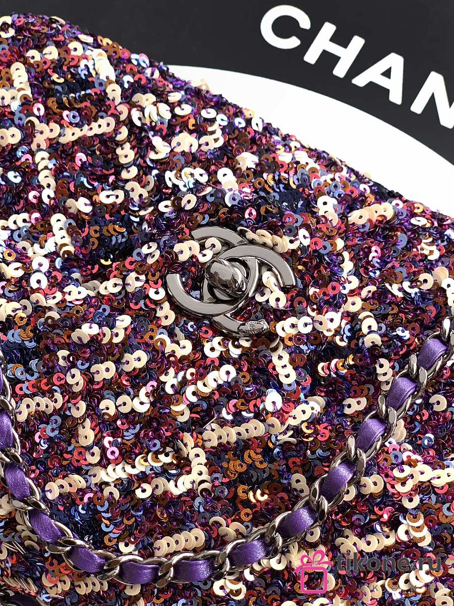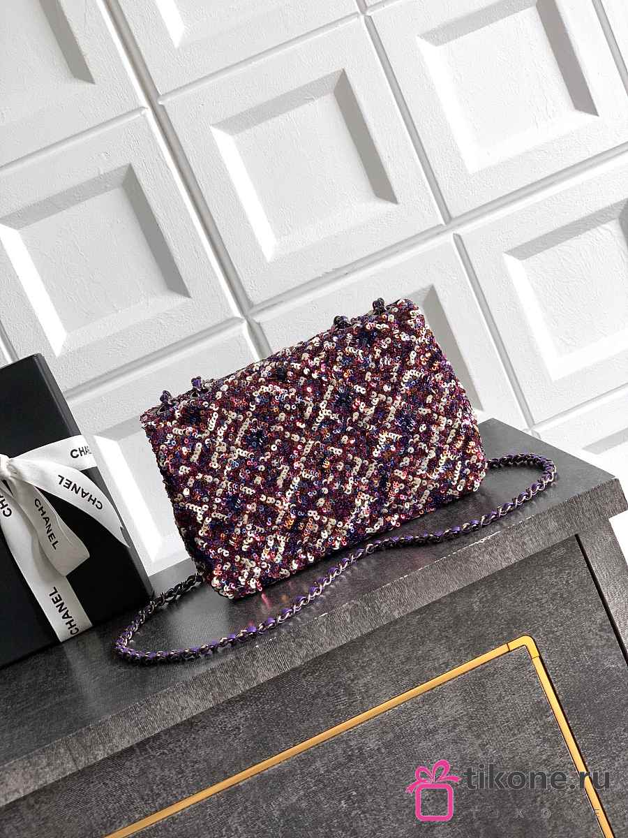 Chanel Flap Bag Sequins & Gold Tone Metal Purple & Multicolour - 21x13x8cm