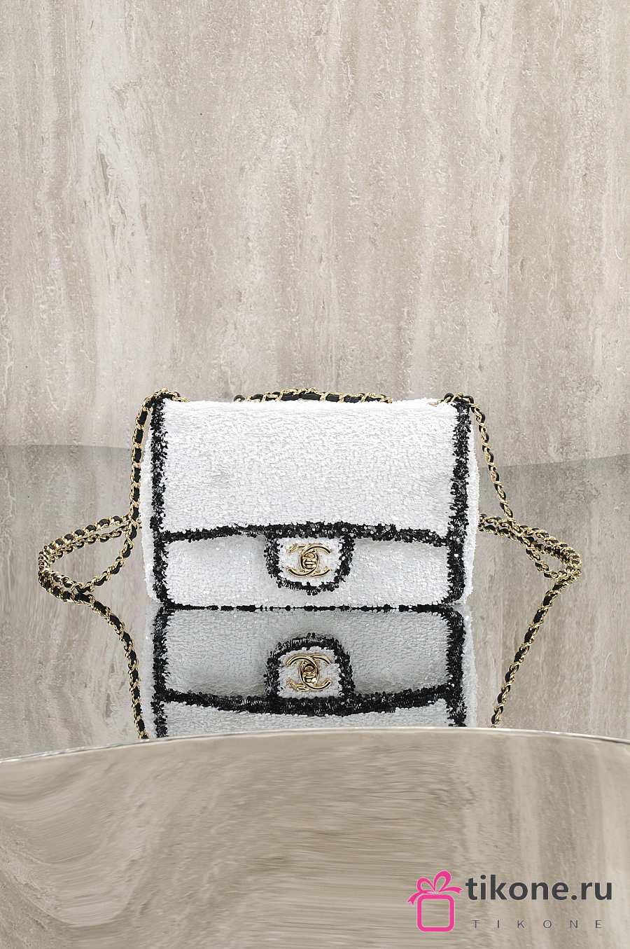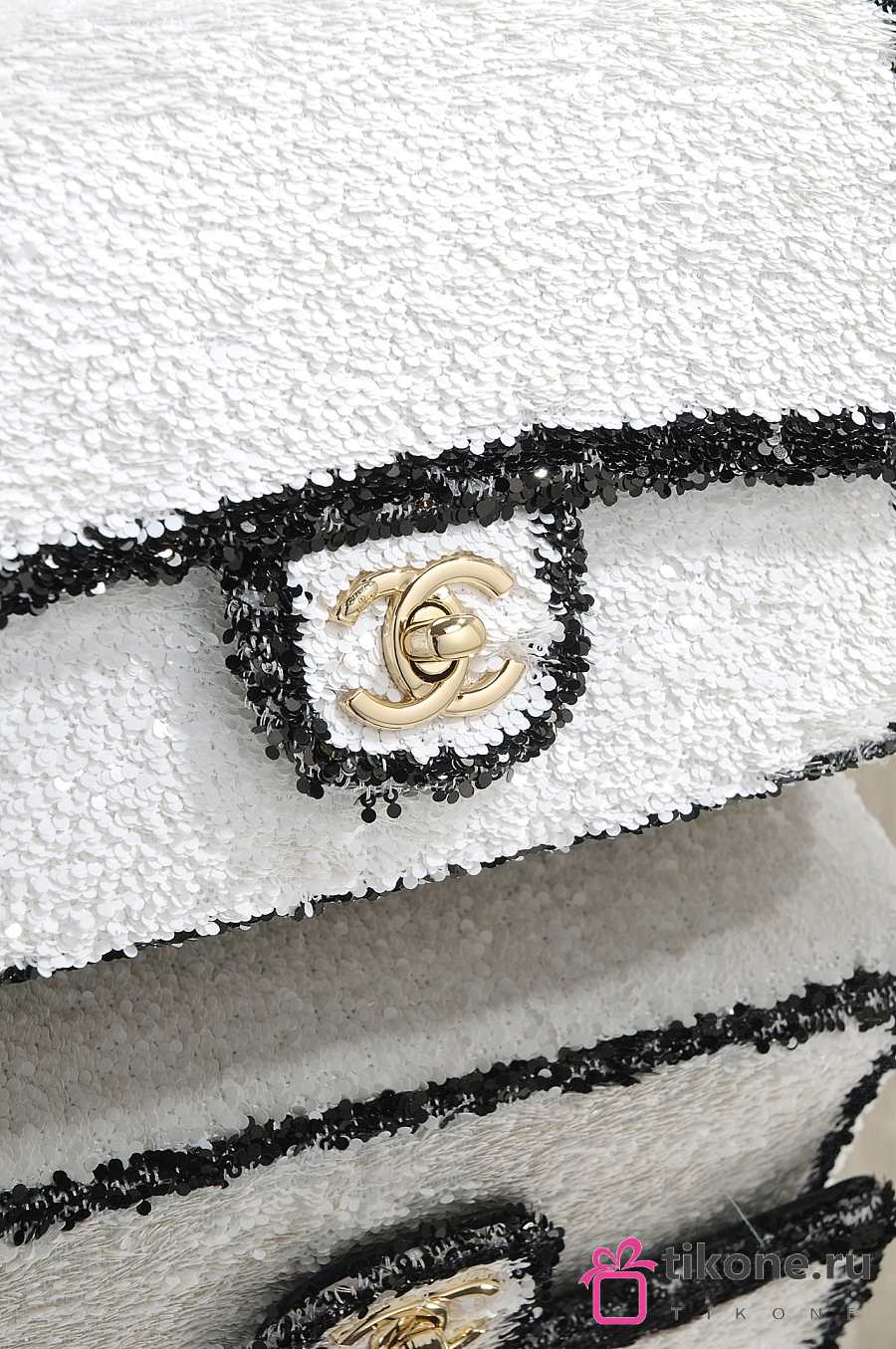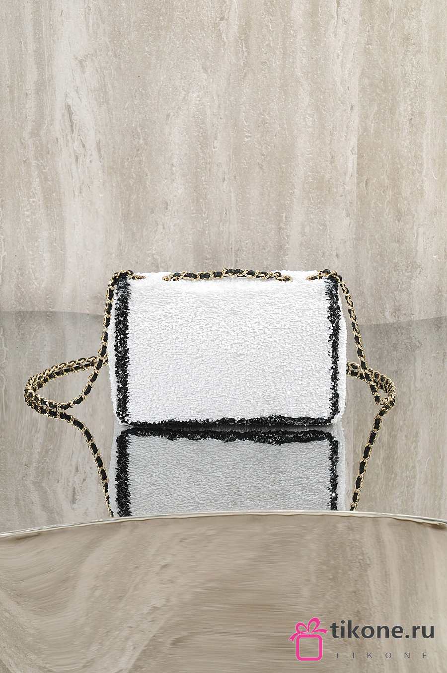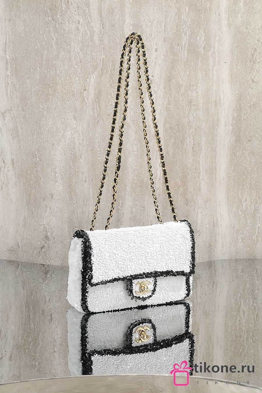 Chanel Flap Bag Sequins & Gold Tone Metal White & Black - 21x14x8cm